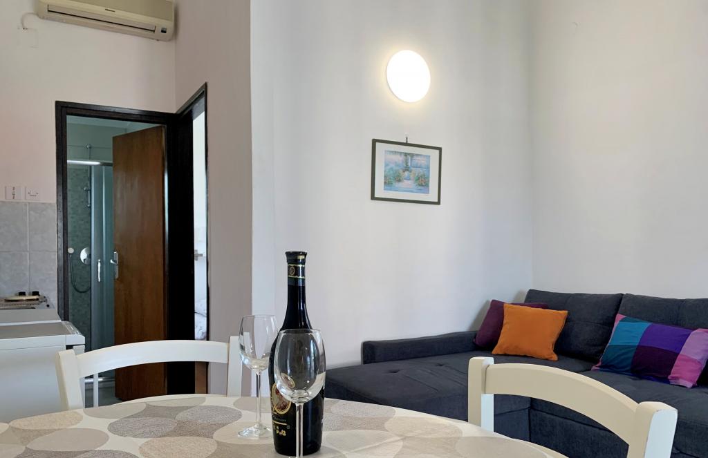 Anbefalet indkvartering. Ejeren Marija er venlig og diskret. Stor terrasse i skyggen med udsigt over havet. Lejligheden er ren og udstyret med alt hvad man behøver. Sikker parkering i gården. Tæt på sandstranden med naturlig skygge. Vi var meget tilfredse.