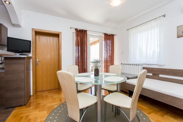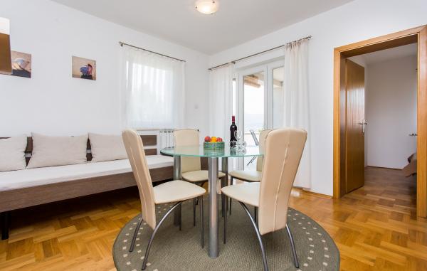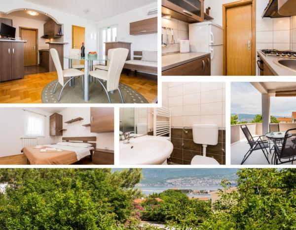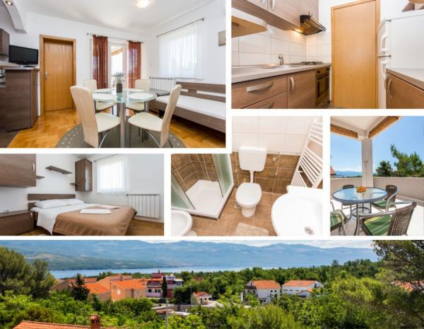 Vores familiehus \Villa Maslina\ er beliggende i en rolig del af Silo på østkysten af øen Krk. Det har fire moderne indrettede lejligheder af kategori 2 2, fire-stjernet kategori. De er i samme størrelse, og hver har en stor terrasse med udsigt over havet, badeværelset, soveværelse og køkken og stue. De er udstyret med aircondition, centralvarme, LCD-tv med satellitmodtager, pengeskab, alarmsystem og trådløst internet. I gården foran huset vil en af de seks skyggefulde parkeringspladser beskytte dit køretøj mod den varme sol. Et eksternt videoovervågningssystem er også der for at beskytte din ejendom. Vi har forberedt en karrusel, gynger, flasker og andre faciliteter til dine børn, så de kan nyde spillet i naturen. I lysthuset med en stor pejs og et lille køkken, bygget bag huset, kan du nyde at grille. Vi inviterer dig til at besøge os og føle al den positive energi, vi har indbygget i hjemmet og haven.