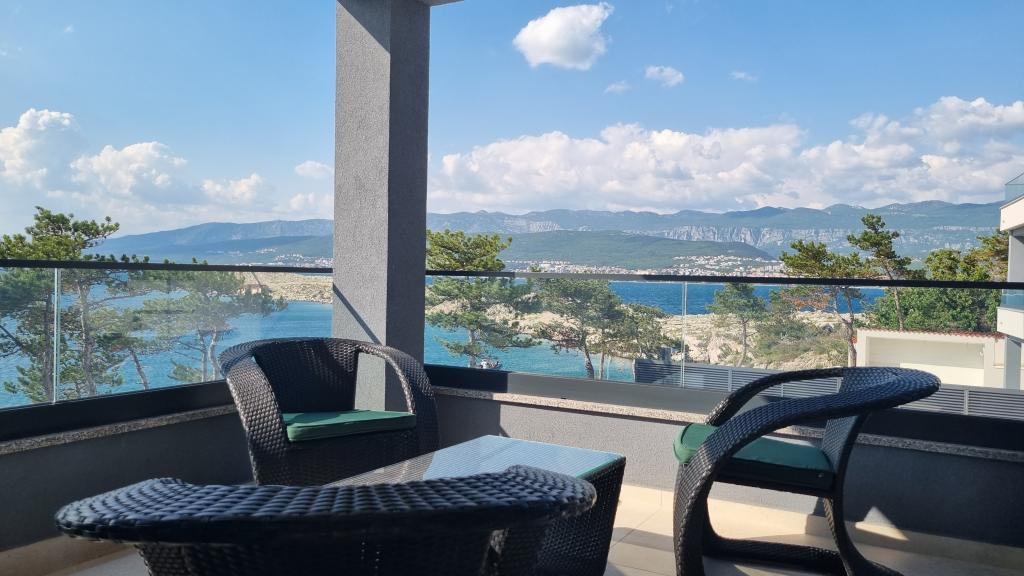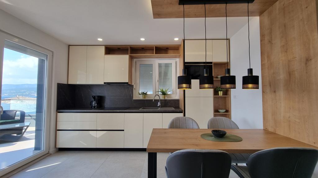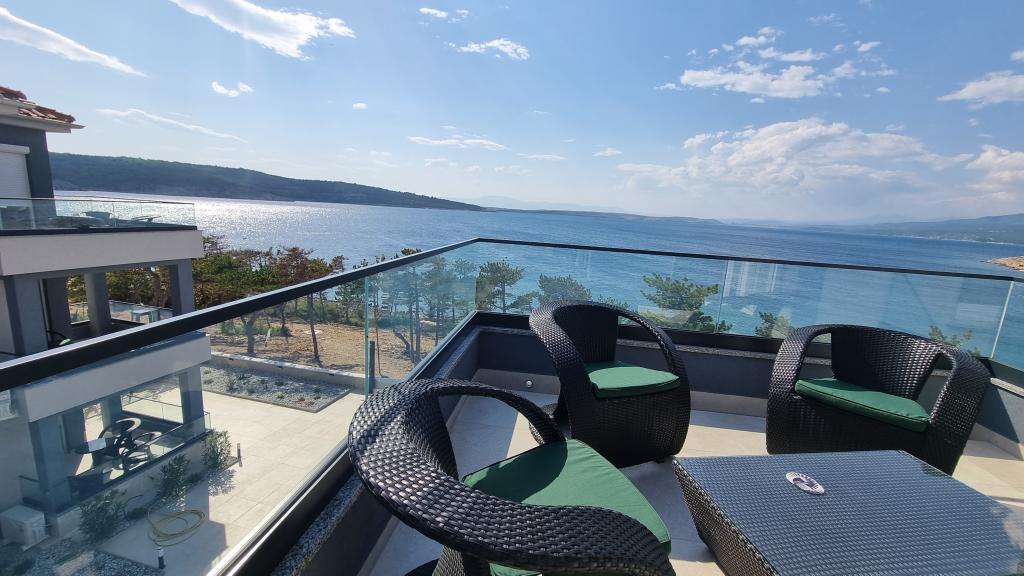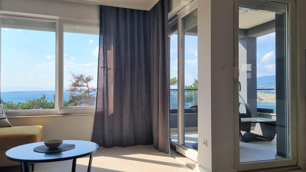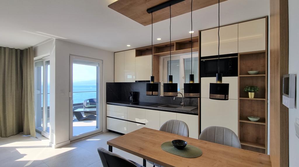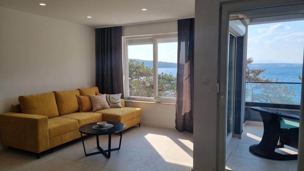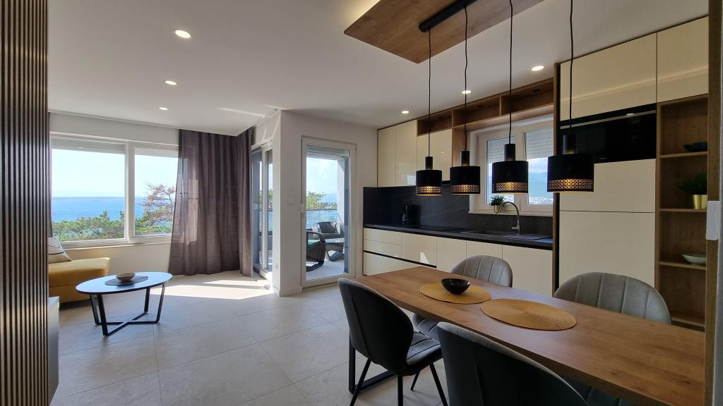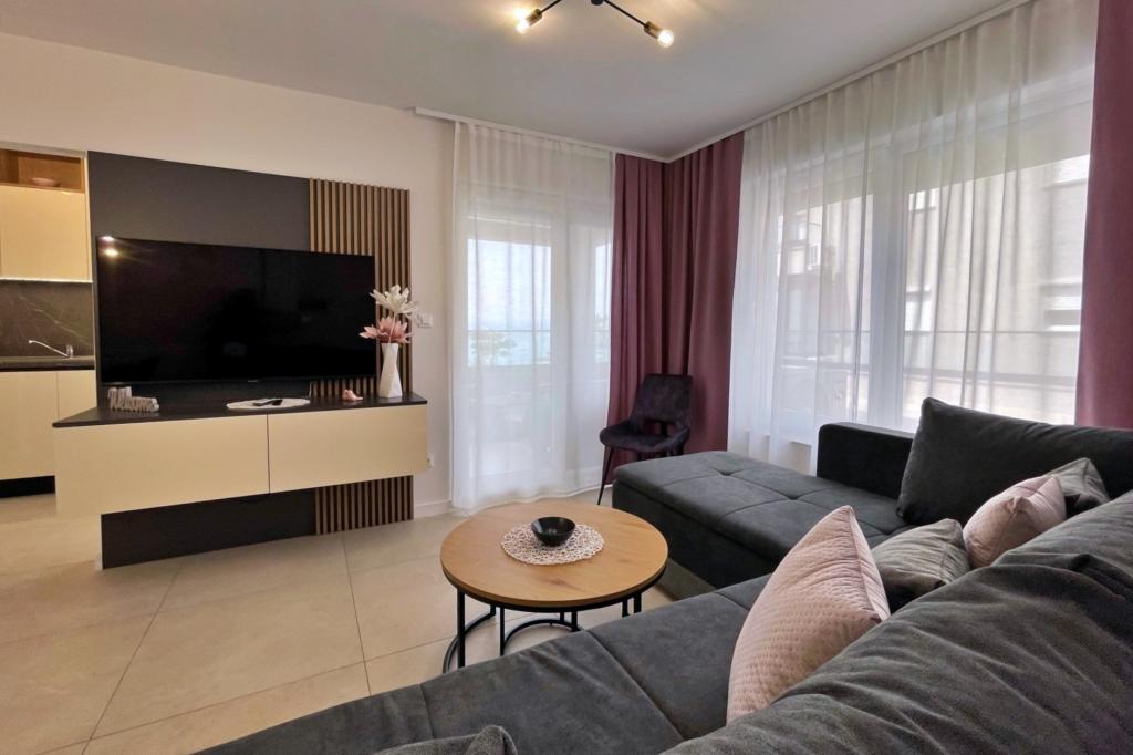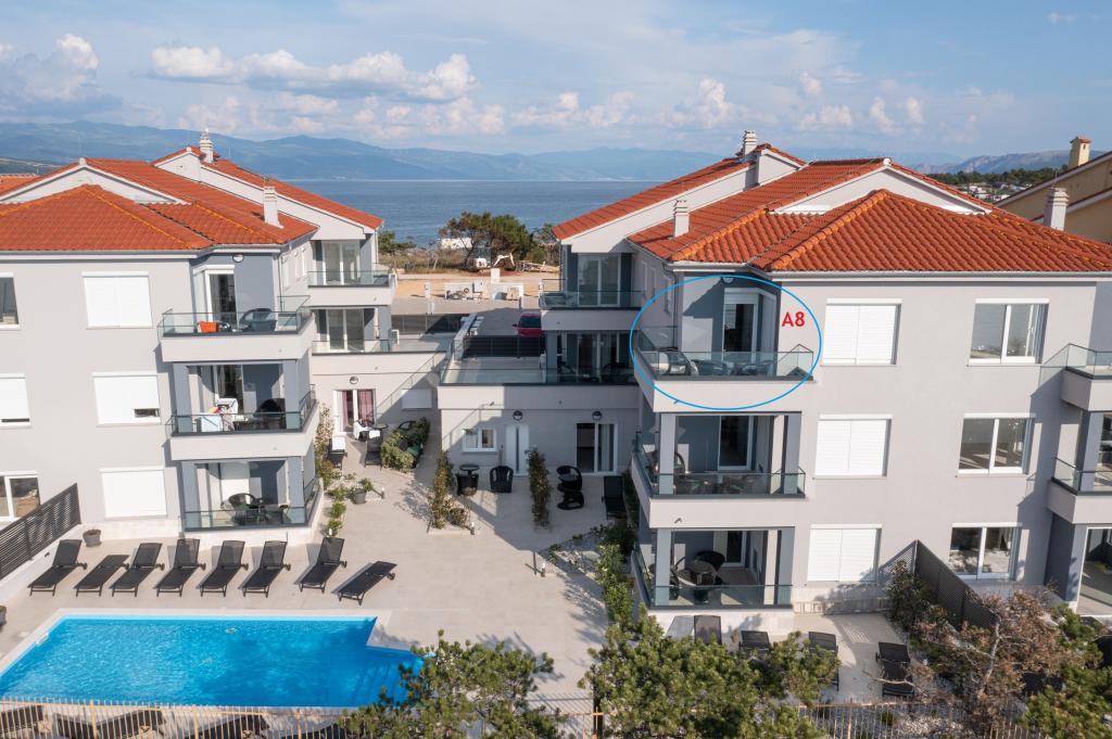 Disse luksuslejligheder med havudsigt er beliggende i et kompleks af bygninger i en rolig beliggenhed. Alle lejligheder er moderne udstyret med to eller endda tre klimaanlæg og smart-tv i stuer og soveværelser. Bygningen har en stor swimmingpool med saltvand (36 m2) til fælles brug, og den er åben fra maj til oktober, med temperaturer der normalt når op på 20-26°C.. Bygningen har i alt 12 lejligheder. Bygningen har en fuldt indhegnet privat parkeringsplads. Der er også en stor stenstrand i umiddelbar nærhed, og i den tilstødende bygning er der en fremragende restaurant, der også byder på et udvalg af lokale specialiteter. Alle lejligheder er udstyret med induktionskomfur, køleskab med fryser, elkedel, kaffemaskine, brødrister, opvaskemaskine og mikroovn. Området ved siden af poolen er udstyret med liggestole, parasoller og en udendørs bruser. Der er gratis trådløs internetadgang overalt i bygningen.