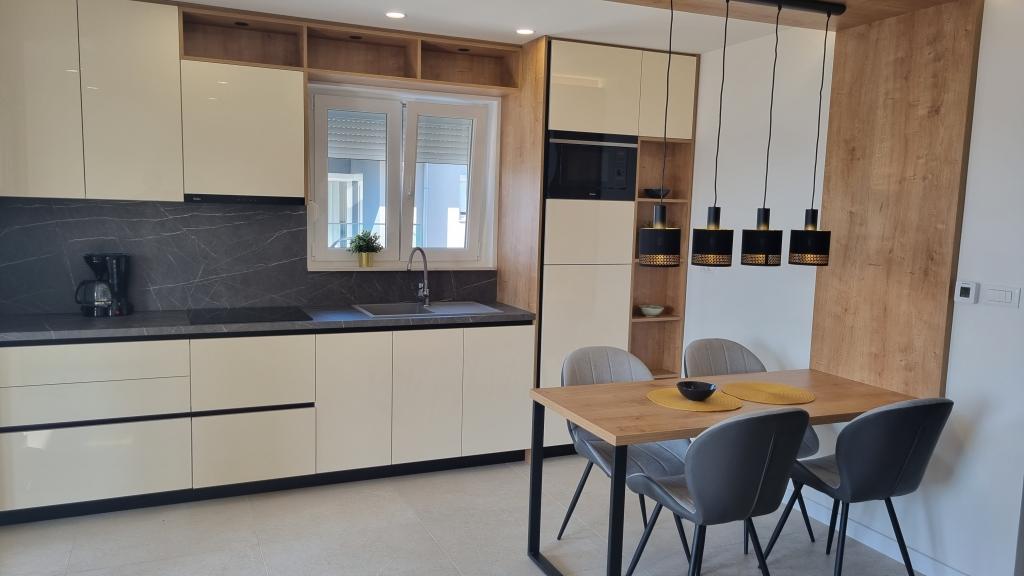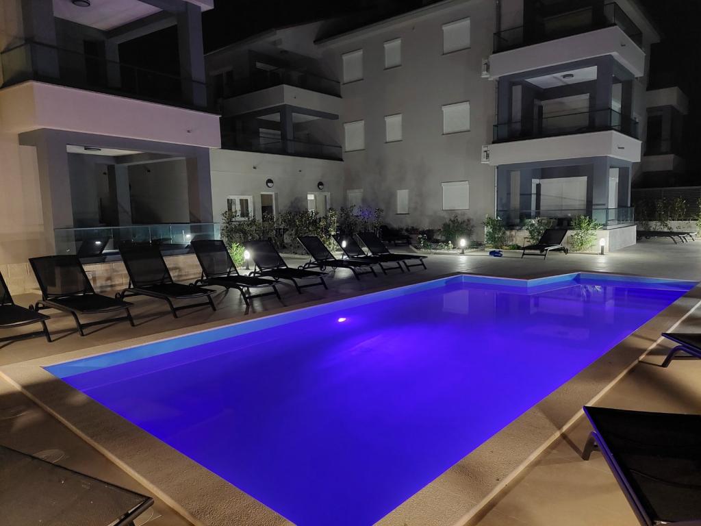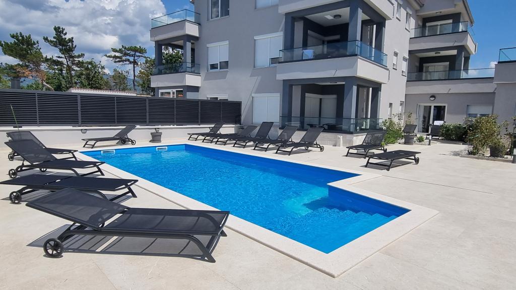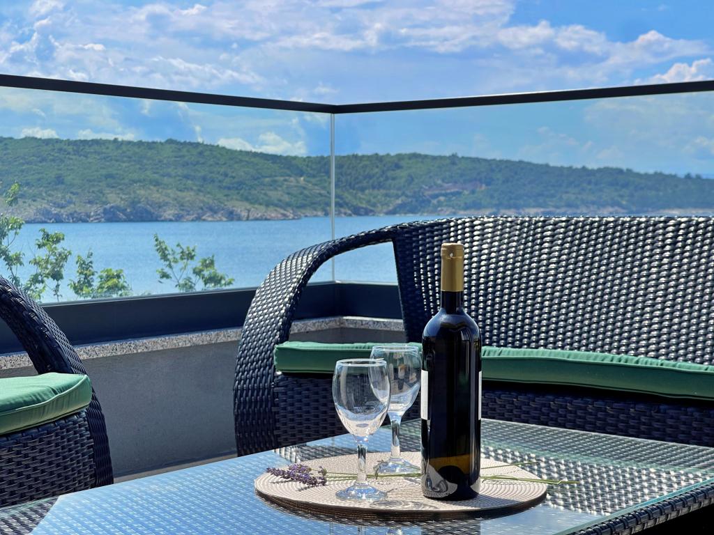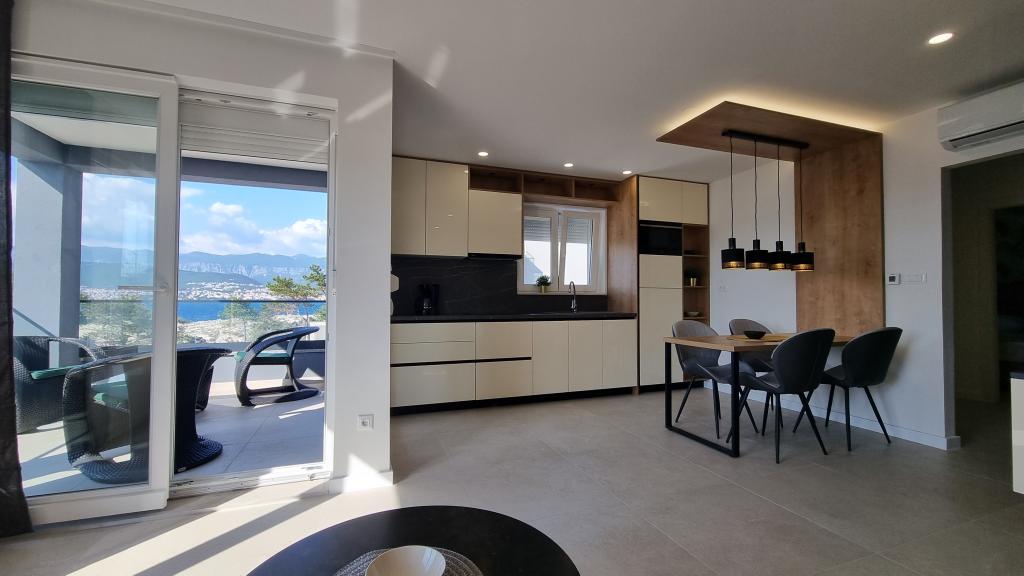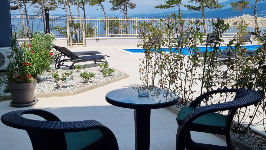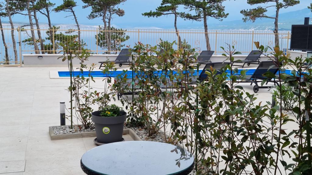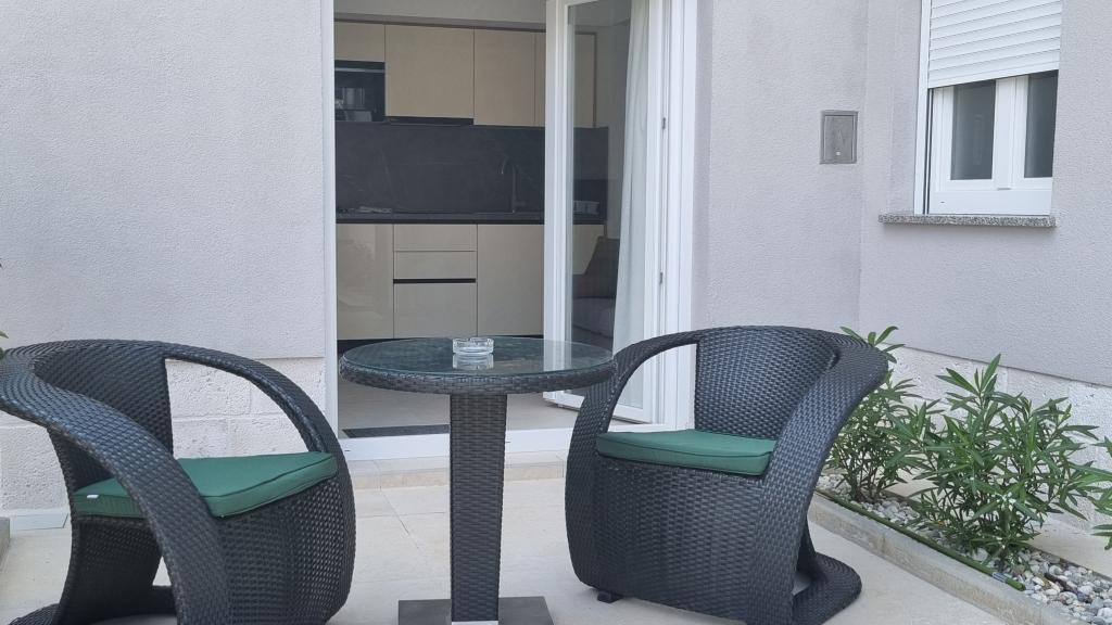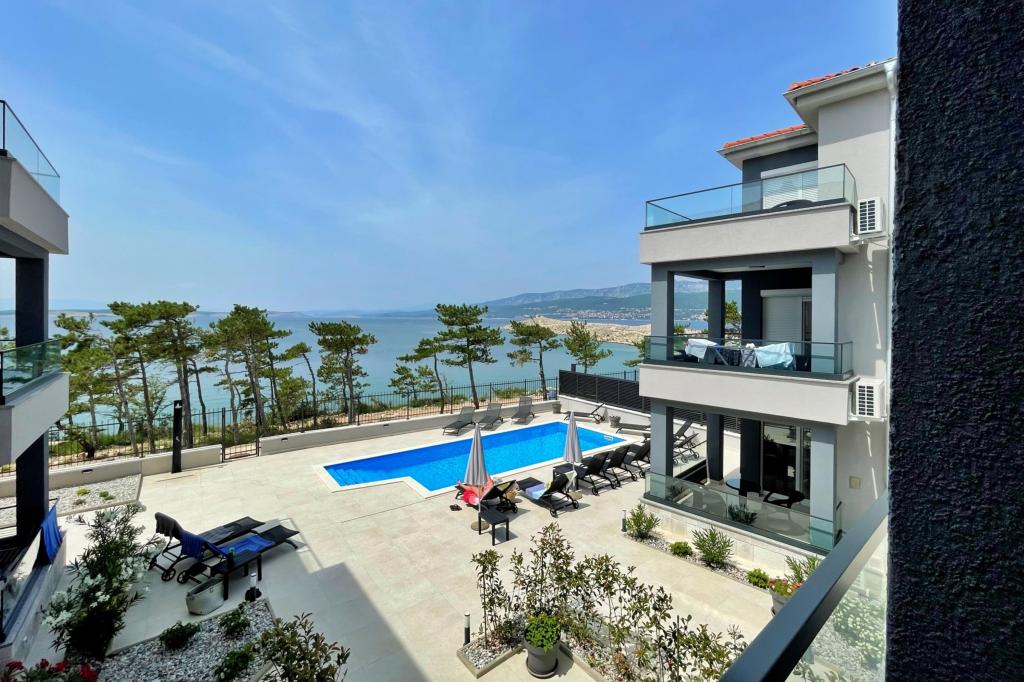Disse luksuslejligheder med havudsigt er beliggende i et kompleks af bygninger i en rolig beliggenhed. Alle lejligheder er moderne udstyret med to eller endda tre klimaanlæg og smart-tv i stuer og soveværelser. Bygningen har en stor swimmingpool med saltvand (36 m2) til fælles brug, og den er åben fra maj til oktober, med temperaturer der normalt når op på 20-26°C.. Bygningen har i alt 12 lejligheder. Bygningen har en fuldt indhegnet privat parkeringsplads. Der er også en stor stenstrand i umiddelbar nærhed, og i den tilstødende bygning er der en fremragende restaurant, der også byder på et udvalg af lokale specialiteter. Alle lejligheder er udstyret med induktionskomfur, køleskab med fryser, elkedel, kaffemaskine, brødrister, opvaskemaskine og mikroovn. Området ved siden af poolen er udstyret med liggestole, parasoller og en udendørs bruser. Der er gratis trådløs internetadgang overalt i bygningen.