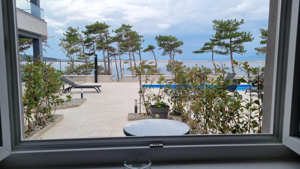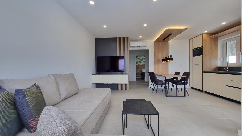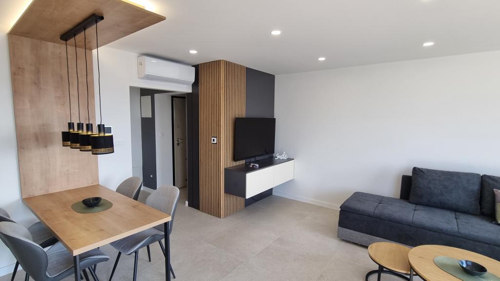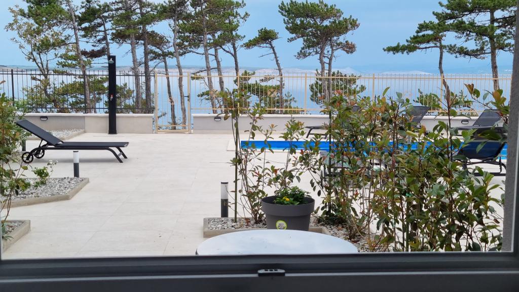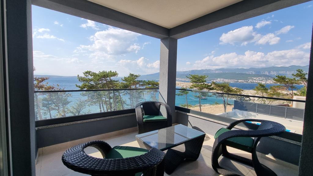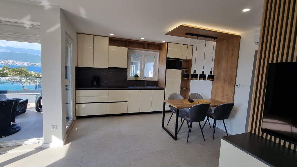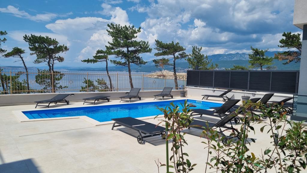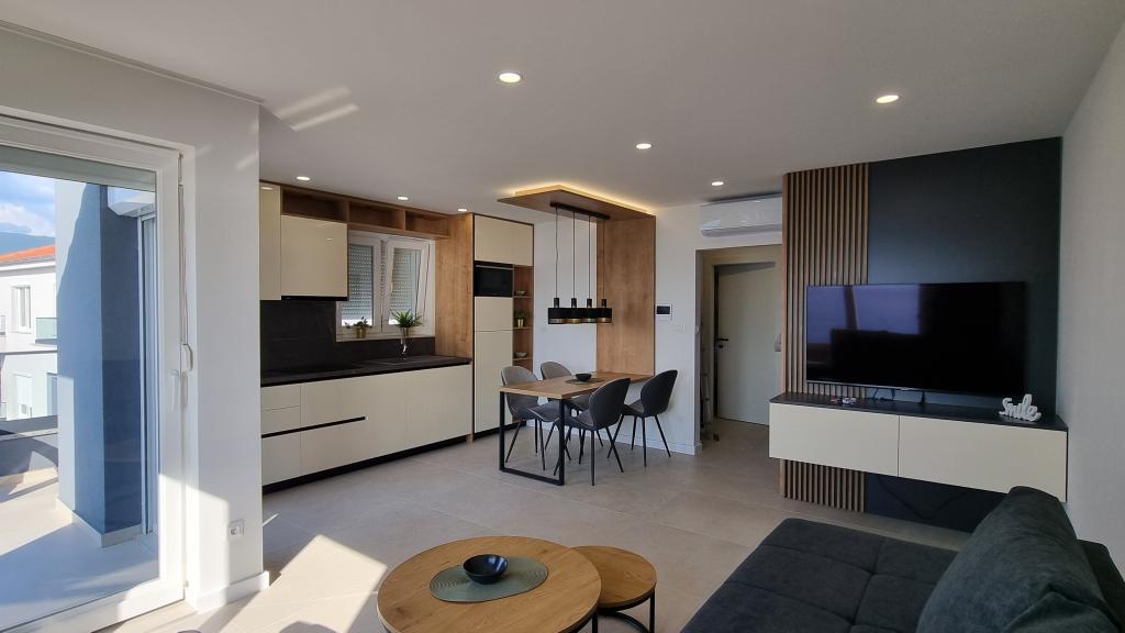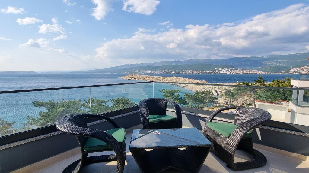 Disse luksuslejligheder med havudsigt er beliggende i et kompleks af bygninger i en rolig beliggenhed. Alle lejligheder er moderne udstyret med to eller endda tre klimaanlæg og smart-tv i stuer og soveværelser. Bygningen har en stor swimmingpool med saltvand (36 m2) til fælles brug, og den er åben fra maj til oktober, med temperaturer der normalt når op på 20-26°C.. Bygningen har i alt 12 lejligheder. Bygningen har en fuldt indhegnet privat parkeringsplads. Der er også en stor stenstrand i umiddelbar nærhed, og i den tilstødende bygning er der en fremragende restaurant, der også byder på et udvalg af lokale specialiteter. Alle lejligheder er udstyret med induktionskomfur, køleskab med fryser, elkedel, kaffemaskine, brødrister, opvaskemaskine og mikroovn. Området ved siden af poolen er udstyret med liggestole, parasoller og en udendørs bruser. Der er gratis trådløs internetadgang overalt i bygningen.