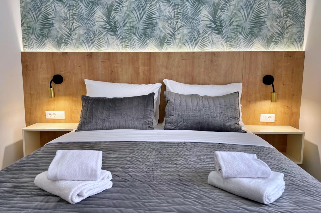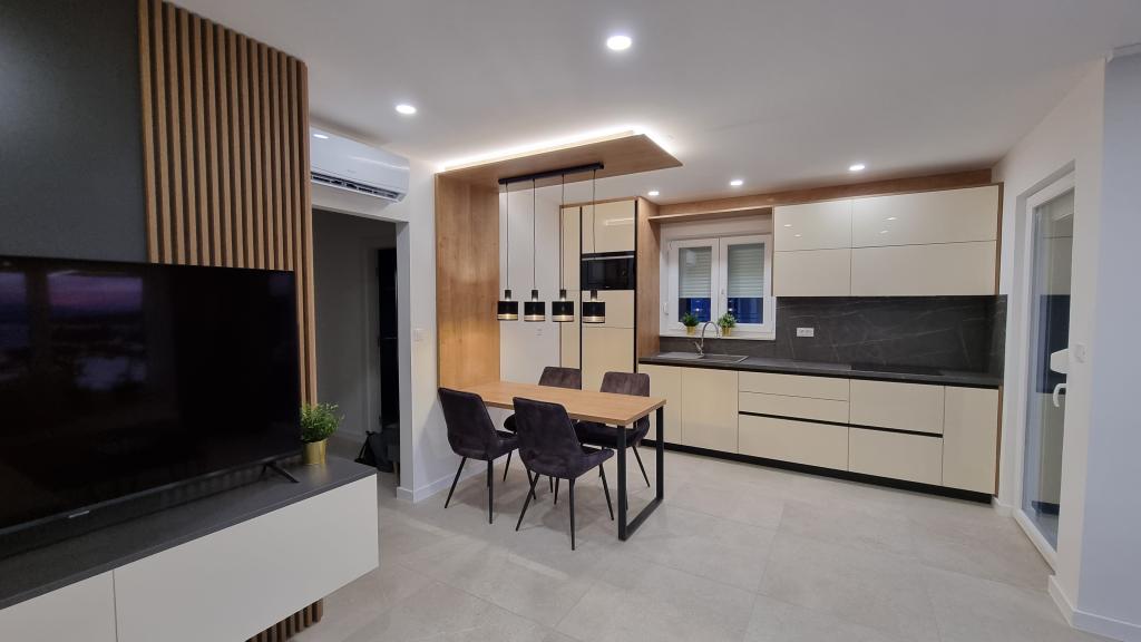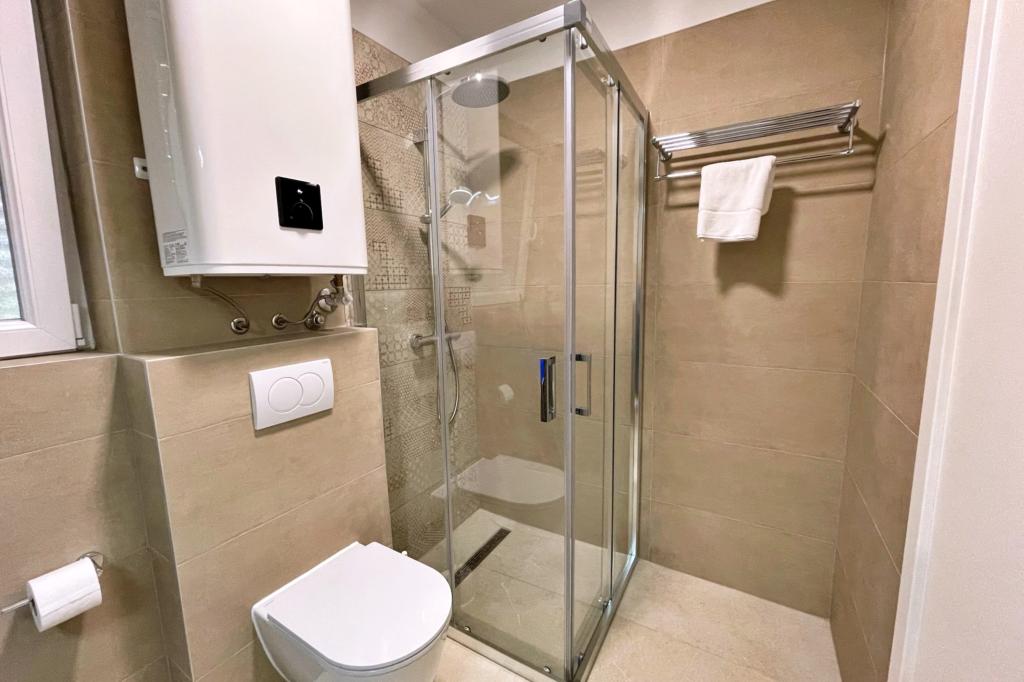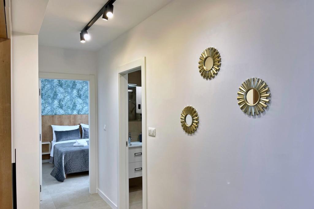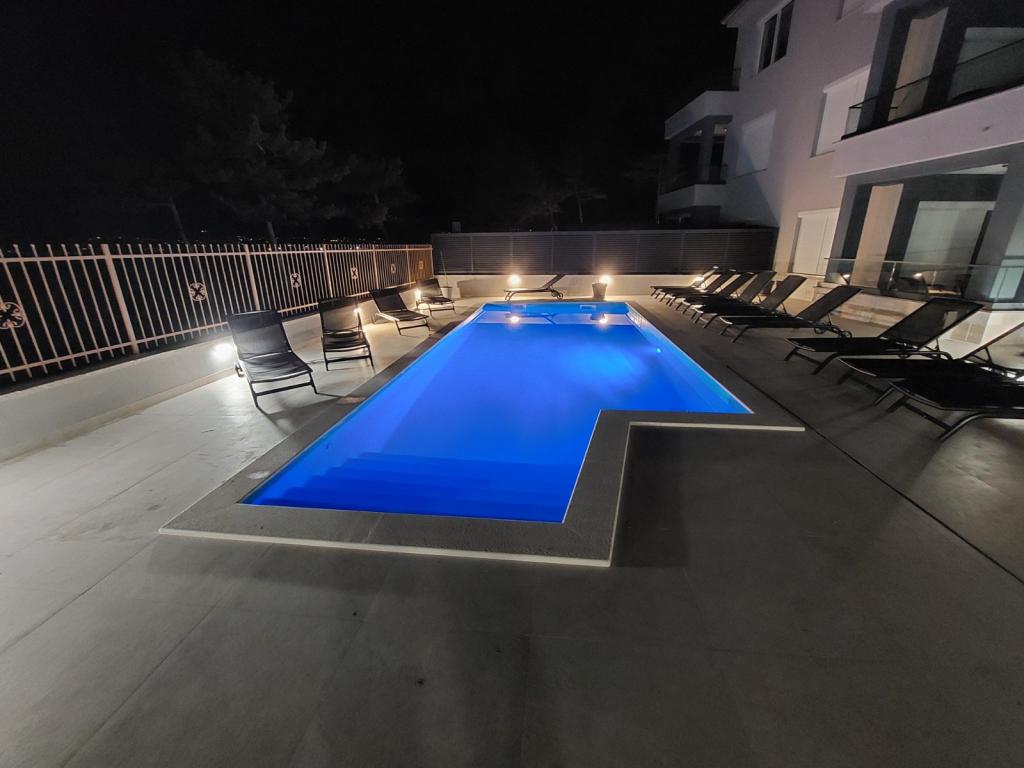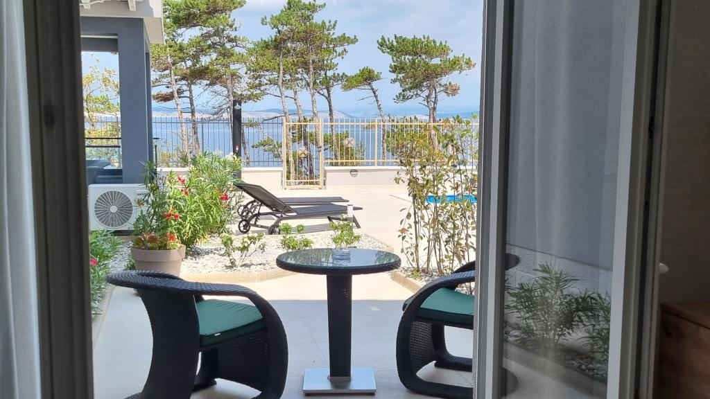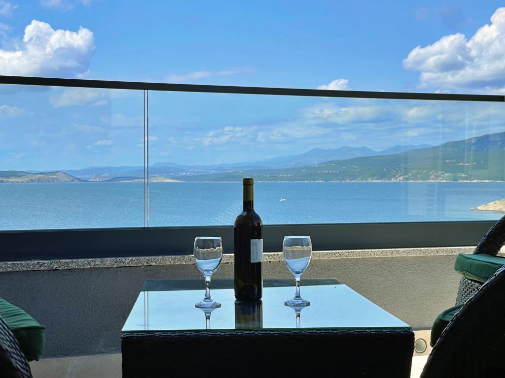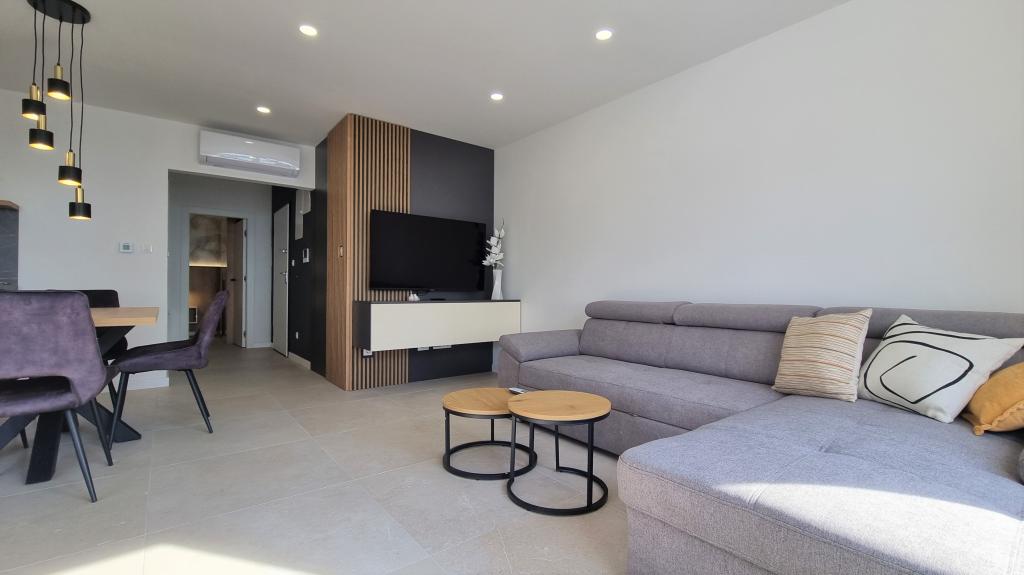 Disse luksuslejligheder med havudsigt er beliggende i et kompleks af bygninger i en rolig beliggenhed. Alle lejligheder er moderne udstyret med to eller endda tre klimaanlæg og smart-tv i stuer og soveværelser. Bygningen har en stor swimmingpool med saltvand (36 m2) til fælles brug, og den er åben fra maj til oktober, med temperaturer der normalt når op på 20-26°C.. Bygningen har i alt 12 lejligheder. Bygningen har en fuldt indhegnet privat parkeringsplads. Der er også en stor stenstrand i umiddelbar nærhed, og i den tilstødende bygning er der en fremragende restaurant, der også byder på et udvalg af lokale specialiteter. Alle lejligheder er udstyret med induktionskomfur, køleskab med fryser, elkedel, kaffemaskine, brødrister, opvaskemaskine og mikroovn. Området ved siden af poolen er udstyret med liggestole, parasoller og en udendørs bruser. Der er gratis trådløs internetadgang overalt i bygningen.