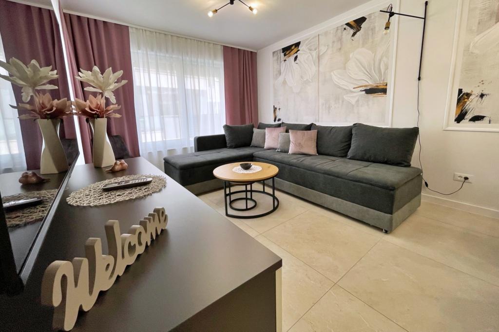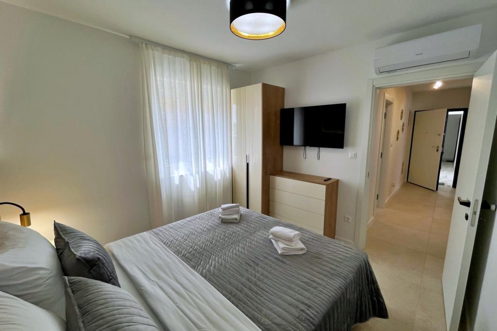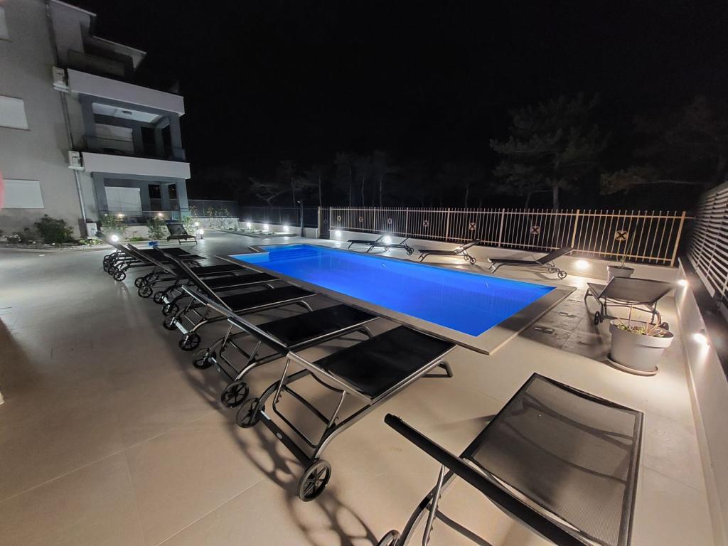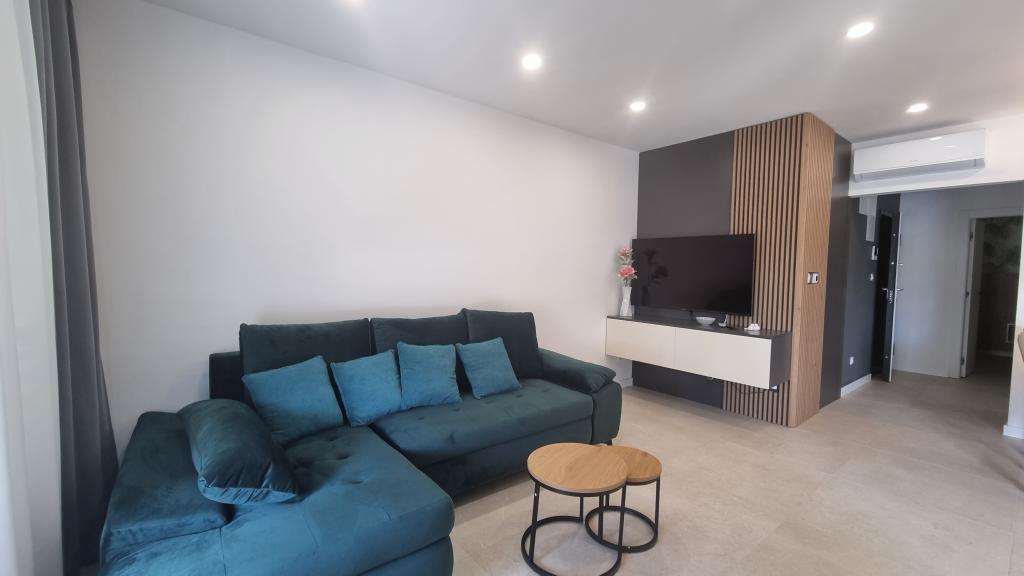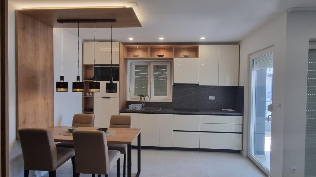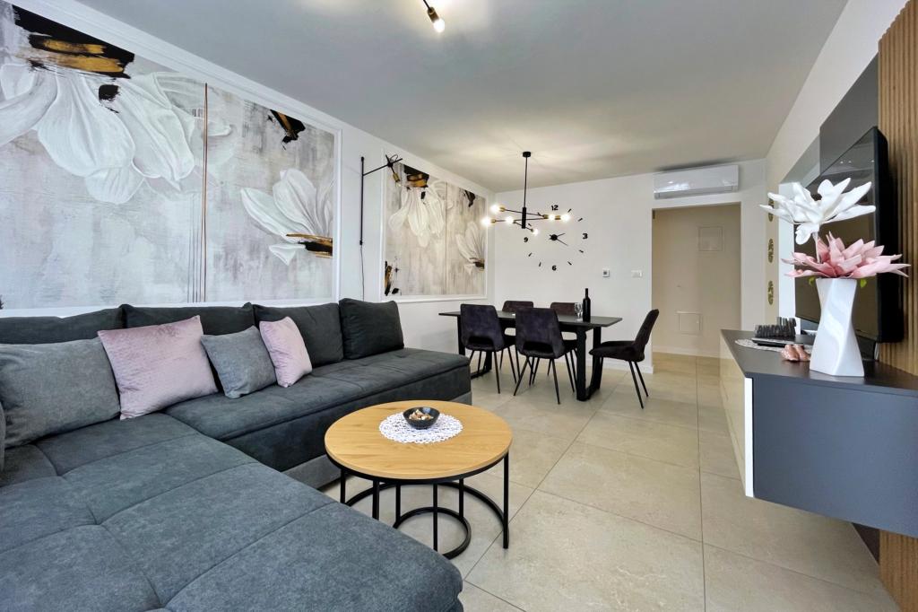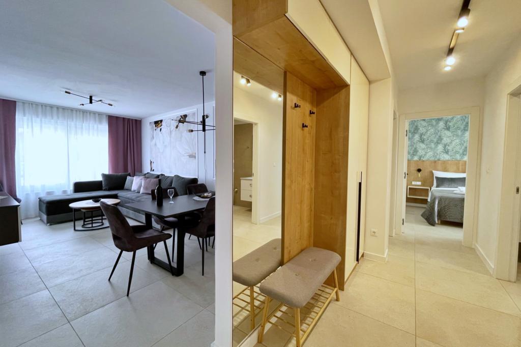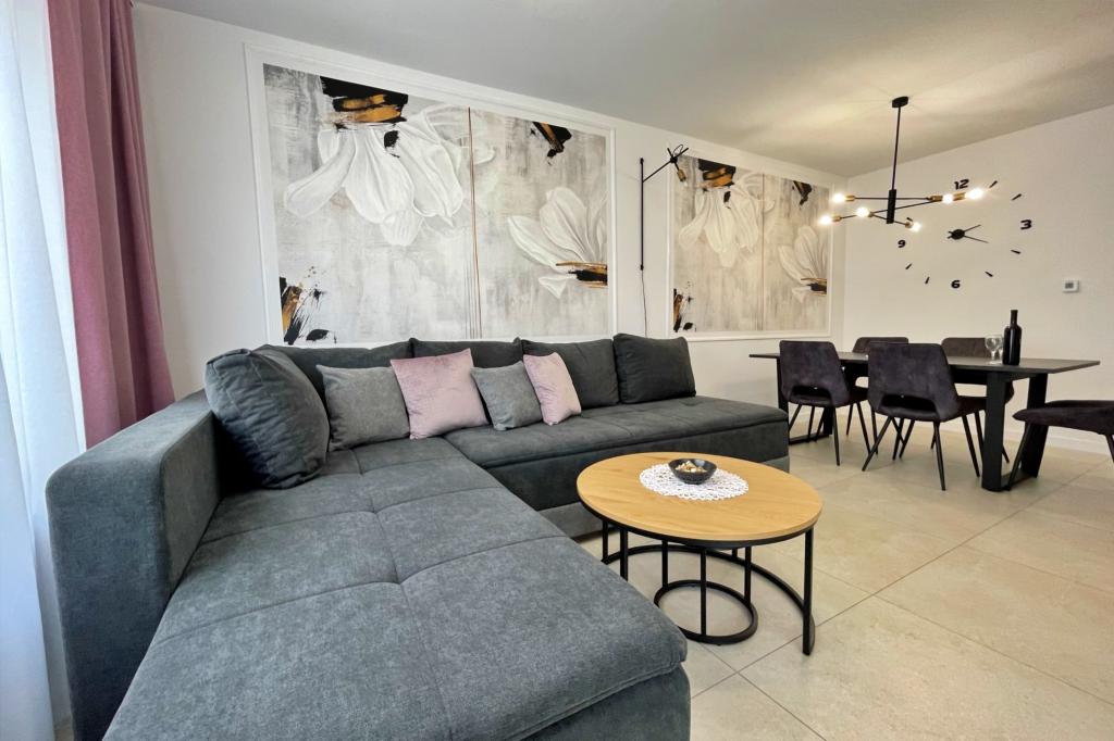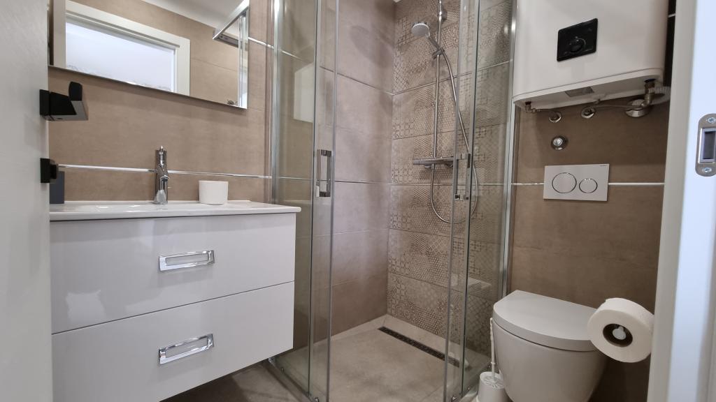Disse luksuslejligheder med havudsigt er beliggende i et kompleks af bygninger i en rolig beliggenhed. Alle lejligheder er moderne udstyret med to eller endda tre klimaanlæg og smart-tv i stuer og soveværelser. Bygningen har en stor swimmingpool med saltvand (36 m2) til fælles brug, og den er åben fra maj til oktober, med temperaturer der normalt når op på 20-26°C.. Bygningen har i alt 12 lejligheder. Bygningen har en fuldt indhegnet privat parkeringsplads. Der er også en stor stenstrand i umiddelbar nærhed, og i den tilstødende bygning er der en fremragende restaurant, der også byder på et udvalg af lokale specialiteter. Alle lejligheder er udstyret med induktionskomfur, køleskab med fryser, elkedel, kaffemaskine, brødrister, opvaskemaskine og mikroovn. Området ved siden af poolen er udstyret med liggestole, parasoller og en udendørs bruser. Der er gratis trådløs internetadgang overalt i bygningen.