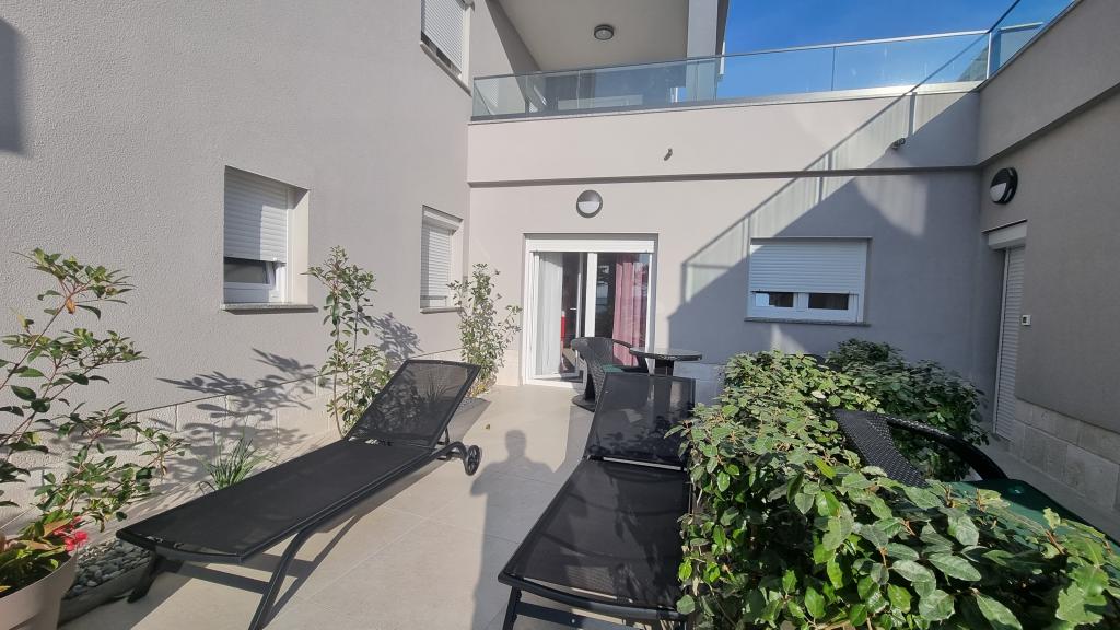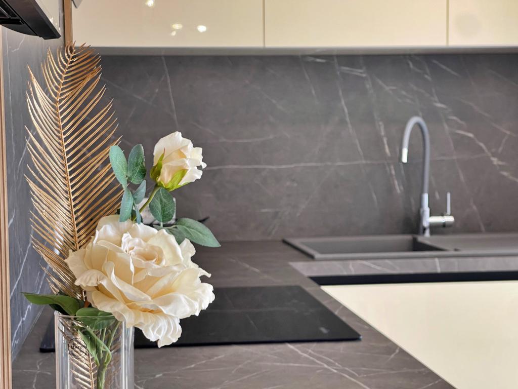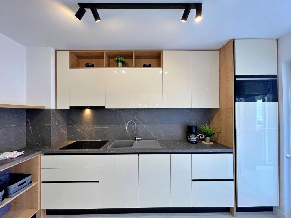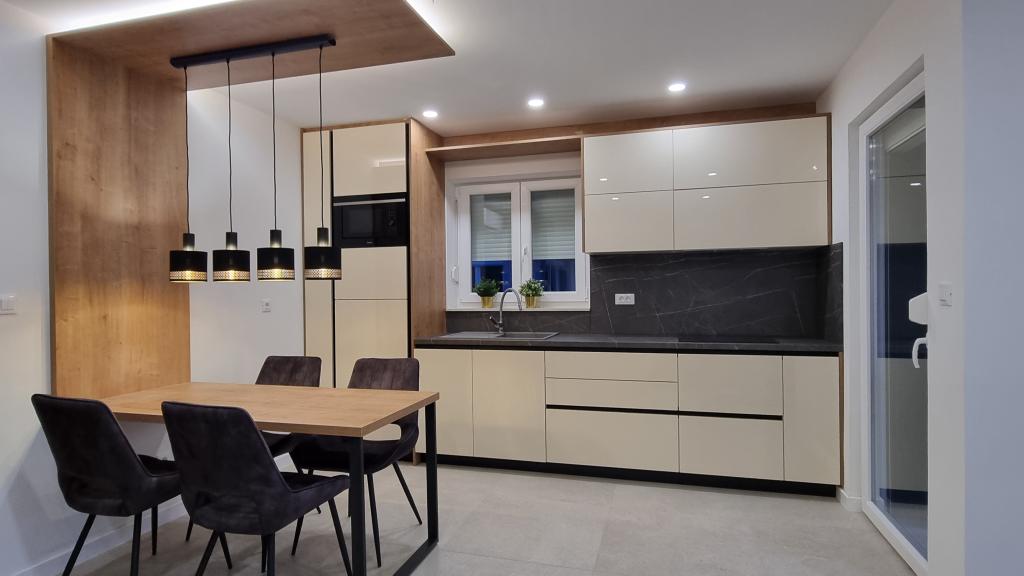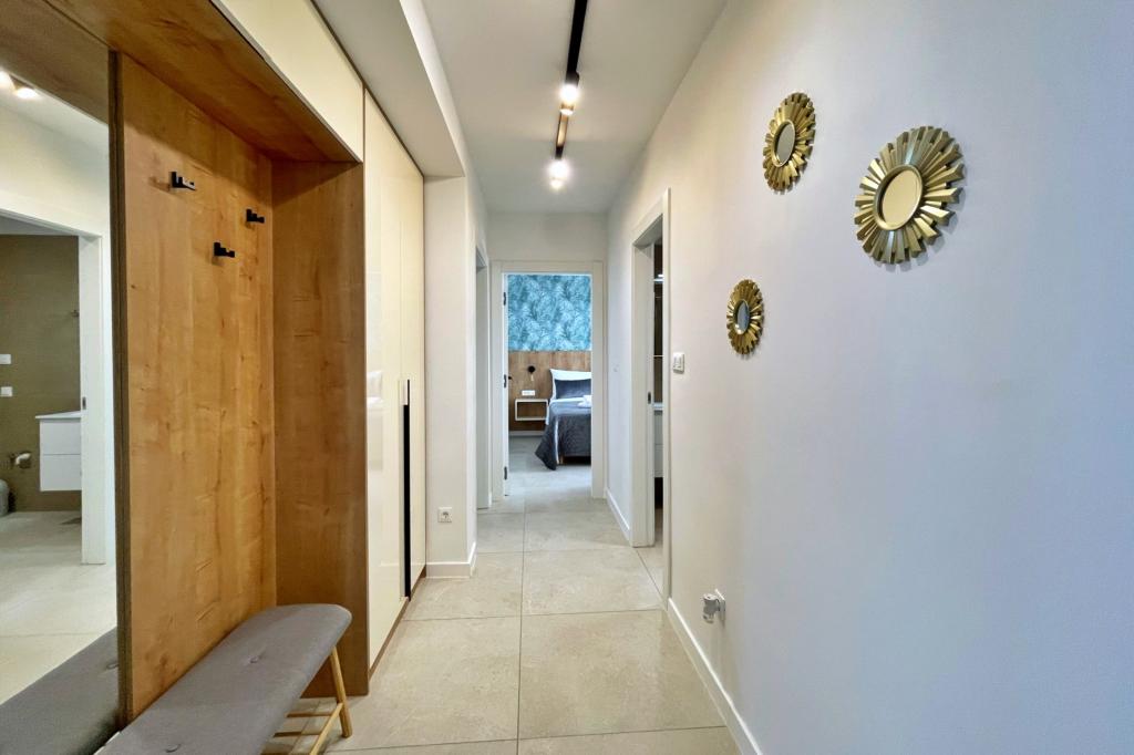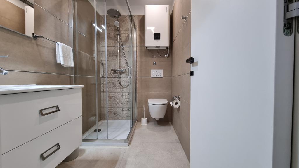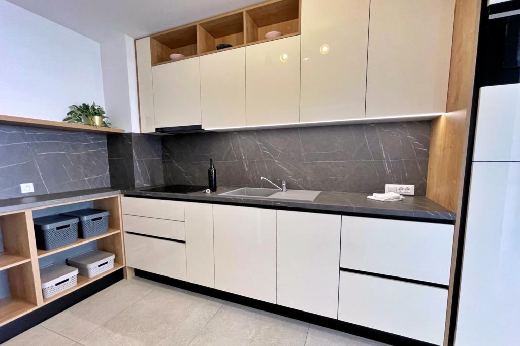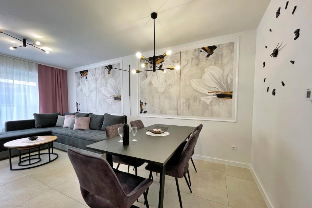 Disse luksuslejligheder med havudsigt er beliggende i et kompleks af bygninger i en rolig beliggenhed. Alle lejligheder er moderne udstyret med to eller endda tre klimaanlæg og smart-tv i stuer og soveværelser. Bygningen har en stor swimmingpool med saltvand (36 m2) til fælles brug, og den er åben fra maj til oktober, med temperaturer der normalt når op på 20-26°C.. Bygningen har i alt 12 lejligheder. Bygningen har en fuldt indhegnet privat parkeringsplads. Der er også en stor stenstrand i umiddelbar nærhed, og i den tilstødende bygning er der en fremragende restaurant, der også byder på et udvalg af lokale specialiteter. Alle lejligheder er udstyret med induktionskomfur, køleskab med fryser, elkedel, kaffemaskine, brødrister, opvaskemaskine og mikroovn. Området ved siden af poolen er udstyret med liggestole, parasoller og en udendørs bruser. Der er gratis trådløs internetadgang overalt i bygningen.