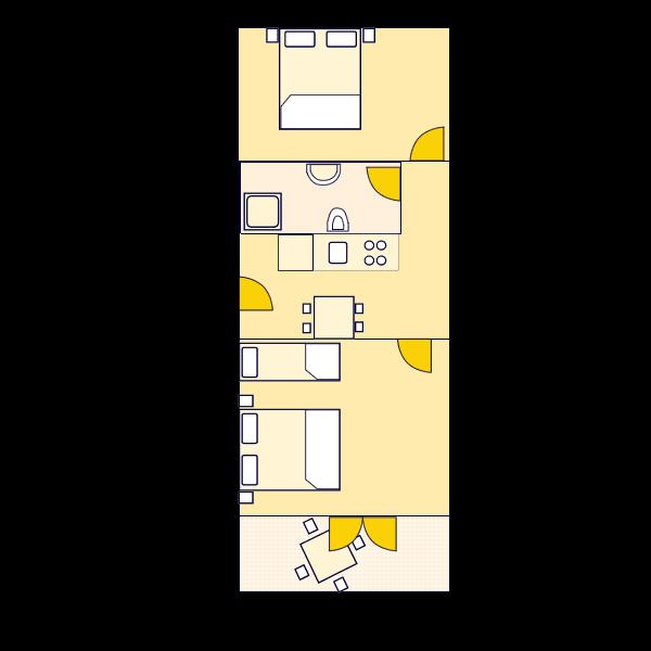 Ferielejligher til fire personer med ekstra seng (60 m2)