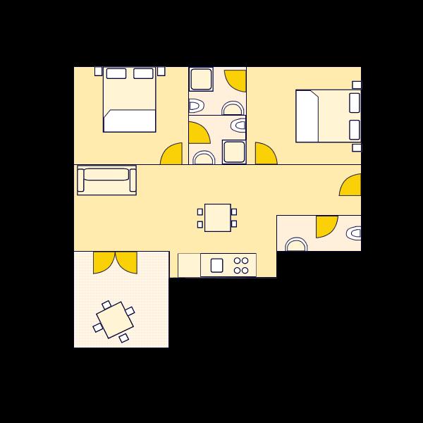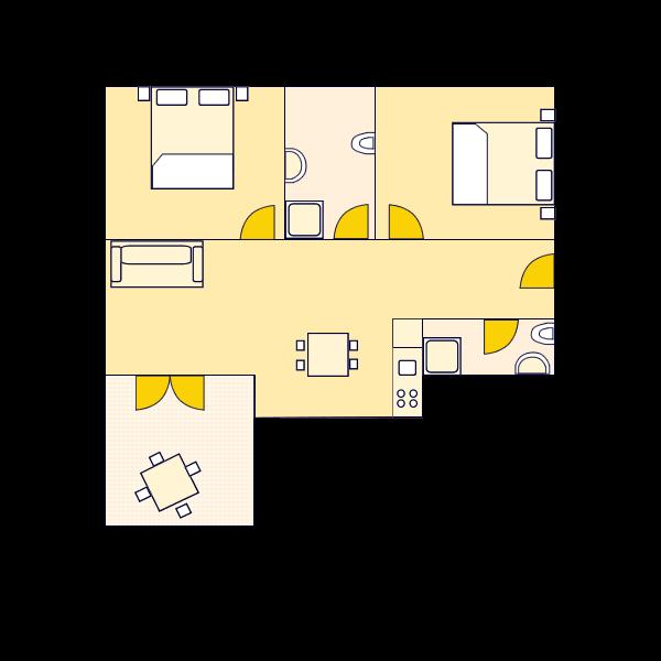 Ferielejligher til fire personer med to ekstra senge (90 m2)