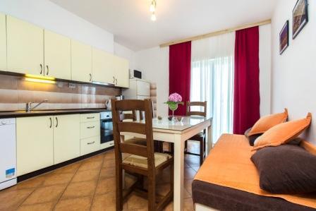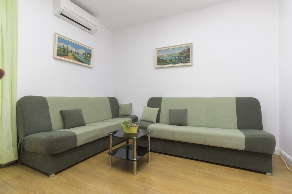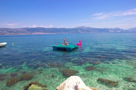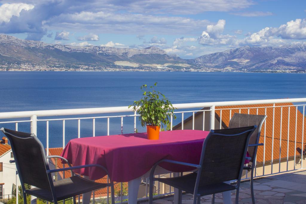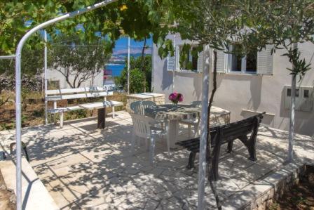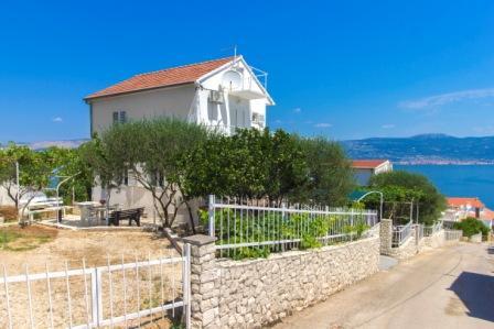 Katarina Apartments ligger på øen Ciovo, 5 km fra Trogir, ved indgangen til Slatina Øen Ciovo er forbundet med en bro med Trogir og forbundet med en 30-minutters bådlinje til Split. Lejlighederne ligger i en rolig og solrig skråning væk fra stranden 150 m. De er omgivet af en lukket have med oliventræer, vinstokke og andre middelhavsurter. Lejlighed A6 1 har 72 m2, 3 soveværelser, køkken med stue, 1 badeværelse og separat toilet. Lejligheden har to rummelige balkoner med udsigt over havet. Lejlighed A2 2 har 43 m2, 1 soveværelse, køkken med stue, badeværelse terrasse på 40 m2 med panoramaudsigt over Kastela Bugt og Split. Der tilbydes parkering i gården. I gården er der en grill, havemøbler samt en havebruser til delt brug. Mulighed for at bruge en vaskemaskine.