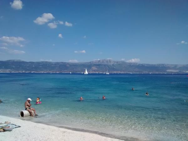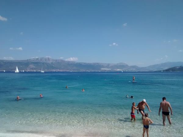 Fremragende lejlighed med alt det nødvendige for en familieferie med en balkon med udsigt over havet. Perfekt strand 2 minutters gang væk med mange aktiviteter. Tæt på store byer for sightseeing - Split og Trogir. Og meget behagelig vært, der bekymrer sig for deres gæster. Jeg kan varmt anbefale det.
