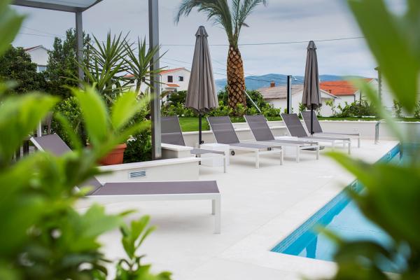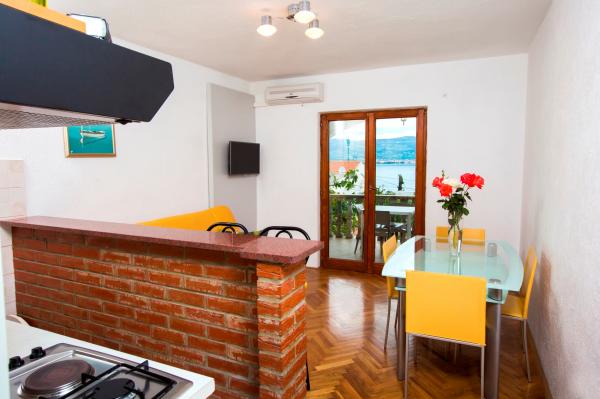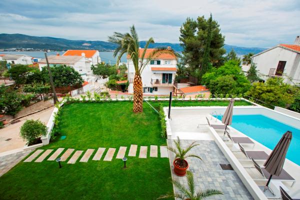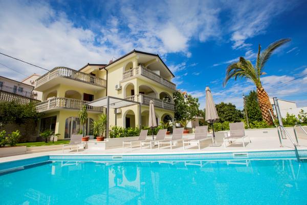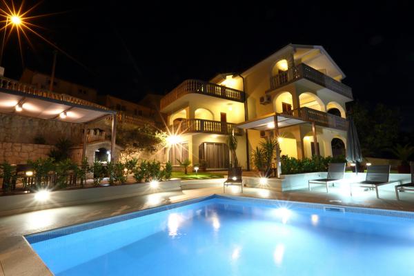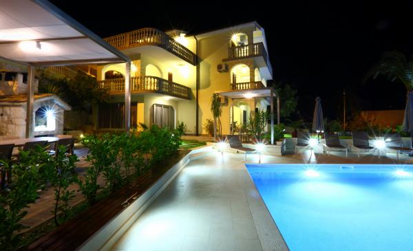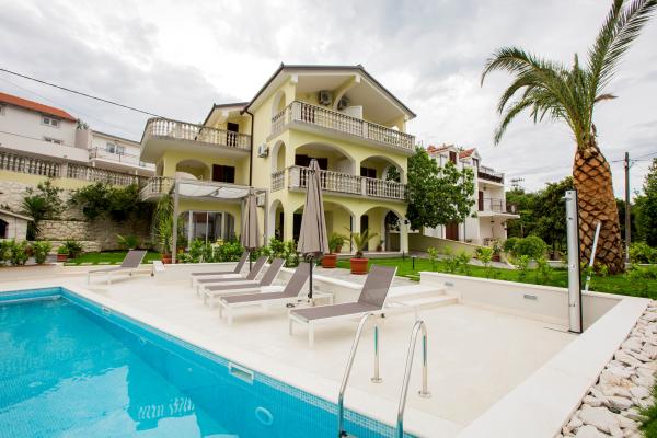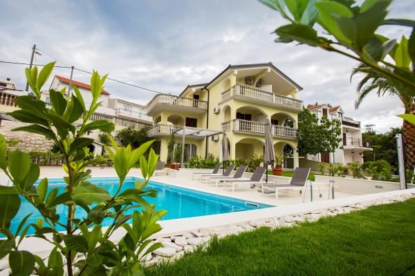 Huset ligger 90 meter fra havet, i et roligt område i Slatina. Der er en swimmingpool, en grill for alle gæster, gratis internet og parkeringspladser. Hver lejlighed har havudsigt, og to terrasser, hvor du kan slappe af og nyde din ferie. Alle lejligheder har aircondition og godt udstyret.