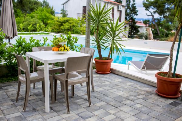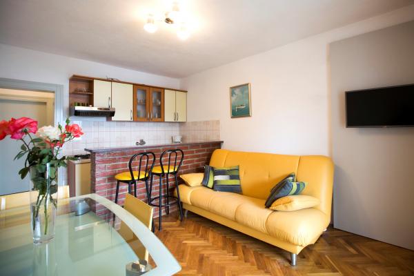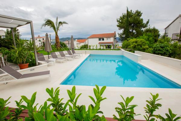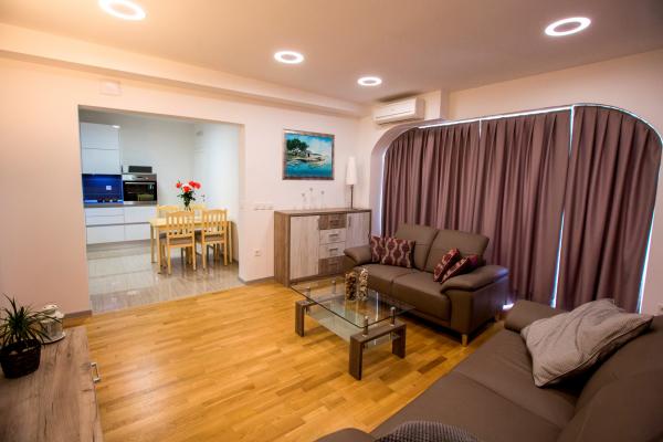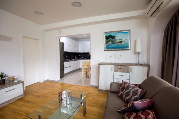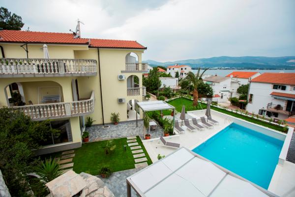 Turistskat er inkluderet i prisen.Lejligheden og bygningen er moderne, kvalitet, velholdt og frem for alt ren. Lejligheden er meget komfortabel og rummelig, ideel til familien. Udsigten fra balkonen til havet er fantastisk. Puljen i den anlagte have er meget ren og inviterer dig til at slappe af. Ejeren er utroligt hjælpsom, vi kan ikke takke ham nok for et så behageligt ophold. Fantastisk beliggenhed til at udforske den centrale dalmatiske kyst.