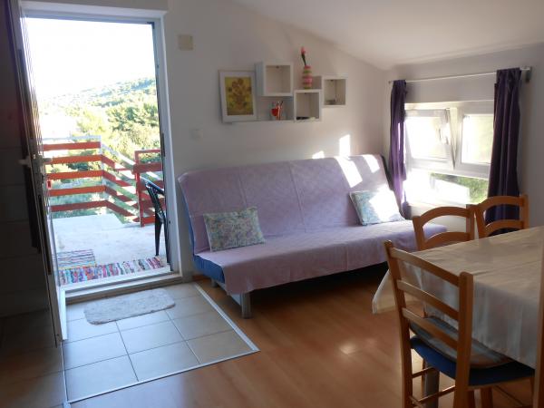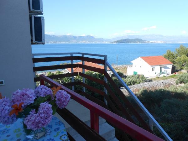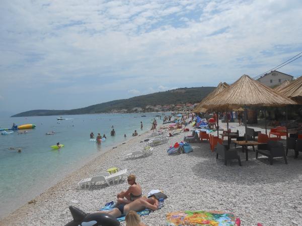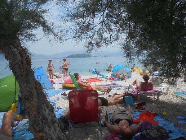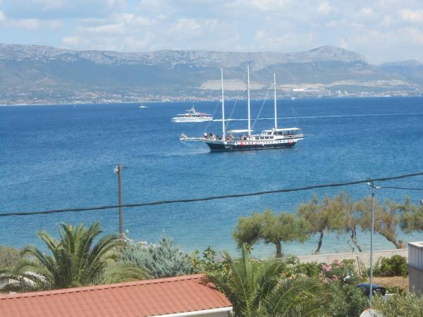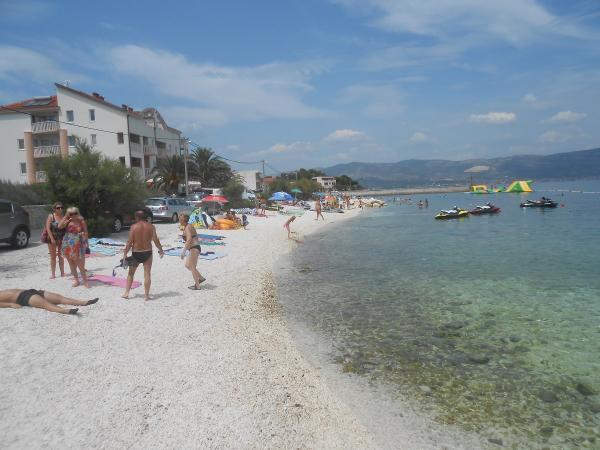 Vi følte os meget komfortable hos fru Ivanka, lejligheden var ren, godt møbleret, alle vinduer havde net. Værten er en meget sød dame, hun gav os alt, hvad vi havde brug for. Huset ligger rigtig tæt på stranden og samtidig under skoven, så det meste af tiden var der ikke behov for aircondition, der var en behagelig luft fra bjergene (og vi boede på loftet). Stranden er ren, stenet, ubefolket. Nærhed og god tilgængelighed af to smukke historiske byer - Trogir og Split (i bil, offentlig transport, båd). En billet til båden Slatine - Split koster 5,50 Euro