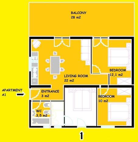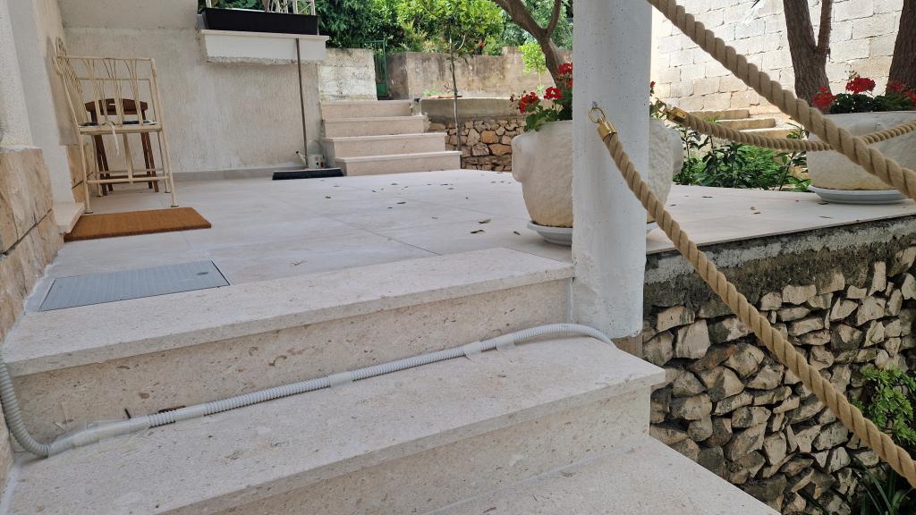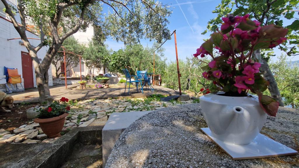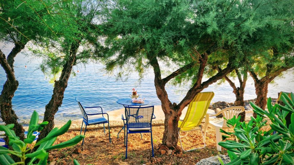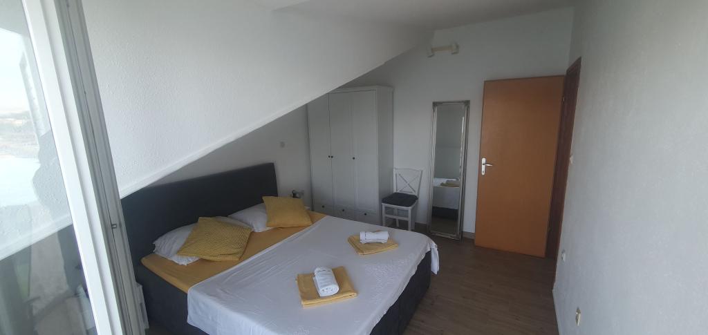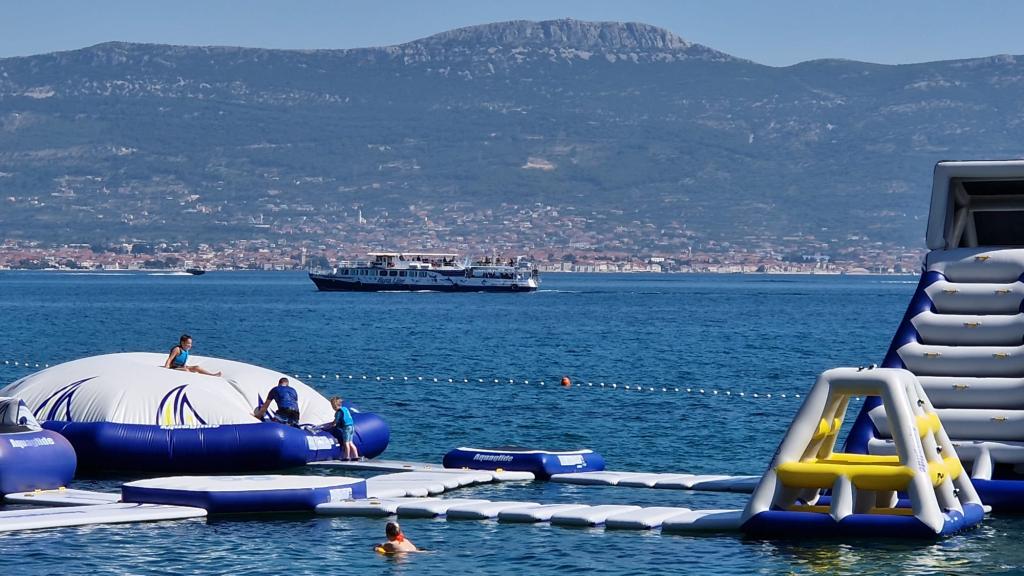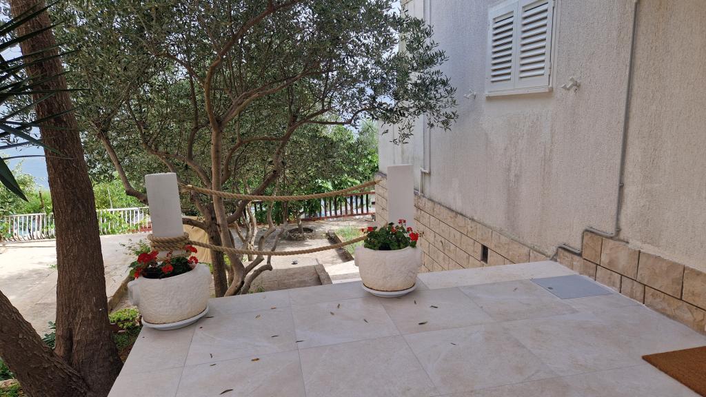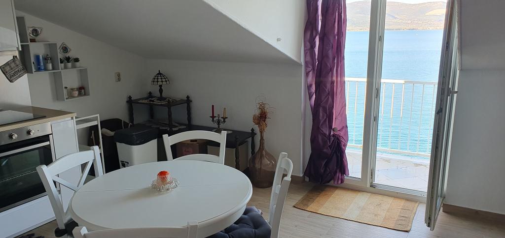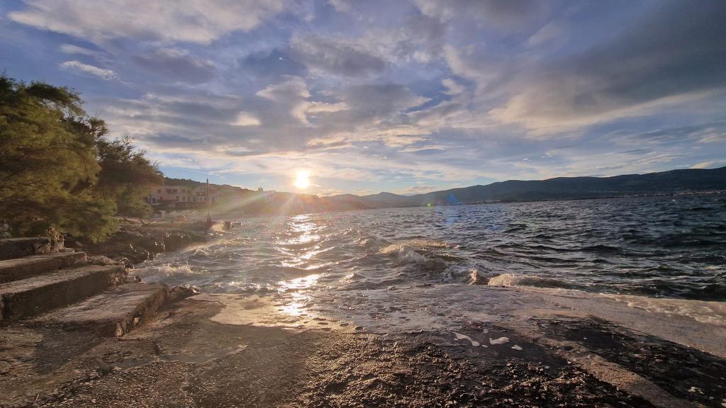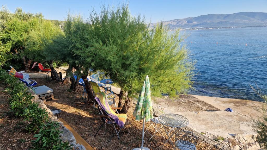 Lejlighederne er beliggende i rolige omgivelser i første række til havet. Parkering er til rådighed. De er ti minutters gang fra byen Slatina, hvilket er hvor langt det tager at komme til markedet. Trogir og Split kan også nås med båd på en halv time. Lufthavnen ligger en halv times kørsel væk. Lejlighedspriser inkluderer turistskat, gratis parkering, ubegrænset brug af aircondition, rengøring. Minimum ophold er fem nætter. Kom og nyd havet og solen...