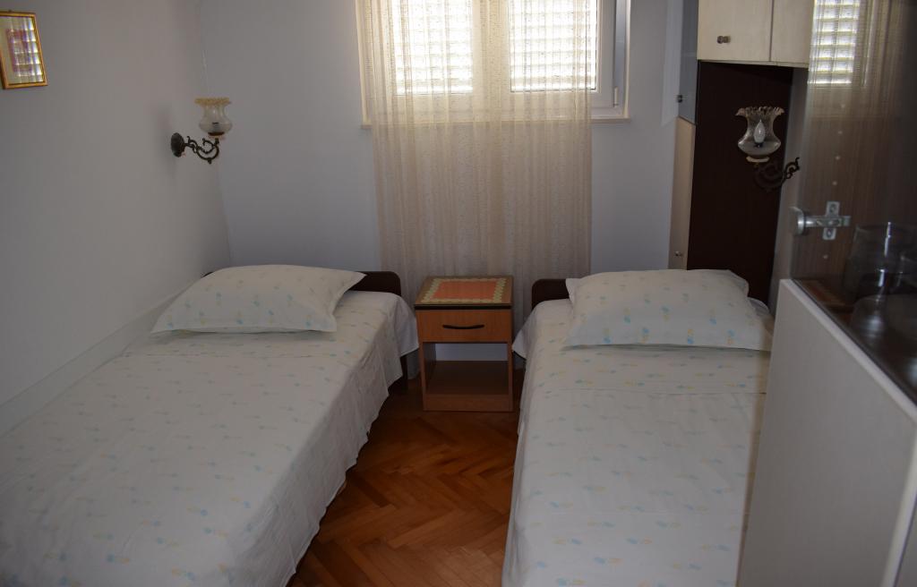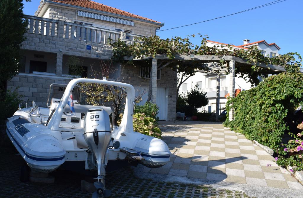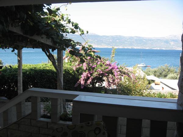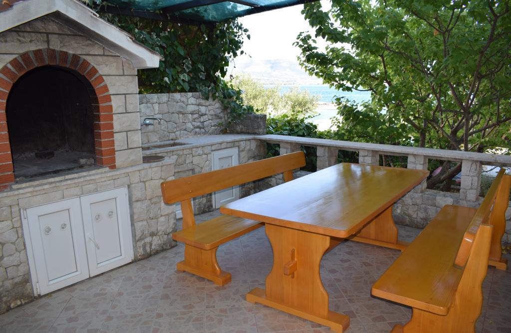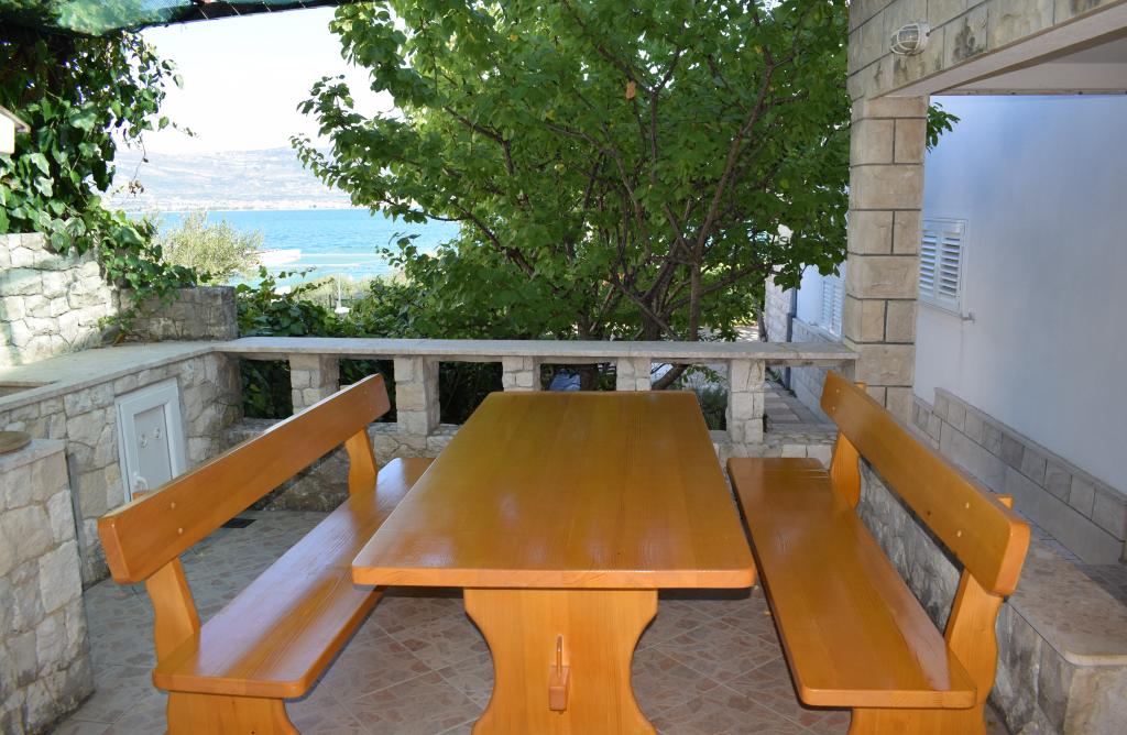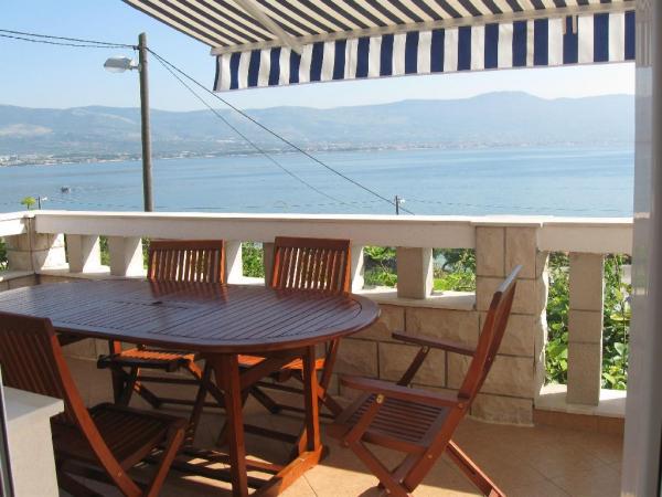 Lejlighed i overensstemmelse med beskrivelsen og fotos. Veludstyret. 2 soveværelser, et værelse med en spisestue med 2 sovesofaer, et køkken (der er alt) og et badeværelse. En smuk udsigt fra værelset og balkonen. På balkonen et bord med stole, liggestole og en tørretumbler. Meget tæt på stranden, rent, turkisvand. På stranden en bar, bruser. Rocky beach, grus strand og beton steder. Meget tæt på Trogir og Split - vand taxier eller offentlig transport. Til supermarkedet omkring 300 m bringer brødet til nabohuset et dørtrinbageri hver dag omkring kl 9. Ejeren tager sig af gæster, nice, smilende. Vi anbefaler det stærkt!