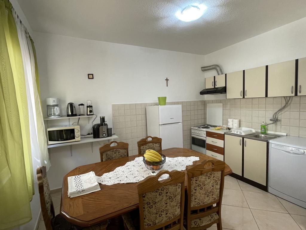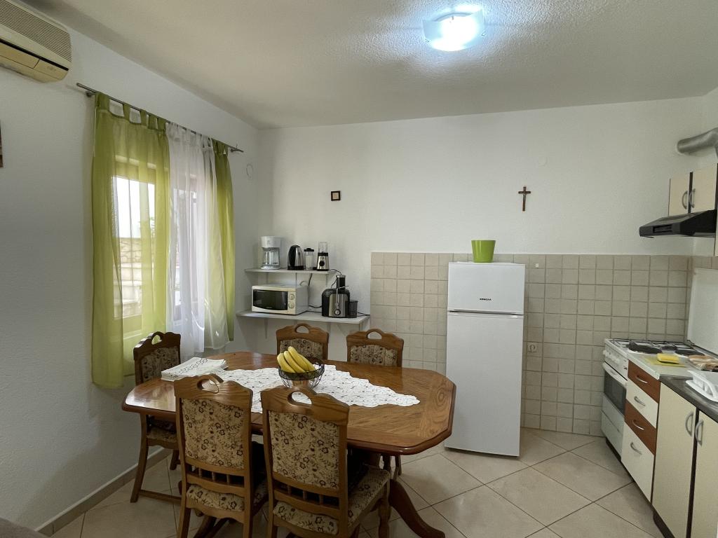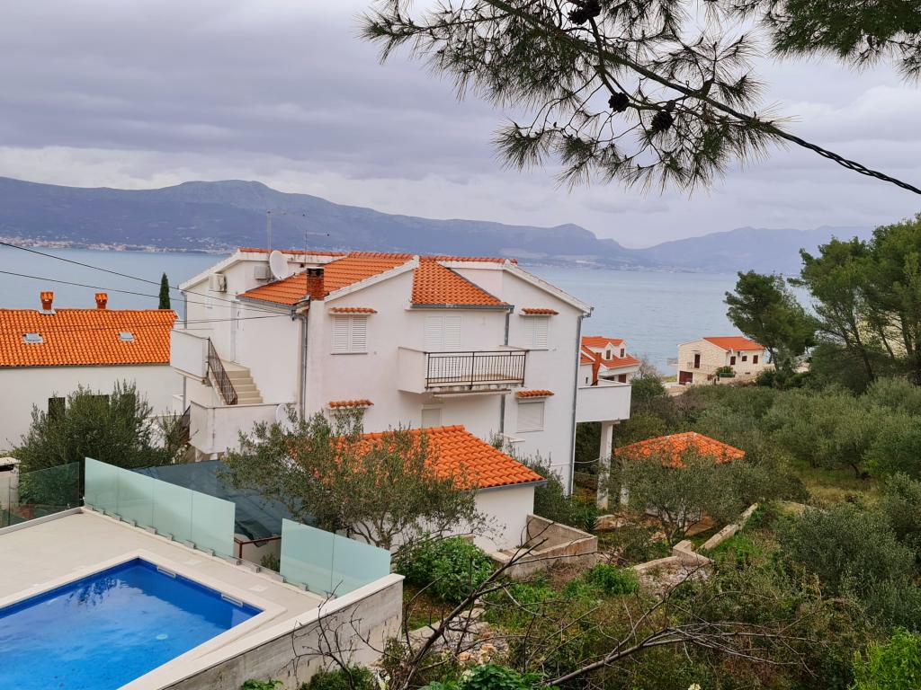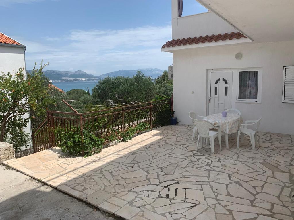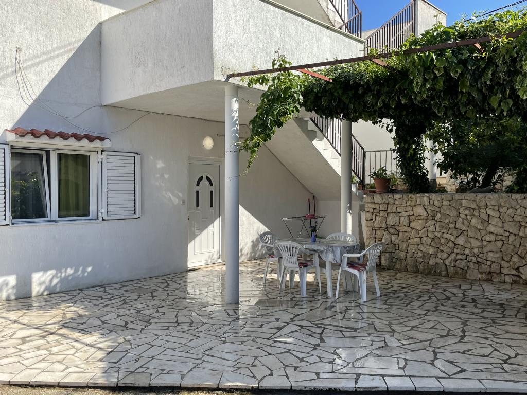 Indkvarteringsfaciliteten er beliggende i en smuk, stille og attraktiv lille by Slatine, som er 6 km væk fra UNESCO-byen Trogir, 30 km fra UNESCO-byen Split. Indkvarteringsfaciliteten er væk fra stenstranden og havet kun 50 m. Indkvarteringsfaciliteten har havudsigt. Indkvarteringen er omgivet af fred, ro og et velmenende kvarter. Ejendommen har sin egen indhegnet parkeringsplads, som er gratis. Indkvarteringsfaciliteten består af to boligenheder (lejlighed A4 + 2 og lejlighed A4.). Hver boligenhed har en gratis parkeringsplads i gårdhaven til indkvarteringsfaciliteten. Lejlighed A4 + 2: Lejlighedsarealet er 65 m2, består af en stor stue og køkken, 2 store soveværelser med dobbeltseng, stort toilet og to store terrasser, på den ene terrasse er der pejs til grill. Indkvarteringsenheden har plads til maksimalt 6 personer (4 voksne + 2 voksne i en sammenfoldelig sofa i stuen.) Indkvarteringsenheden har en sammenklappelig barneseng. Lejlighed A4: Arealet af denne boligenhed er 45 m2. Den består af en stue og et køkken. Et værelse med en dobbeltseng og et værelse med 2 senge og et lille toilet. Boligenheden har en stor terrasse med delvis havudsigt. På terrassen er der en pejs til grill. Højst 4 personer kan bo i boligenheden. Indkvarteringsenhed tilbyder en barneseng. Seværdigheder i Slatine: Slatine's mest berømte vartegn er helligdommen til Vor Frue af Prizidnice og kirken antagelse af den hellige jomfru Maria. By Trogir: Trogir er en i en række byer i Dalmatien, der er under beskyttelse af UNESCO. Trogir blev grundlagt af de antikke grækere, og gennem århundrederne blev det den bedst bevarede romansk-gotiske by i Europa. Faktisk et rigtigt slotsmuseum. Ud over velbevarede mure, tårne og byporte kan du her se de smukke bypaladser, adskillige kirker og klostre samt katedralen med en unik portal. Z