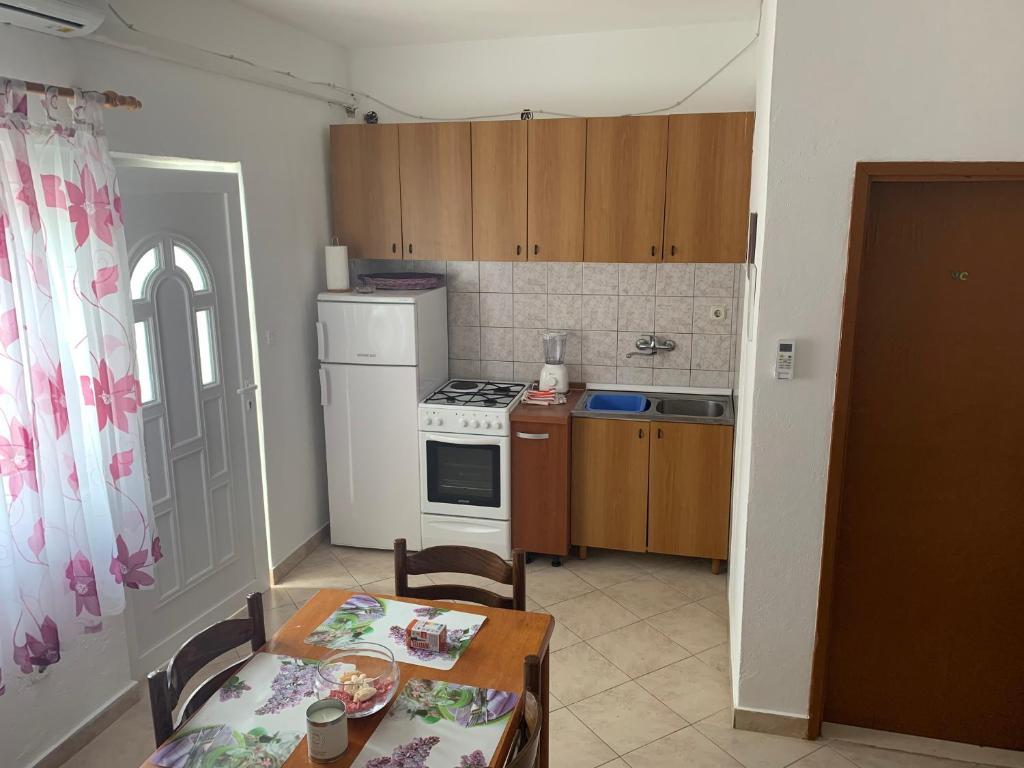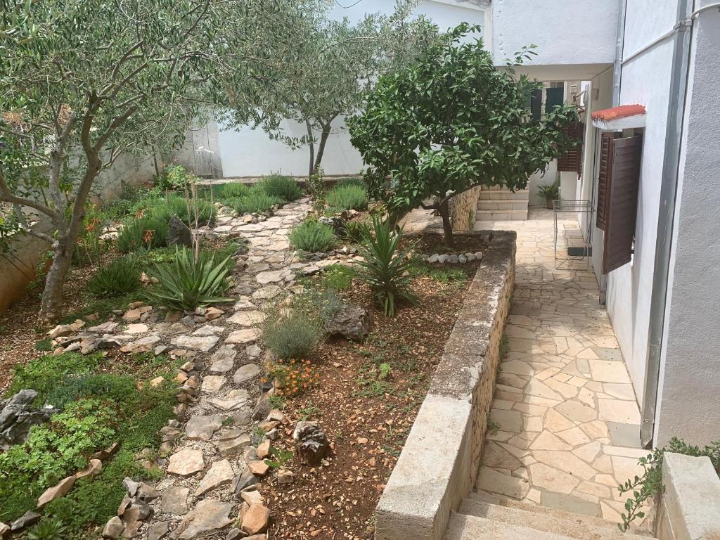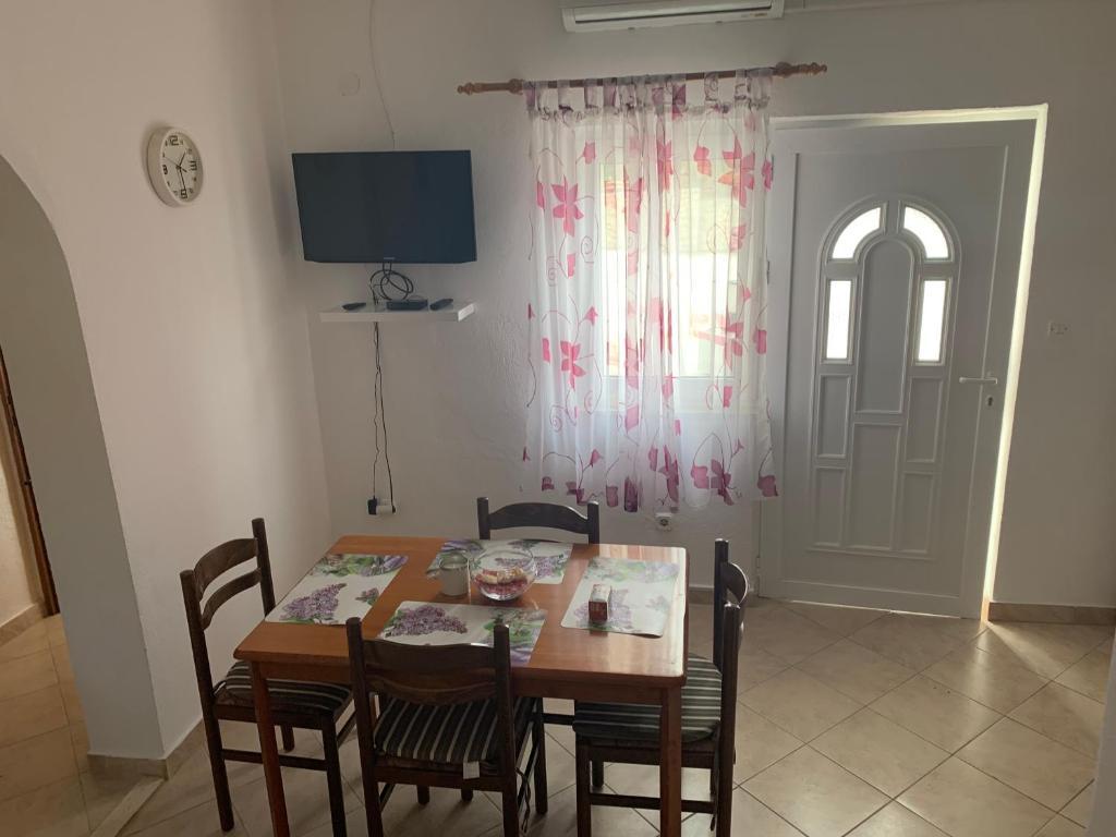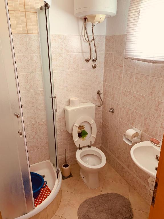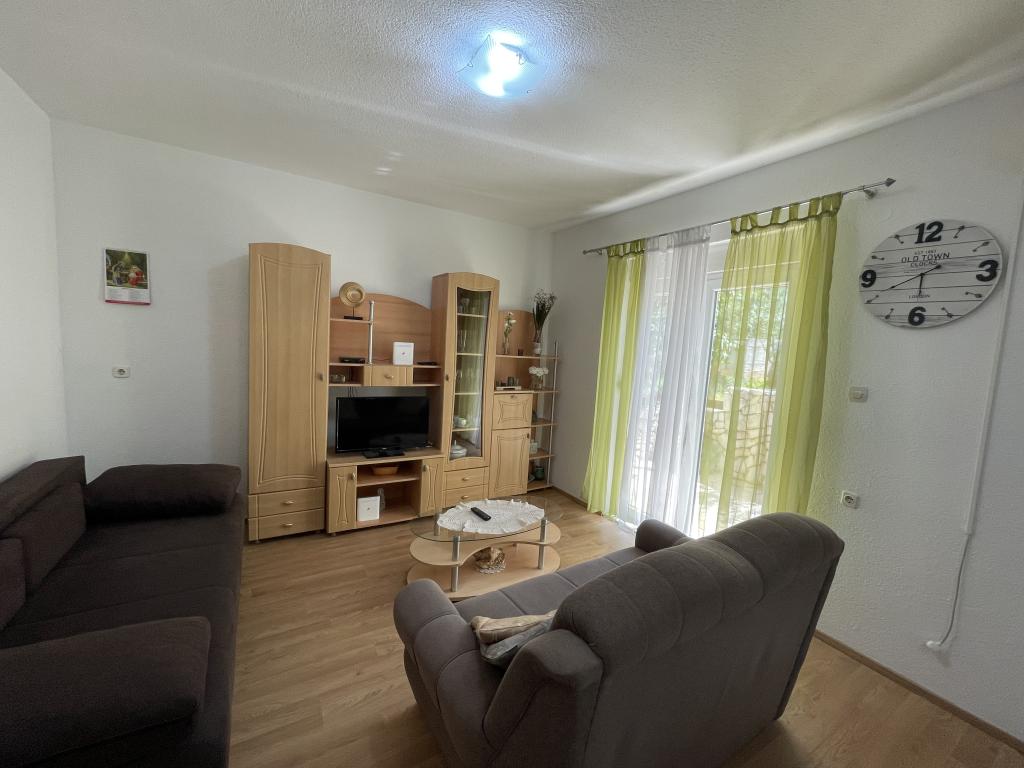 Indkvarteringsfaciliteten er beliggende i en smuk, stille og attraktiv lille by Slatine, som er 6 km væk fra UNESCO-byen Trogir, 30 km fra UNESCO-byen Split. Indkvarteringsfaciliteten er væk fra stenstranden og havet kun 50 m. Indkvarteringsfaciliteten har havudsigt. Indkvarteringen er omgivet af fred, ro og et velmenende kvarter. Ejendommen har sin egen indhegnet parkeringsplads, som er gratis. Indkvarteringsfaciliteten består af to boligenheder (lejlighed A4 + 2 og lejlighed A4.). Hver boligenhed har en gratis parkeringsplads i gårdhaven til indkvarteringsfaciliteten. Lejlighed A4 + 2: Lejlighedsarealet er 65 m2, består af en stor stue og køkken, 2 store soveværelser med dobbeltseng, stort toilet og to store terrasser, på den ene terrasse er der pejs til grill. Indkvarteringsenheden har plads til maksimalt 6 personer (4 voksne + 2 voksne i en sammenfoldelig sofa i stuen.) Indkvarteringsenheden har en sammenklappelig barneseng. Lejlighed A4: Arealet af denne boligenhed er 45 m2. Den består af en stue og et køkken. Et værelse med en dobbeltseng og et værelse med 2 senge og et lille toilet. Boligenheden har en stor terrasse med delvis havudsigt. På terrassen er der en pejs til grill. Højst 4 personer kan bo i boligenheden. Indkvarteringsenhed tilbyder en barneseng. Seværdigheder i Slatine: Slatine's mest berømte vartegn er helligdommen til Vor Frue af Prizidnice og kirken antagelse af den hellige jomfru Maria. By Trogir: Trogir er en i en række byer i Dalmatien, der er under beskyttelse af UNESCO. Trogir blev grundlagt af de antikke grækere, og gennem århundrederne blev det den bedst bevarede romansk-gotiske by i Europa. Faktisk et rigtigt slotsmuseum. Ud over velbevarede mure, tårne og byporte kan du her se de smukke bypaladser, adskillige kirker og klostre samt katedralen med en unik portal. Z