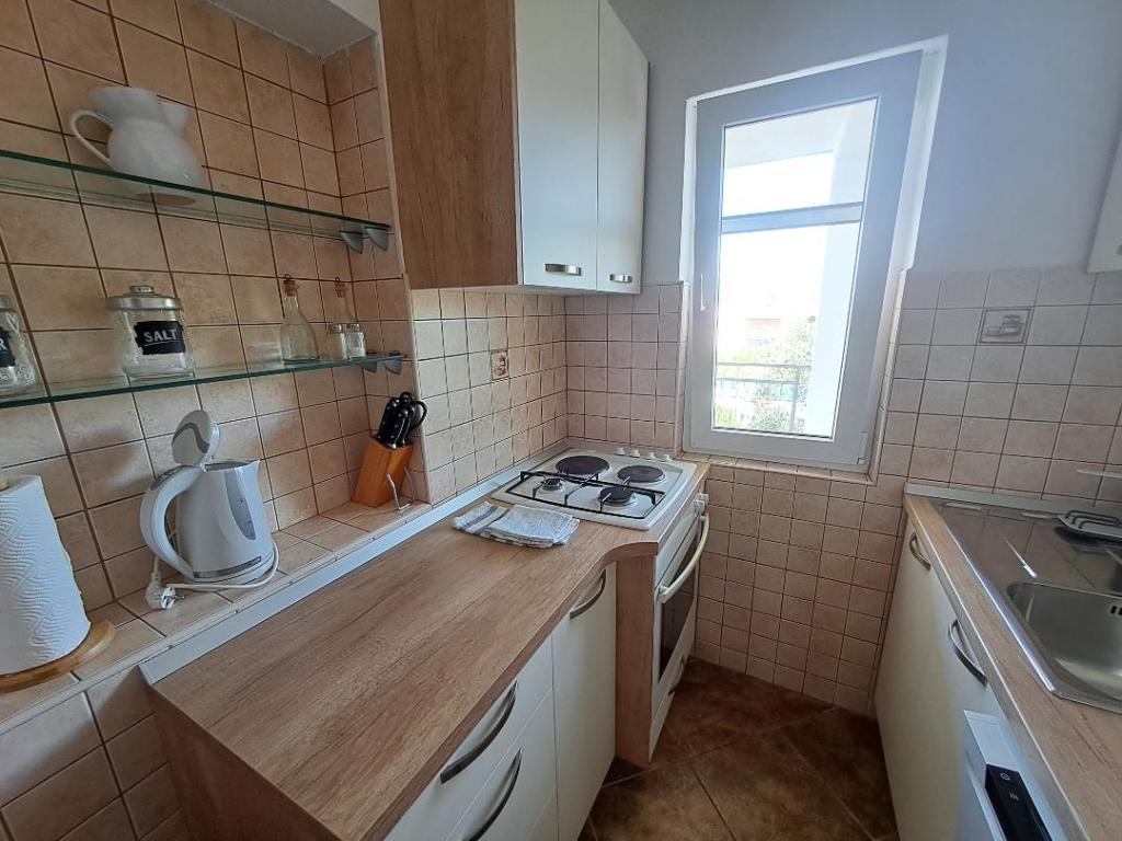 Helt fantastisk indkvartering. Den bedst udstyrede lejlighed. Masser af alt redskaber og tilbehør i køkkenet. Ekstra tæpper, håndklæder, masser af bøjler i skabet. Tørretumbler med knager til rådighed. Alt rent. Stor terrasse med siddepladser og plads til at placere et paddleboard og dykkerudstyr. Ejeren er meget venlig. En kort gåtur til en smuk stenstrand, hvor der er en café og hoppeattraktioner for børn. I nærheden er der restauranter, butikker, bageri, tobak, is, pizzeria, busstoppested og en lille havn, hvorfra båden afgår til Split og Trogir.