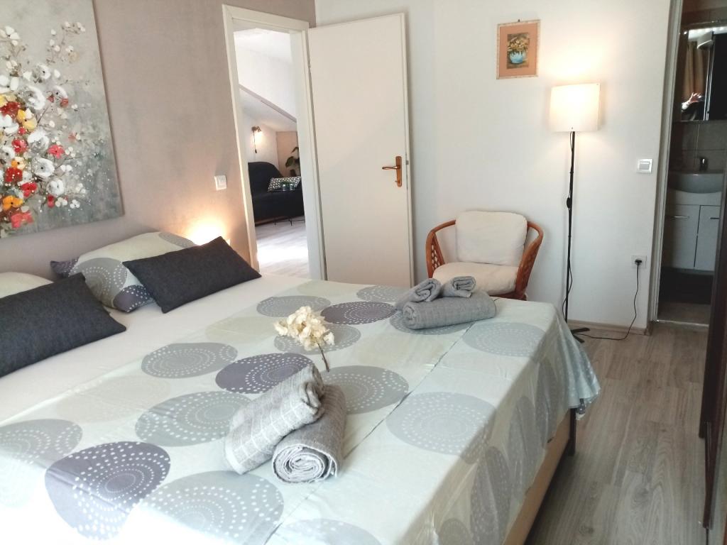 LEJLIGHEDER SILVA / Trogir-øen ČIOVO / i CENTRUM af en lille fisker- og turistby, på øen, er øen forbundet med en bro til byen TROGIR - en UNESCO-by. Øen Čiovo ligger 10 km fra motorvejen og 10 km fra lufthavnen, hvilket er en betydelig bekvemmelighed for turistrejser fra alle dele af EU og verden. Lejligheder i centrum, steder, derudover udstyret, et behageligt og roligt sted for hvile. Lejlighederne har havudsigt. Alle faciliteter er 50-100 m væk (strand, marked, caféer, restauranter, værtshus, pizzeria, børneforlystelsespark, sportslegeplads, alle faciliteter til sjov på havet, leje af cykler, scootere, både, bådture til nærliggende øer. . .). Lejlighedens rummelige miljø er i middelhavsstil med privat parkering, udendørs grill, udendørs solbruser... . Hvis du beslutter dig for at tilbringe din ferie i vores lejligheder, tror vi, at du vil genkende os som behagelige og velvillige værter. Velkomst