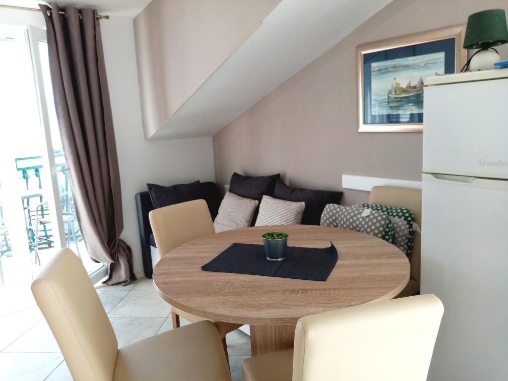 Dejlig ren lejlighed, udstyret med vaskemaskine og opvaskemaskine, tæt på strand, restauranter og butikker. Håndklæder til rådighed. Fru Željka meget sød og hjælpsom. En dejlig have med trampolin, som især vil blive værdsat af børnefamilier. Der er en havn i nærheden, hvor du kan gå ombord på Bura Line-skibet og tage til Split eller Trogir til en meget god pris. Du kan også bruge bybussen til Trogir.