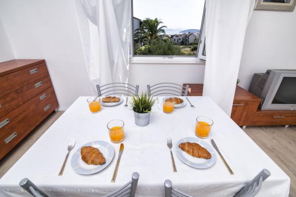 3. gang her. Fantastisk sted, fred og ro kvarter for par eller familier med børn, meget tæt på havet, gode restauranter og butikker. Kun 10 minutters kørsel til Trogir. Pæne og rene lejligheder med udsigt over den smukke have fuld af frugt og grøntsager, som du kan smage hver morgen! Mest vidunderlige ejere, vi nogensinde har mødt, Boris og hans kone er varme og åbne mennesker, der gjorde vores ferie uforglemmelig!