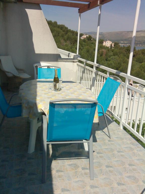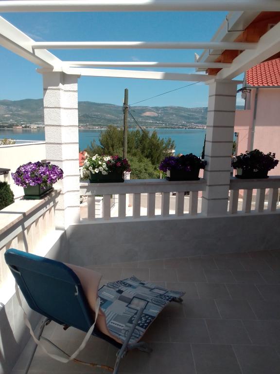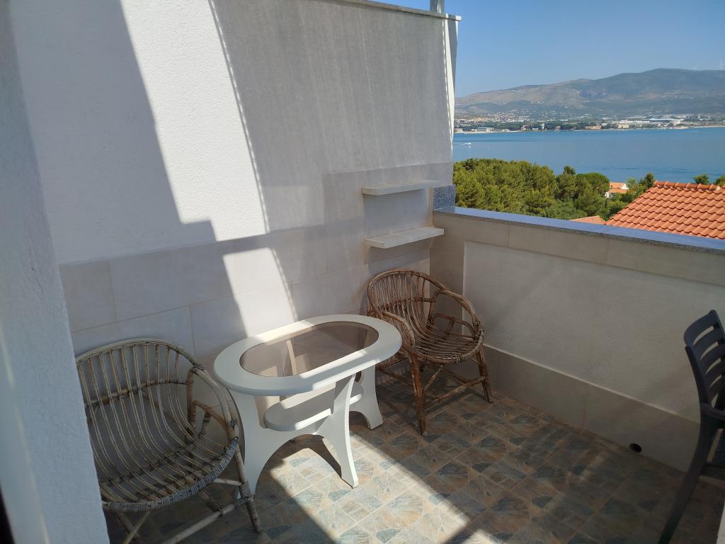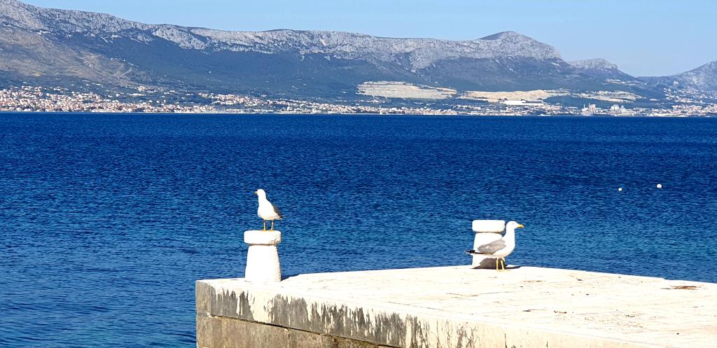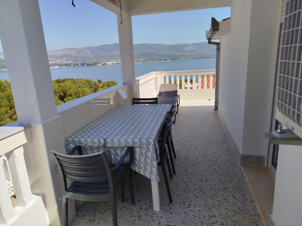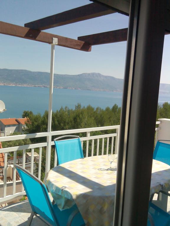 Vi er en familie med 2 voksne og 3 børn (7, 10 og 11 år), og vi havde en god ferie i denne lejlighed! Lejligheden har en dejlig udsigt på havet, nogle minutter for at gå til havet, stranden er ikke meget overfyldt og har nogle skygge, lejligheden var ren da meget godt vedligeholdt, rolig, meget venlig ejere. Adgang til øen tager tid på grund af broerne, du har til at passere. Vi besøgte Split (med båd, afgang danne Slatina), Trogir (parkere din bil før broerne og gå til Trogir, er det ikke langt til fods), gjorde en fisk picnic fra Trogir (båd Mistica) og vi besøgte omgivelserne af en kirke i nærheden af Slatine (smukke omgivelser). Tæt på lejligheden er et supermarked og restauranter.