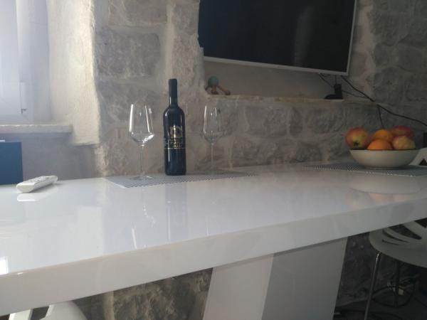 Vi er netop vendt tilbage fra Villa Buga efter et par dage ophold. De var vores 5 ferie i Kroatien; men vi er aldrig blevet behandlet af værten som denne gang. Davor ved ankomsten, mødt os med vin og (møtrik). En flaske vand og vin ventede i køleskabet. Den anden dag inviterede han os til aftensmad - han lavede en flok lam i sommer køkkenet til to familier. Næsten hver dag tilbød han os vin, rakija, en god hård ost, modnet skinke eller saltfisk af sig selv. Han vandt børnenes smag med chokolade og cola. Davor er en mand med høj personlig kultur, kommunikativ, altid åben og hjælpsom til sine gæster. Samtidig diskret og taktfuld. Han taler engelsk meget godt. Han kan lide at bruge tid på at tale med sine gæster. Begge lejligheder er af meget god standard; lille er lidt bedre udstyret. Alt ser ud i billederne. Senge er komfortable, badeværelset er anstændigt, køkkenet er udstyret, så du kan forberede måltider, aircondition og Wi-Fi uden klage. En stor fordel er sommerstenskøkken, hvor du kan forberede en grill. På trods af den brændende ild er det køligt i det. Værftet er ikke stort, men plads nok til at parkere 2 biler. Jeg har indtryk af, at for Davora Villa Buga er det ikke en forretningsmulighed, det er bare en hobby.