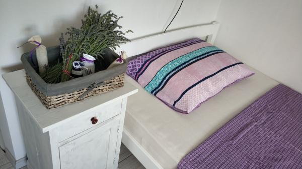 Turistskat er inkluderet i prisen. Dokumentation for reservationsbekræftelse ved reservationHuset er unikt i sin arkitektur, i naturen er det en meget gammel stenvilla med ovenlys på taget, en veranda dekoreret med stenhvælvinger og en terrasse, og foran hvilken der er en gårdhave prydet med et smukt lille stenhus, hvor der er en skorsten med grill og ovn, og massive træbænke og et bord, og dermed skabe et sommerkøkken til exceptionelle gourmetsammenkomster og oplevelser af det lokale traditionelle køkken, med hjemmelavet vin og brandy til rådighed for gæsterne. Foran indgangen til lejlighederne på 1. sal er der en stor terrasse (loggia) med et rum, hvor man kan nyde en kop te, kaffe eller et glas vin. Rygning er også tilladt her. En stor terrasse med træbænke og et bord i gården ved siden af sommerkøkkenet og en solbruser er til rådighed for gæsterne. På loftet er der på 2. sal en stor og rummelig lejlighed med stor stue hvorfra der er udgang til rummelig altan, samt to separate værelser med hvert sit badeværelse. Det ene værelse har en dobbeltseng 200x160 og det andet har to senge.