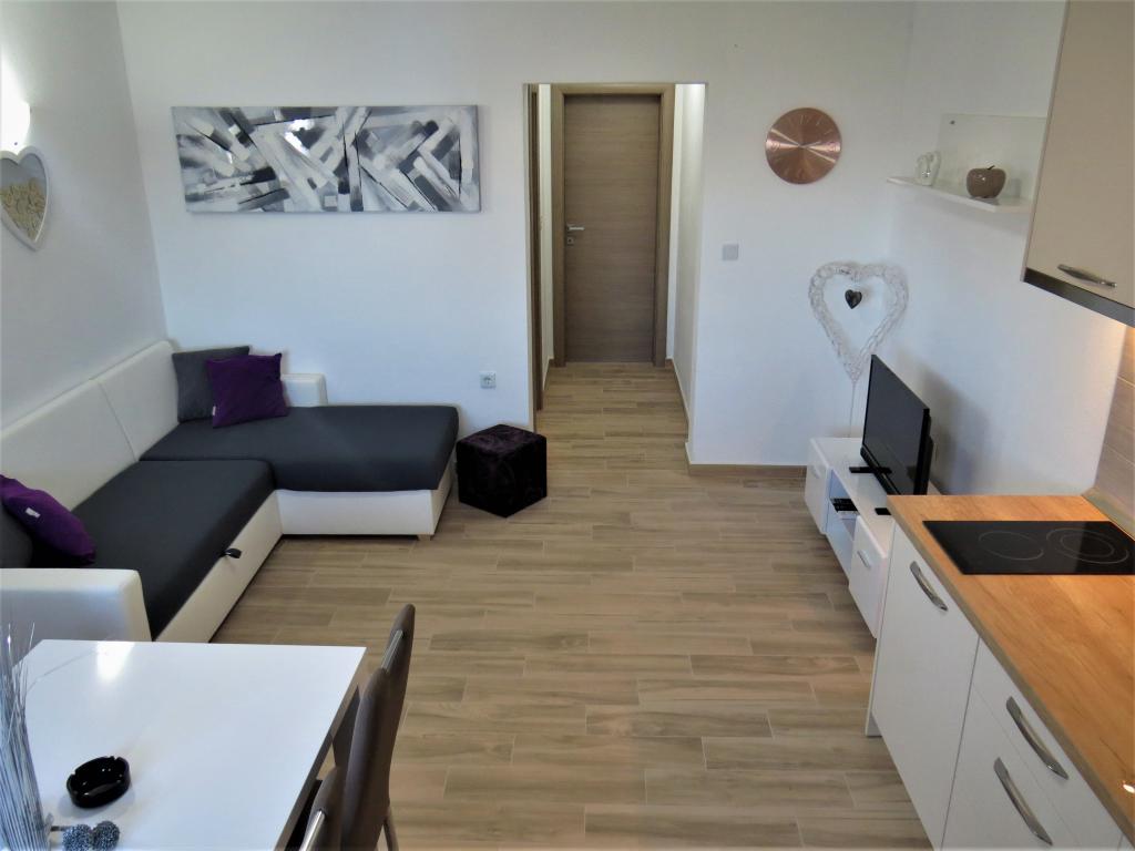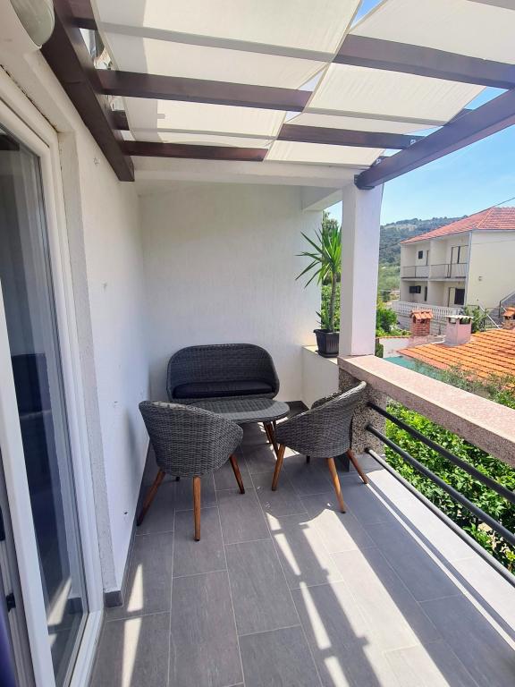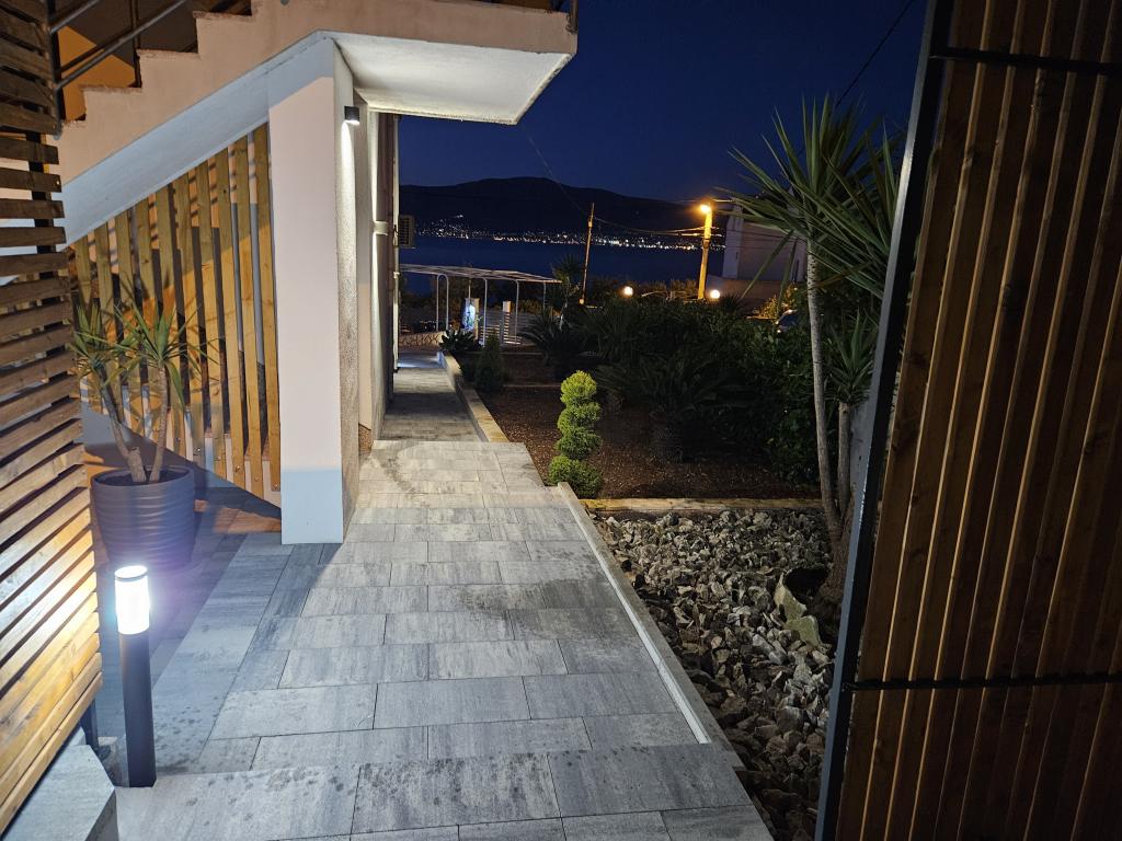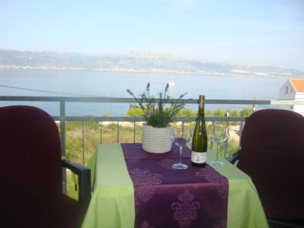 Lejlighederne Villa Palma i Slatine ligger 15 m fra havet.Alle lejligheder har udsigt over havet. Lejlighederne er komfortable og udstyret med: aircondition, sat/tv, wi-fi. De er beliggende på et areal på 1000 m2. Foran lejligheden er der en smukt dekoreret have med grill, hvor man kan hygge sig med vennerne med middelhavsplanter. De ligger i en ideel beliggenhed, 300 m fra centrum og 15 m fra havet, så du kan tilbringe i fred, nyde havet og solen, og samtidig, hvis du ønsker en mere aktiv ferie, i centrum af byen er der strandbarer, kaffebarer , restauranter og sportspladser. Gæsterne er udstyret med parkering og en garage, hvor du kan efterlade dine ting til stranden. Ligeledes foran lejligheden har også en have på 150 m2, som er velegnet til børns leg, mens du ser børnene i have fra terrassen.De venlige værter vil med glæde hjælpe dig med at organisere dine udflugter, fiske-picnic, leje en båd, cykel, scooter... samt alt blandt andet! Slatine er forbundet med en bådlinje med Split og Trogir flere gange om dagen!