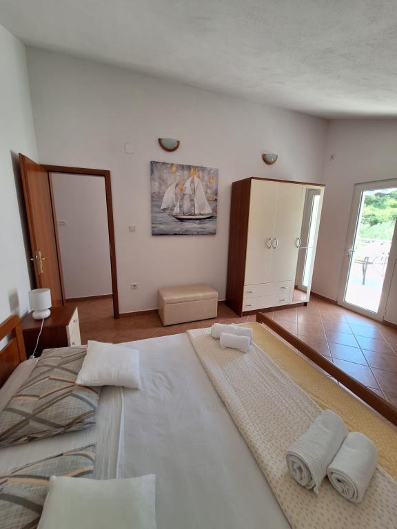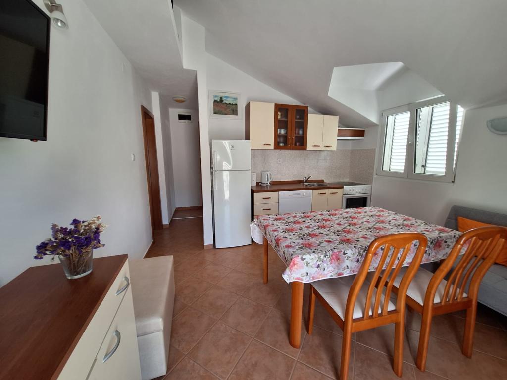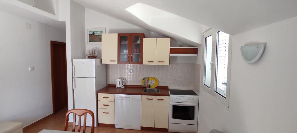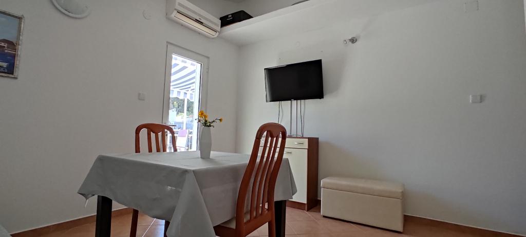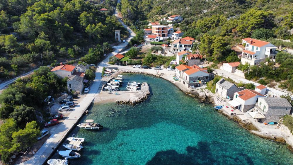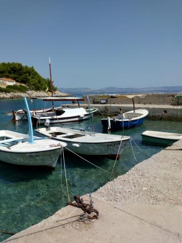 Vores lejligheder ligger i Donja Krušica på øen Šolta. Den ene lejlighed ligger i stueetagen, og den anden ligger på første sal i huset, i første række til havet i en rolig bugt. Den nærmeste strand ligger lige ved siden af huset, og 5 minutters gang derfra ligger den anden strand, hvor du kan nyde det krystalklare hav. Lejligheden på første sal består af et soveværelse, et udstyret køkken med spiseplads, et badeværelse og en behagelig terrasse. Andre faciliteter inkluderer aircondition, tv og vaskemaskine. Lejligheden i stueetagen består også af et soveværelse, et udstyret køkken med spiseplads og et badeværelse. Terrassen til lejligheden i stueetagen har havudsigt. Der er også et tv med faciliteter som Netflix. Lejligheden i stueetagen har aircondition og en loftsventilator til afkøling.