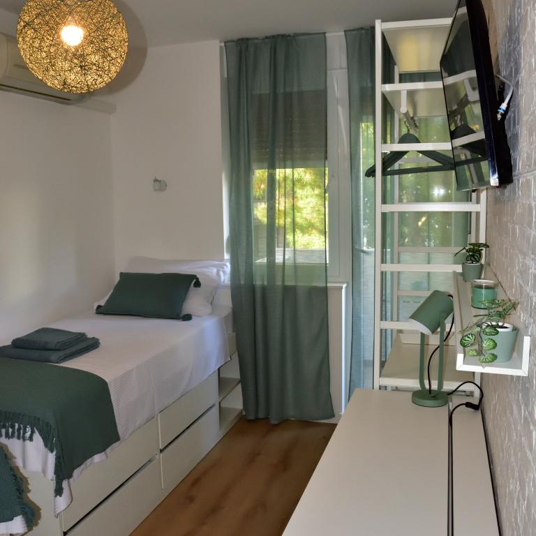 Beliggende tæt på de vigtigste attraktioner, er vores lejlighed kun 5 minutters gang fra det historiske centrum og Diocletians palads. Det byder på tilstrækkelig plads og komfort med et fuldt udstyret køkken, to soveværelser, en hyggelig stue, en rummelig hall, et badeværelse og to altaner med en smuk udsigt over det grønne, Poljud stadion og fantastiske solnedgange over havet. Transport er meget let, uanset om du kører, tager en taxa eller bruger offentlige busser, og der er gratis offentlig parkering foran lejligheden. Populære strande er let tilgængelige, perfekte til solbadning og svømning. Hvert værelse er udstyret med aircondition, et stort tv og et rummeligt skrivebord, hvilket giver mulighed for afslapning og produktivitet. Digitale nomader vil sætte pris på den superhurtige WiFi-forbindelse. Den livlige atmosfære på Poljud stadion ligger kun få skridt væk, kun 100 meter væk. Derudover er vores lejlighed beliggende nær Park Mladeži stadion, kun 400 meter væk, hvor den berømte Ultra musikfestival finder sted.