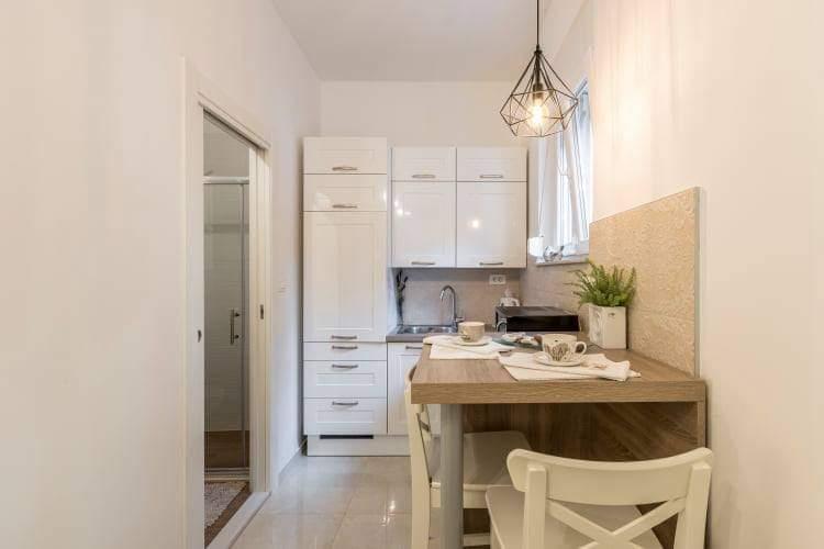 Nyrenoveret studielejlighed i Split, Bačvice. Det er beliggende i umiddelbar nærhed af den mest berømte bystrand. Alle de nødvendige faciliteter er i en afstand på op til 100m. Anlægget ligger 5 minutters gang fra havnefronten og Diocletians Palads, som bestemt er et besøg værd. Foran lejligheden er en stor terrasse til brug. Parkeringspladsen er ved siden af bygningen på et offentligt område.