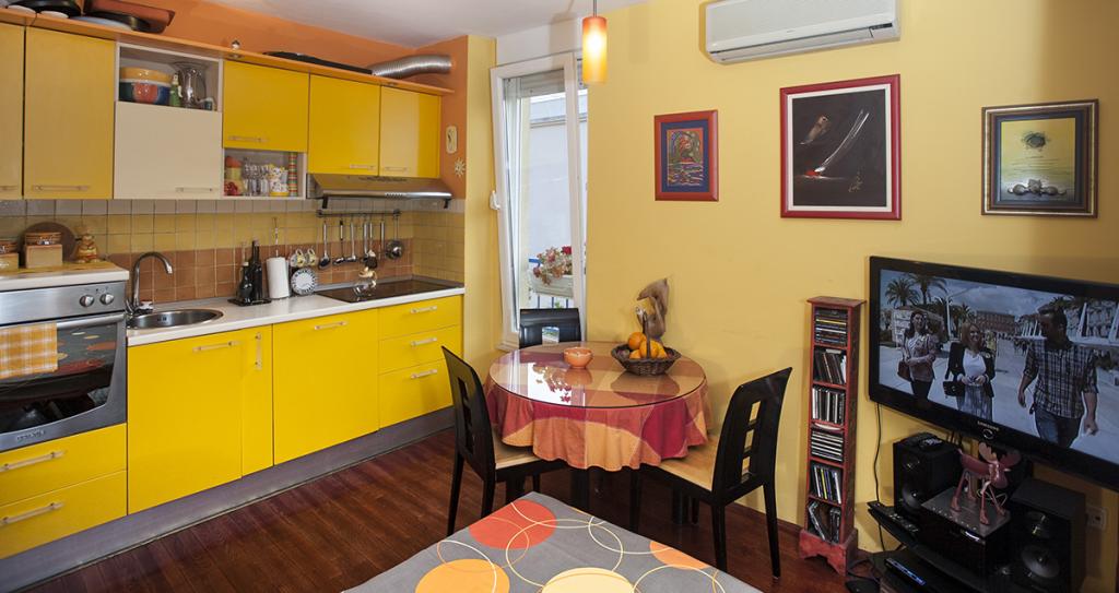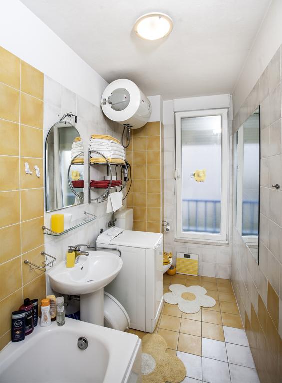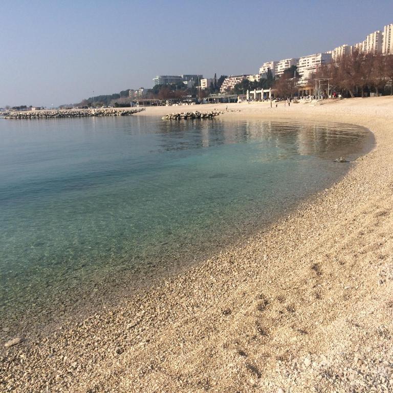 Lejlighed SUNNY YELOW med balkon og parkeringsplads er beliggende på stranden ŽNJAN, 100 m væk fra den bedste stenstrand i Split og en lang promenade ved havet. ŽNJAN-stranden er en kilometer lang strand, der byder på mange barer og restauranter. Kun 20 m fra lejligheden er der en bistro - kaffebar, 50 m derfra er der en butik, 3,6 km væk ligger Diocletians Palads. Lejligheden har gratis WI-FI, aircondition, TV og radio med CD. Der er også fuldt udstyret køkken med opvaskemaskine og ovn. Badeværelset er udstyret med vaskemaskine, gratis toiletartikler og håndklæder. Fra badeværelset kan du nyde en smuk udsigt over haven. Foran lejligheden er der en parkeringsplads, der hører til lejligheden, og en udendørs grill med stenbord og bænke, hvor du kan tilberede og nyde grillretter. Hvis du vil besøge omgivelserne, er der katedralen St. Domnius - 34 km), Split City Museum (3,4 km), Split Lufthavn ligger 15 km fra lejlighederne.