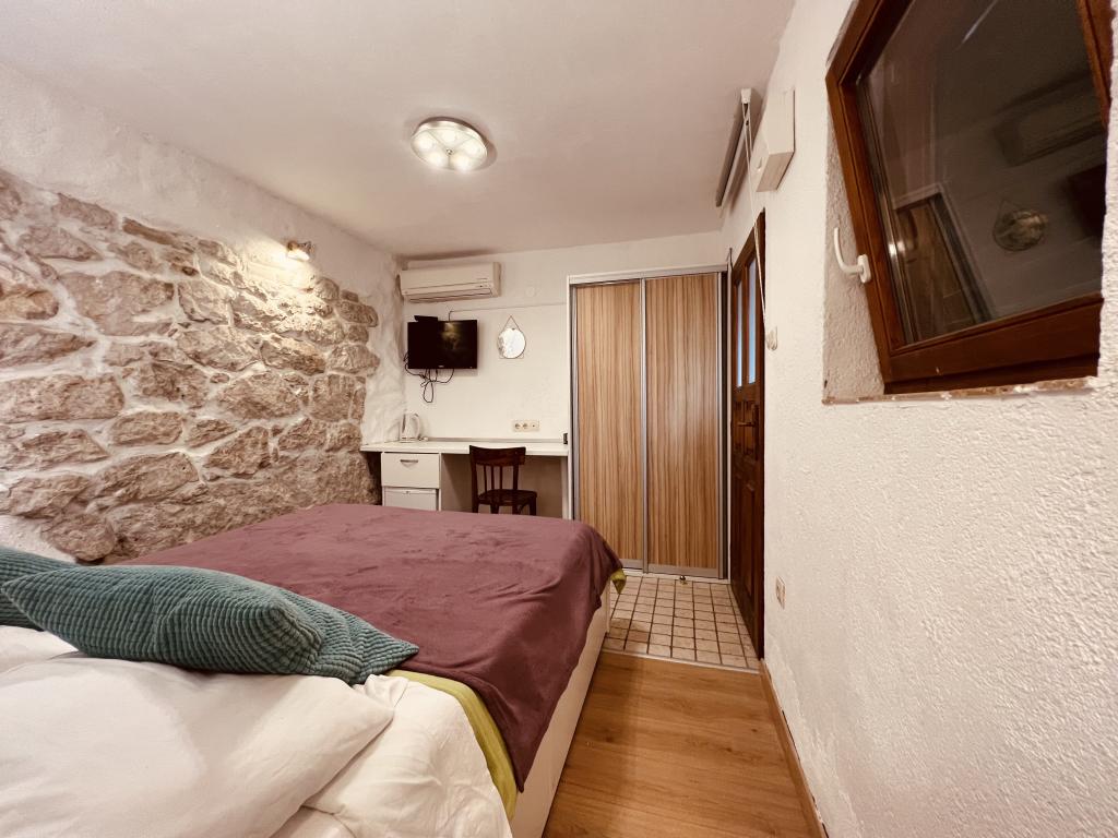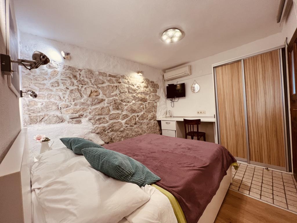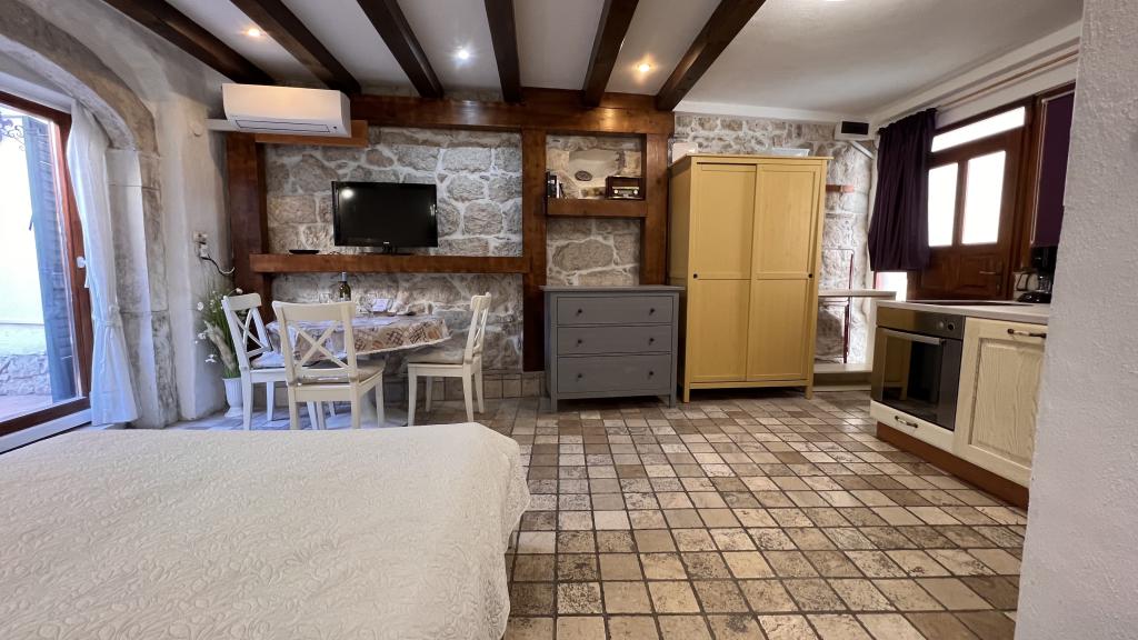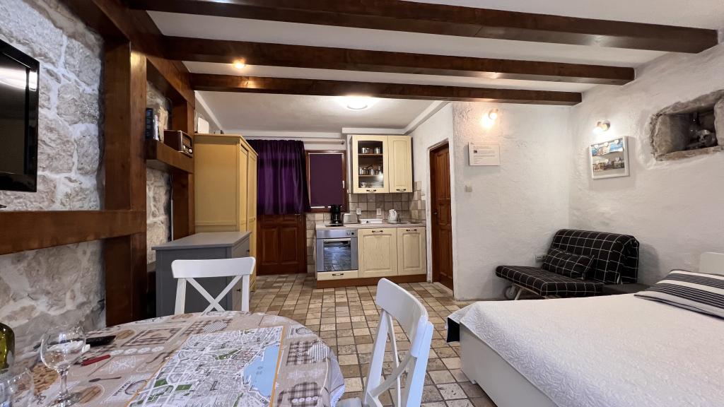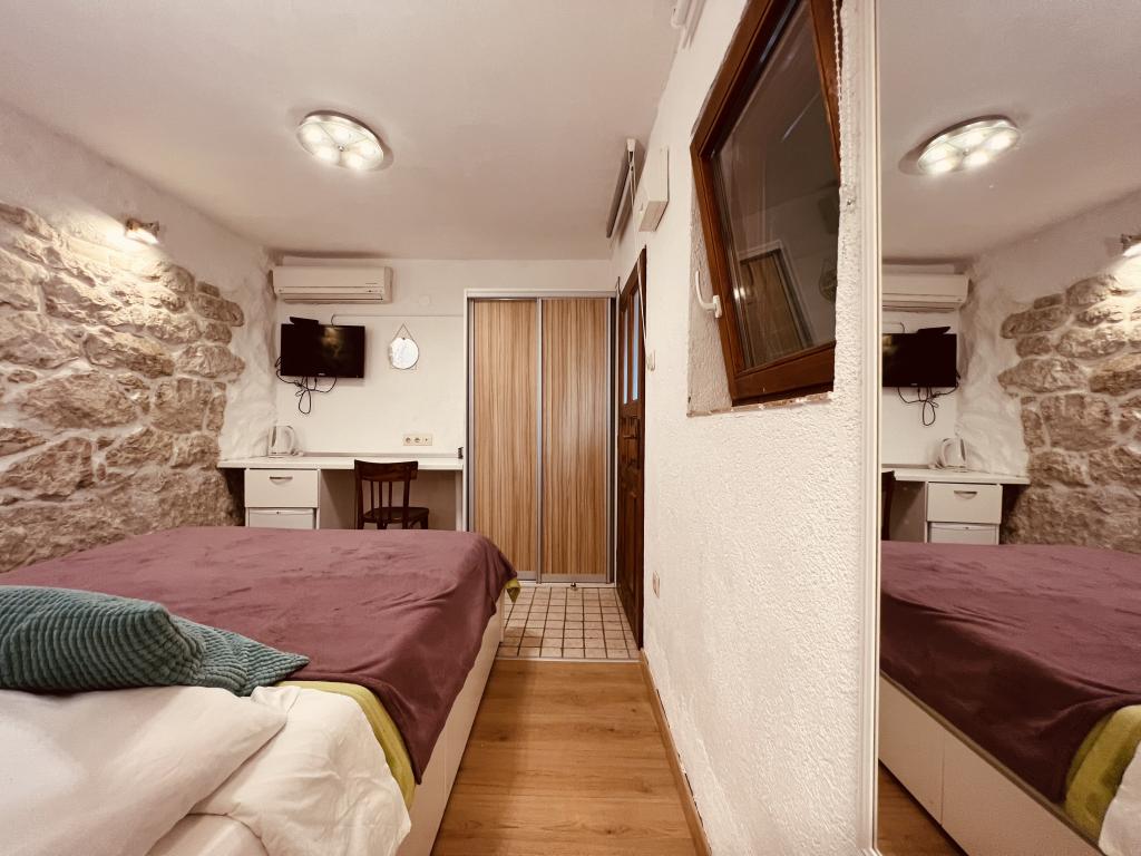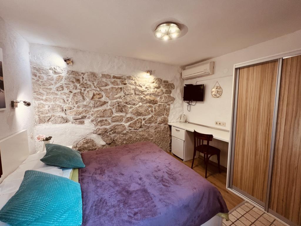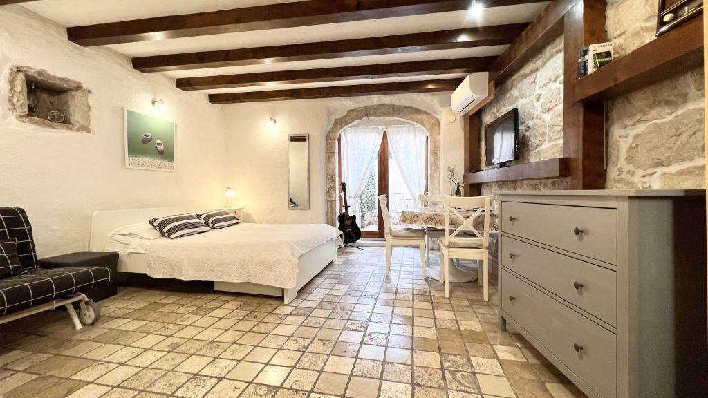 GUARDIAN har valgt STUDIO: Et af de 10 bedste europæiske hoteller og en anden bolig, som ferien virkelig nyder: Studielejligheder ligger i et gammelt hus, for nylig indrettet i den gamle del af byen, i en stille gade. Ideel til din ferie i byens centrum, og en fornøjelse og en ren dalmatisk atmosfære. Studielejligheder har en dobbeltseng, ekstra seng, køkken, bruser, tv, aircondition, radio-cd, hårtørrer, gratis internet, gratis offentlig parkering ... På grund af dens bekvemme beliggenhed vil der ikke være behov for din bil under dit ophold i Split. Alt for at have et afslappende ophold ved hånden i byens centrum, havnefronten, Marjan-bakken, adskillige strande, butikker, færgehavne, busstation, alt kan nås til fods i den blide middelhavsluft. Byens centrum ligger 100 m væk, der kan benyttes en pejs i gården.