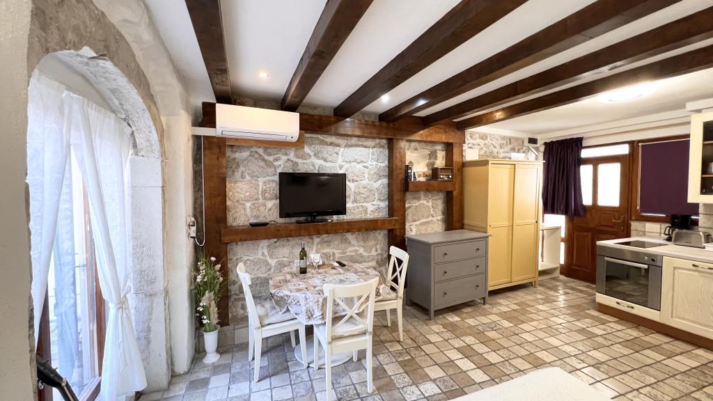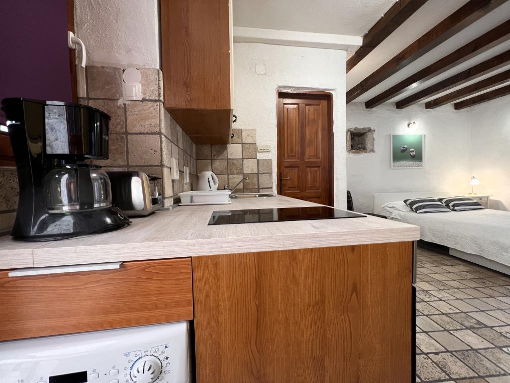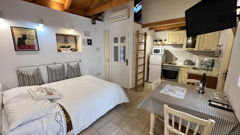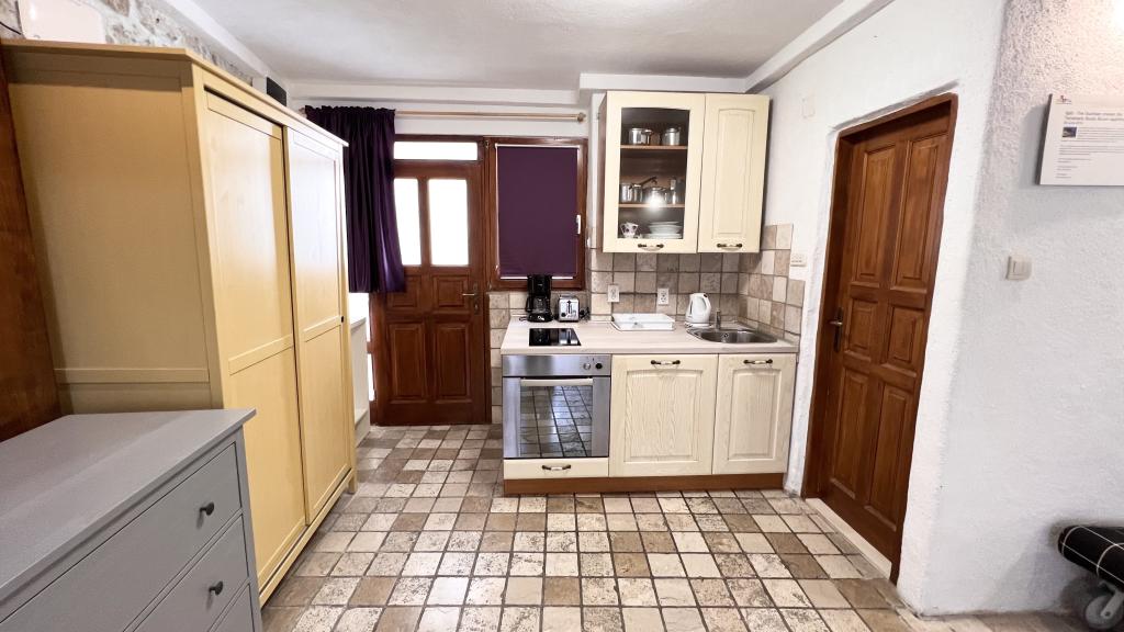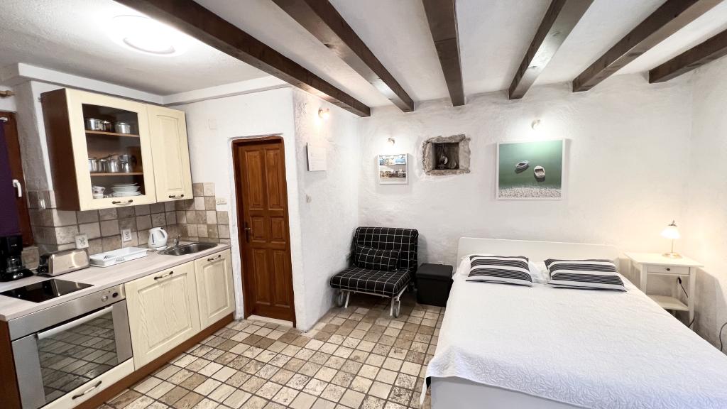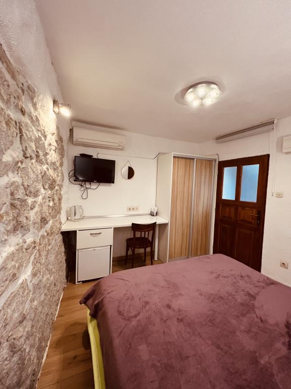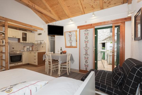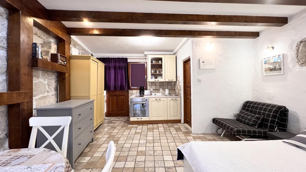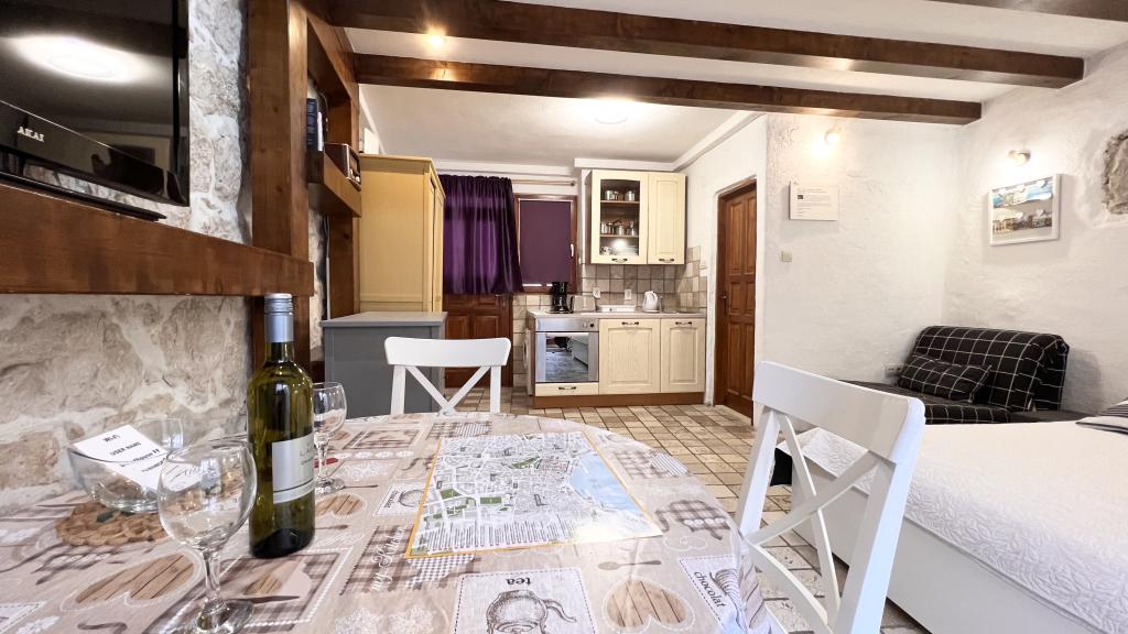 GUARDIAN har valgt STUDIO: Et af de 10 bedste europæiske hoteller og en anden bolig, som ferien virkelig nyder: Studielejligheder ligger i et gammelt hus, for nylig indrettet i den gamle del af byen, i en stille gade. Ideel til din ferie i byens centrum, og en fornøjelse og en ren dalmatisk atmosfære. Studielejligheder har en dobbeltseng, ekstra seng, køkken, bruser, tv, aircondition, radio-cd, hårtørrer, gratis internet, gratis offentlig parkering ... På grund af dens bekvemme beliggenhed vil der ikke være behov for din bil under dit ophold i Split. Alt for at have et afslappende ophold ved hånden i byens centrum, havnefronten, Marjan-bakken, adskillige strande, butikker, færgehavne, busstation, alt kan nås til fods i den blide middelhavsluft. Byens centrum ligger 100 m væk, der kan benyttes en pejs i gården.