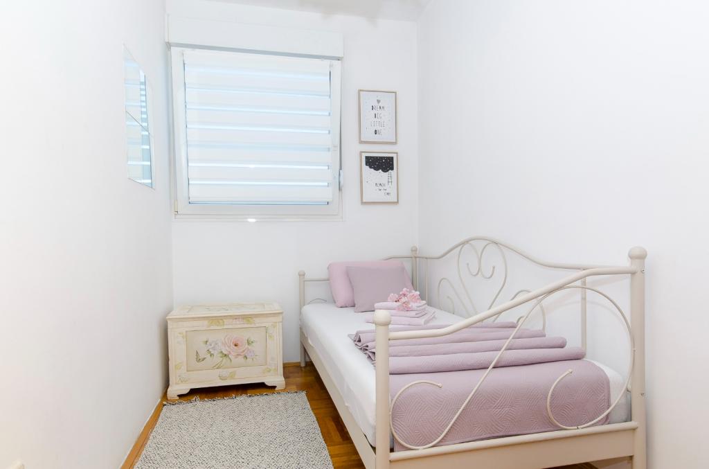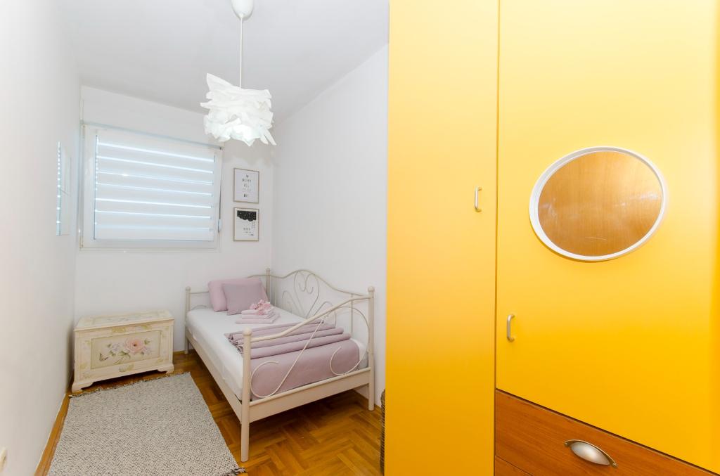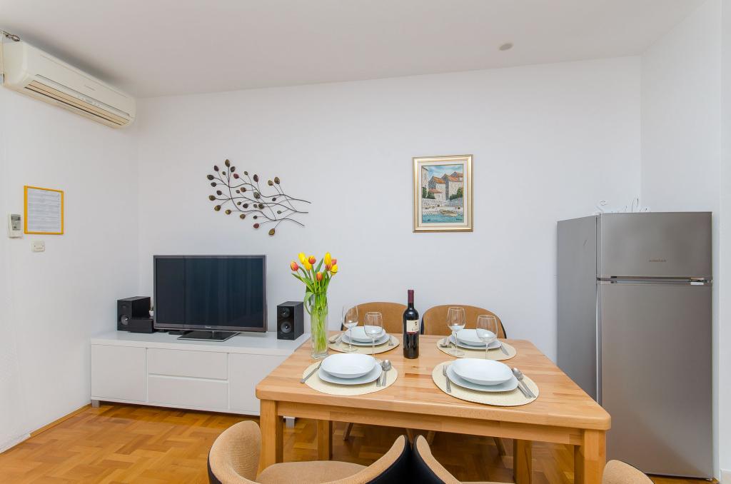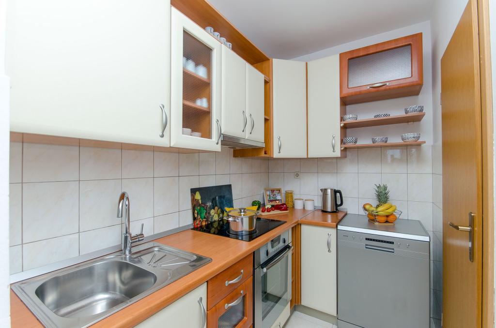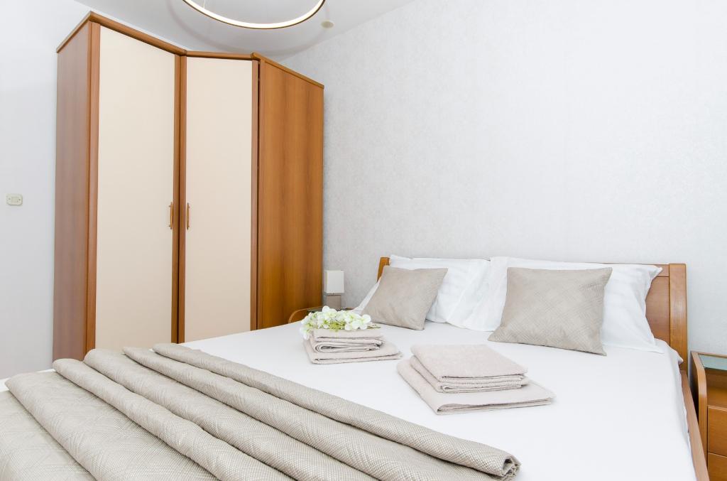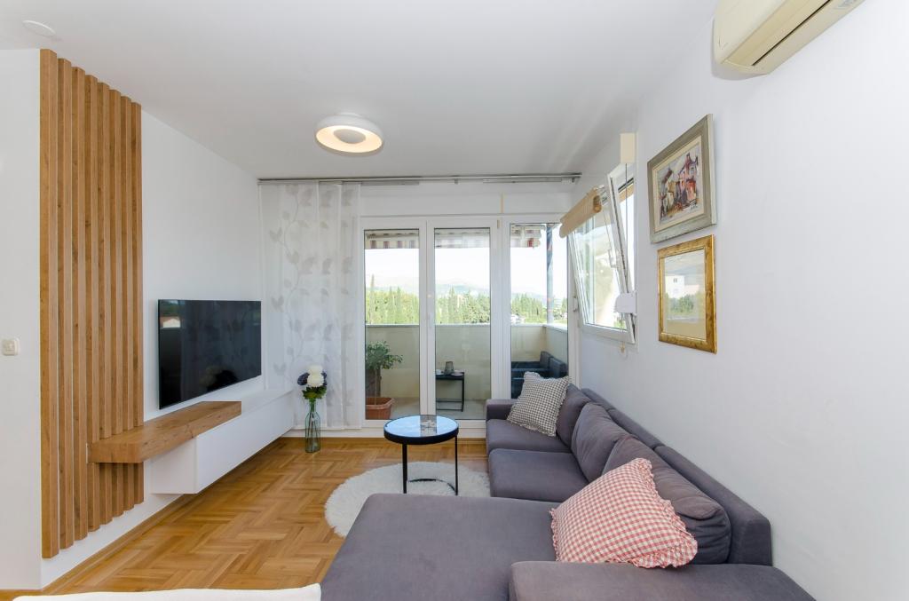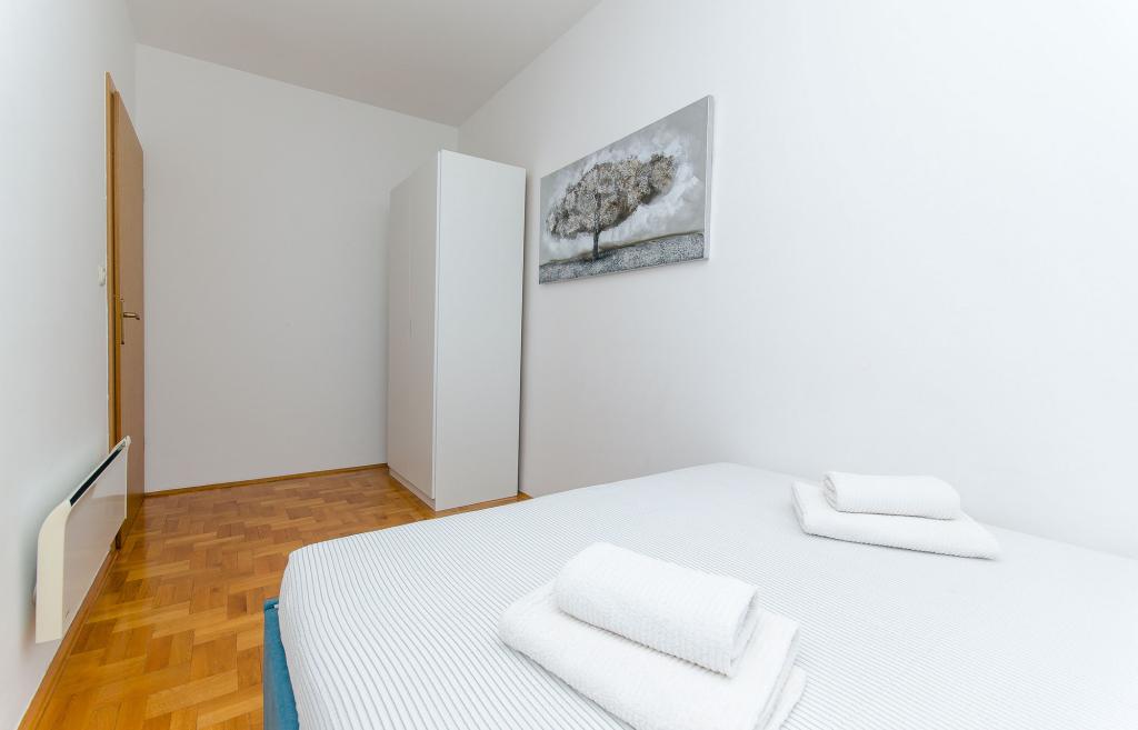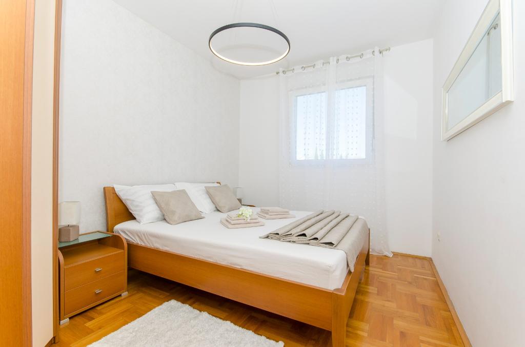 Fuldt udstyrede og moderne lejligheder ligger i nye boligbygninger i en rolig del af Split. Lejlighederne 4+1 og 5+0 ligger i Pazdigrad-kvarteret. Adressen er Put Duilova 4a. Lejlighed 2+2 ligger ved indkørslen til Split, i den del af byen, der hedder Sirobuja. Adressen er Stobrečka 26. Lejlighed (4+1) består af to soveværelser, et badeværelse med toilet, et køkken med spisestue, en stue og en terrasse med en smuk udsigt. I det ene soveværelse er der en dobbeltseng 160 × 200 cm, og i det andet soveværelse er der en dobbeltseng 140 × 200 cm. I stuen er der en sovesofa. Lejlighed (5+0) består af tre soveværelser, et badeværelse med toilet, et køkken med spisestue, en stue og en rummelig terrasse med havudsigt. I det ene soveværelse er der en dobbeltseng 160×200, i det andet en dobbeltseng 140×200 og i det tredje værelse er der en enkeltseng 90×200 til én person. I bygningens kælder er der garager, som er forbundet med lejlighederne med en elevator. Lejlighederne har tv, aircondition og gratis internet. Velkommen