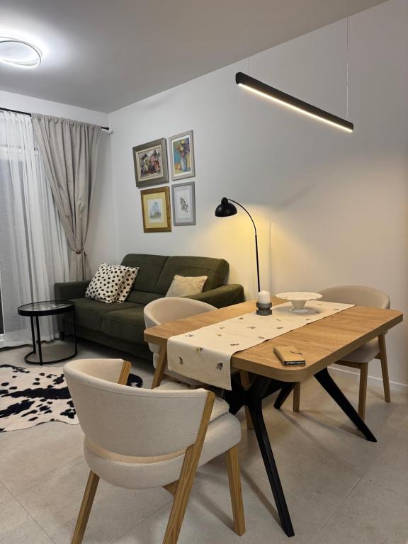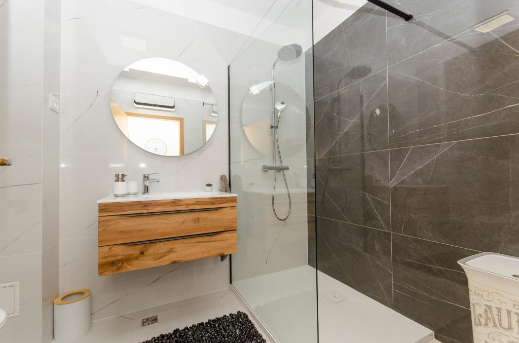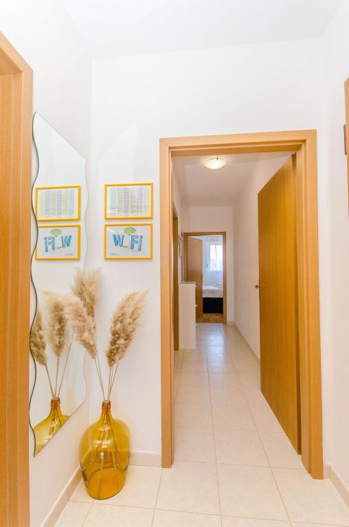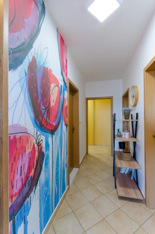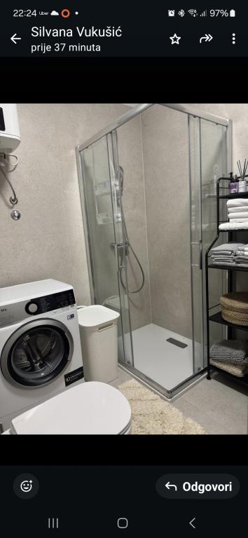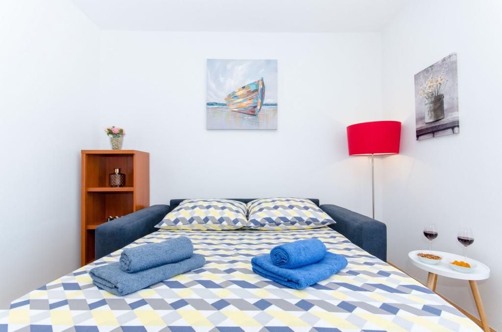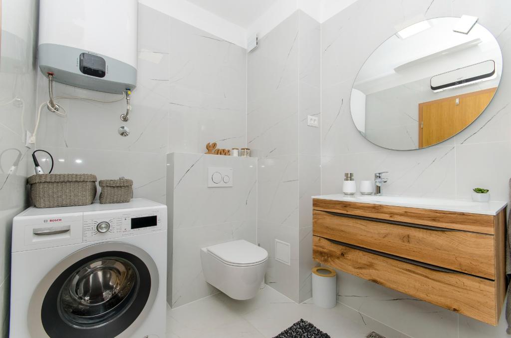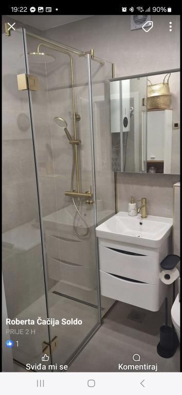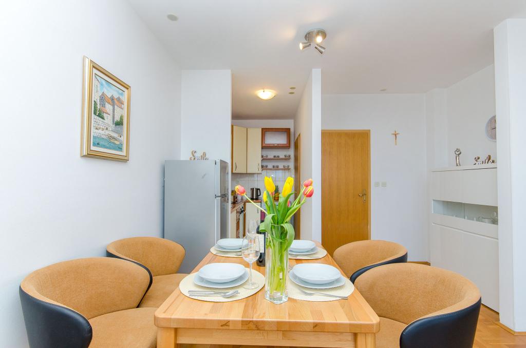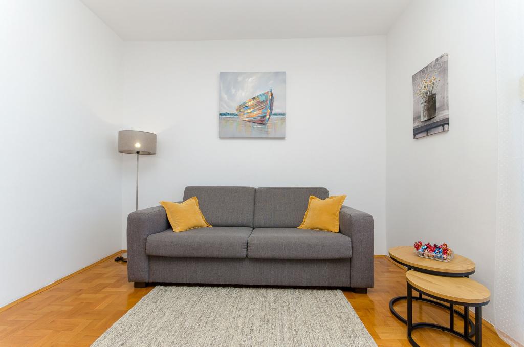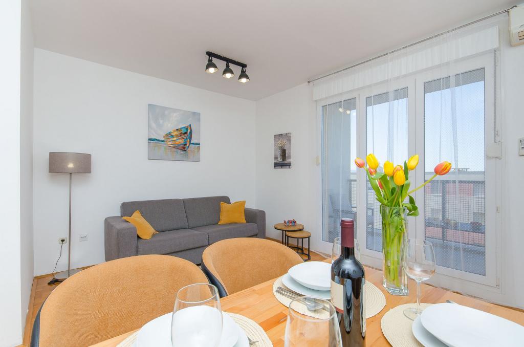 Fuldt udstyrede og moderne lejligheder ligger i nye boligbygninger i en rolig del af Split. Lejlighederne 4+1 og 5+0 ligger i Pazdigrad-kvarteret. Adressen er Put Duilova 4a. Lejlighed 2+2 ligger ved indkørslen til Split, i den del af byen, der hedder Sirobuja. Adressen er Stobrečka 26. Lejlighed (4+1) består af to soveværelser, et badeværelse med toilet, et køkken med spisestue, en stue og en terrasse med en smuk udsigt. I det ene soveværelse er der en dobbeltseng 160 × 200 cm, og i det andet soveværelse er der en dobbeltseng 140 × 200 cm. I stuen er der en sovesofa. Lejlighed (5+0) består af tre soveværelser, et badeværelse med toilet, et køkken med spisestue, en stue og en rummelig terrasse med havudsigt. I det ene soveværelse er der en dobbeltseng 160×200, i det andet en dobbeltseng 140×200 og i det tredje værelse er der en enkeltseng 90×200 til én person. I bygningens kælder er der garager, som er forbundet med lejlighederne med en elevator. Lejlighederne har tv, aircondition og gratis internet. Velkommen