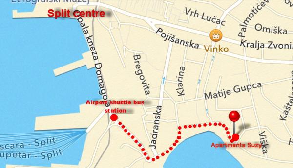 Lejlighederne ligger 20 m fra den populære Bačvice strand. Det er 5 minutters gang til færgehavnen, busstationen og togstationen og 10 til 15 minutters gang til Splits centrum. Tæt på Firule Hospital, tennisbaner, mange restauranter og barer langs promenaden. Privat parkering er tilgængelig efter anmodning. Vi ejer en parkeringsplads.