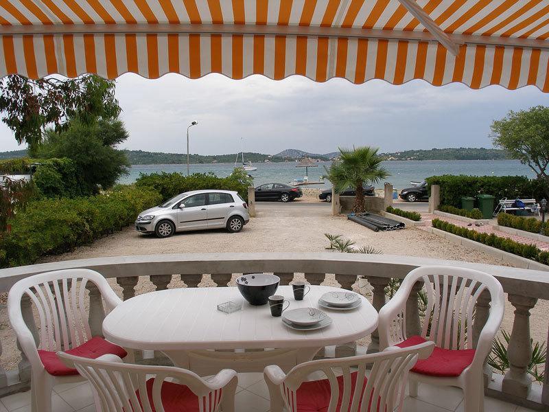 Helt og moderne udstyrede lejligheder i et roligt område, beliggende første række til havet; Anlægget ligger 5 minutters gang til centrum af Srima og 2 km til centrum af Vodice og er direkte på stranden. Lejligheden har 2 soveværelser med dobbeltsenge (dobbeltseng), badeværelse, fuldt udstyret køkken, TV, aircondition, wifi, terrasse med havudsigt, grill og parkering ...