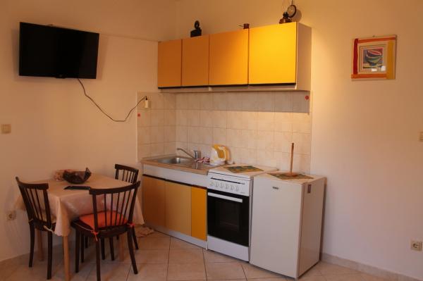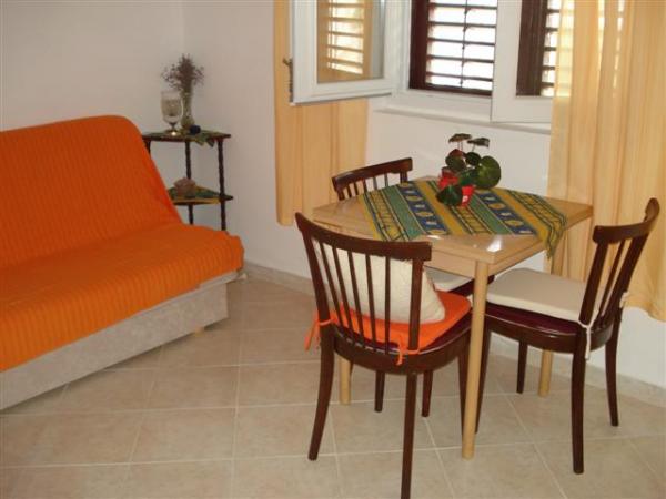 I et familiehus på første sal udlejes en lejlighed (40m2). Lejligheden har separat indgang og egen rummelig terrasse. Huset ligger i centrum af Srima, 60 m fra butikken og 80 m fra havet. Stranden med det blå flag ligger 150 m væk. Restauranten ligger 250 m væk. Lejlighed, 2 +1. Den består af: et rummeligt soveværelse, køkken-stue i det ene værelse, toilet med bruser og en stor terrasse. Ekstrasengen er en sofa i stuen (120 cm). Ekstrasengen kan muligvis placeres i soveværelset, men i så fald anbefales det, at et yngre barn bruger den. Lejligheden har aircondition, er ikke nyrenoveret, men funktionel.