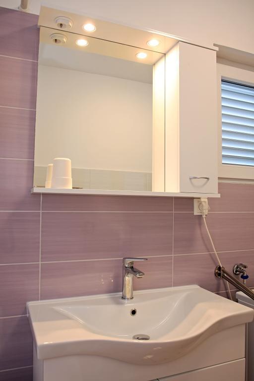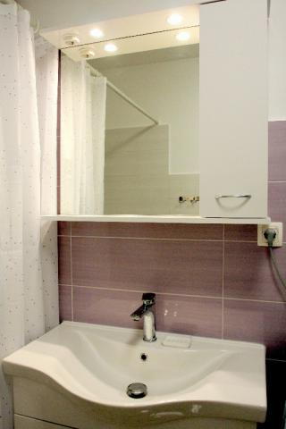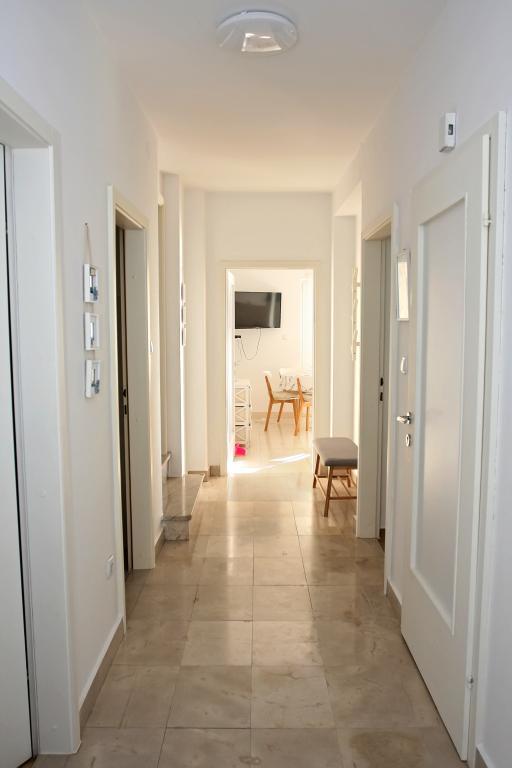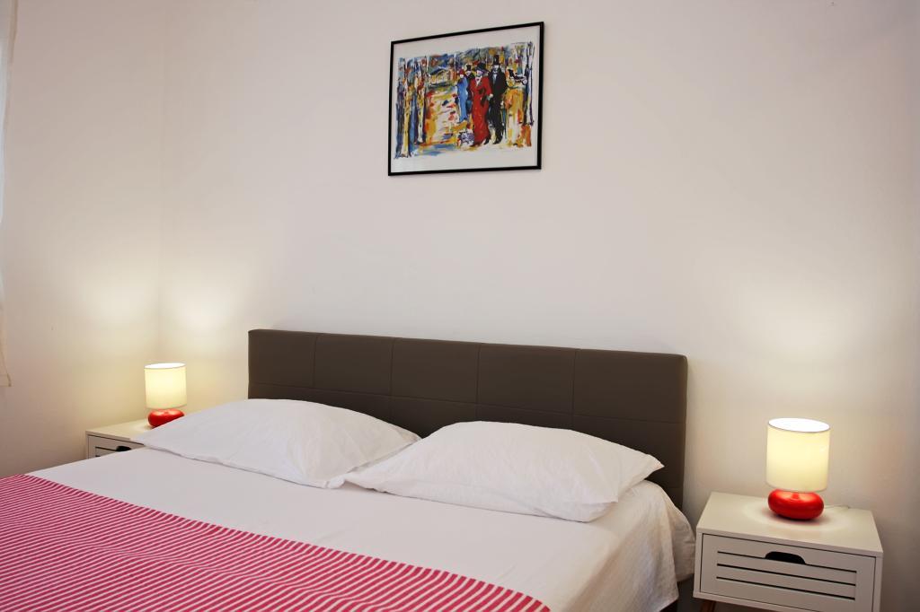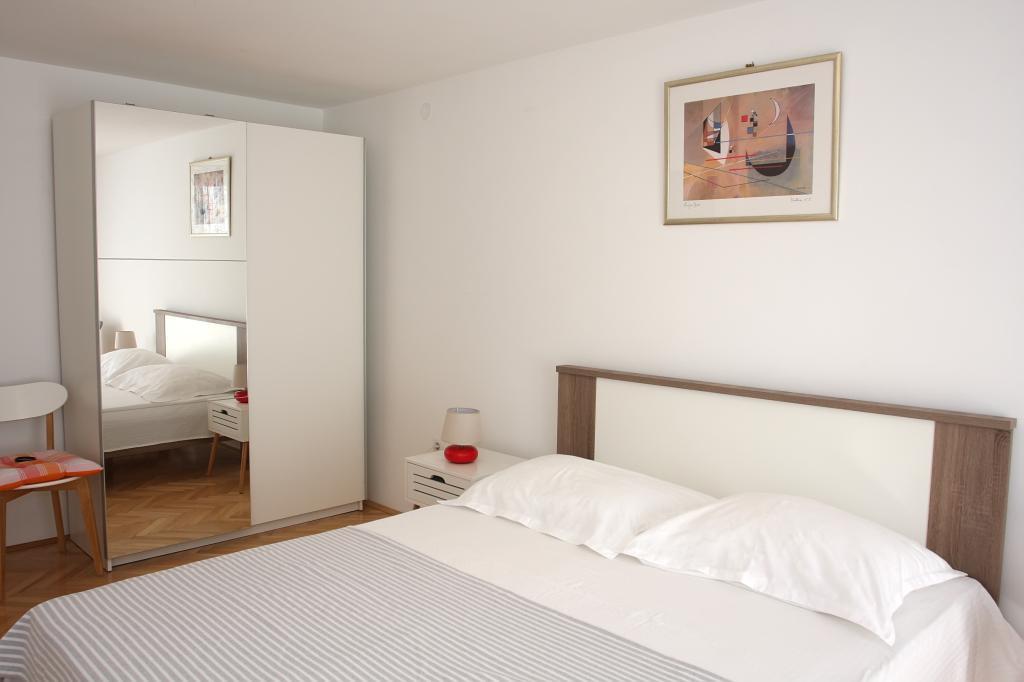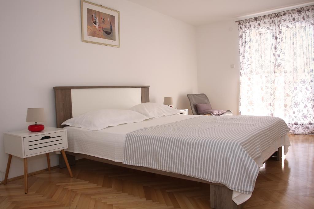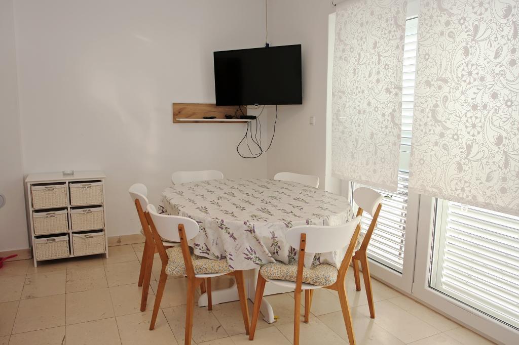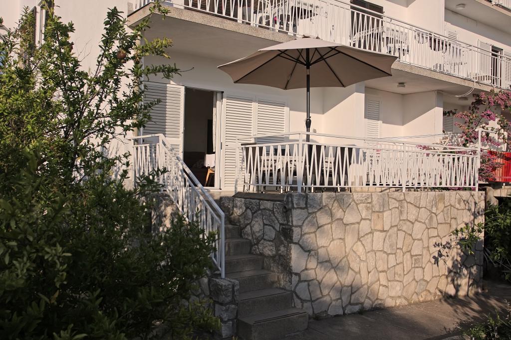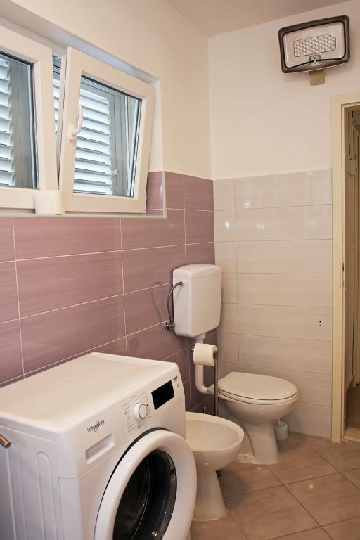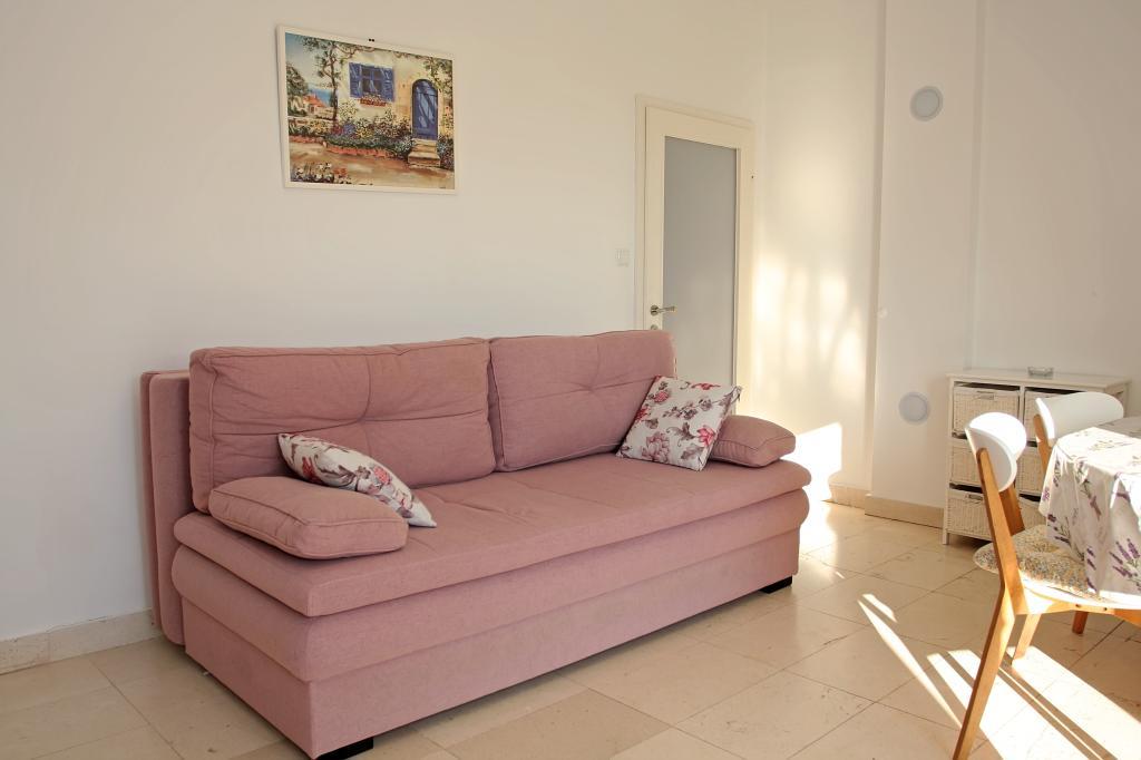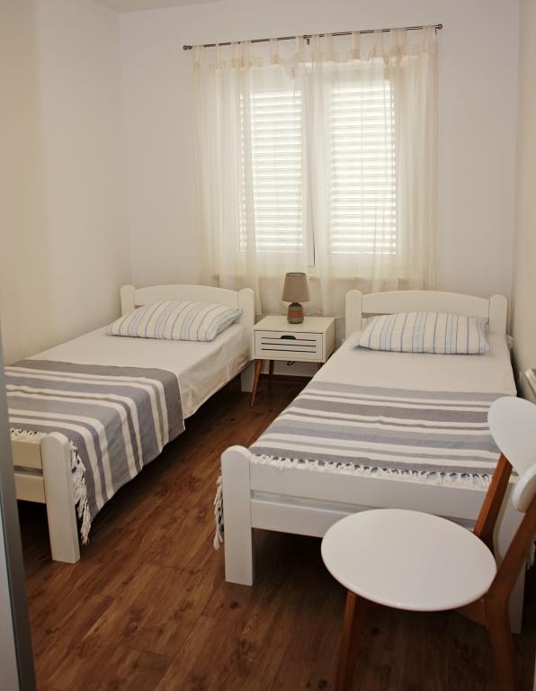 Nybygget 3-værelses lejlighed i stueetagen, første række til havet. Lejligheden består af et køkken med spisestue og stue, tre soveværelser, to badeværelser med toiletter, et andet separat toilet, har også en stor terrasse og en anden balkon. To soveværelser har dobbeltsenge og den ene har to separate senge. I stuen er der en tre seter, der strækker sig ind i en seng til to personer. Køkkenet er udstyret med opvaskemaskine, mikroovn, ovn, køleskab med fryser. Et badeværelse har en vaskemaskine. Der er to parkeringspladser i gården, og gæsterne har grillfaciliteter. Stranden ligger lige foran huset.