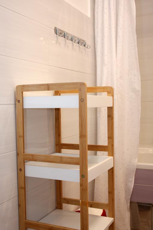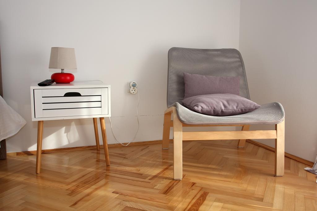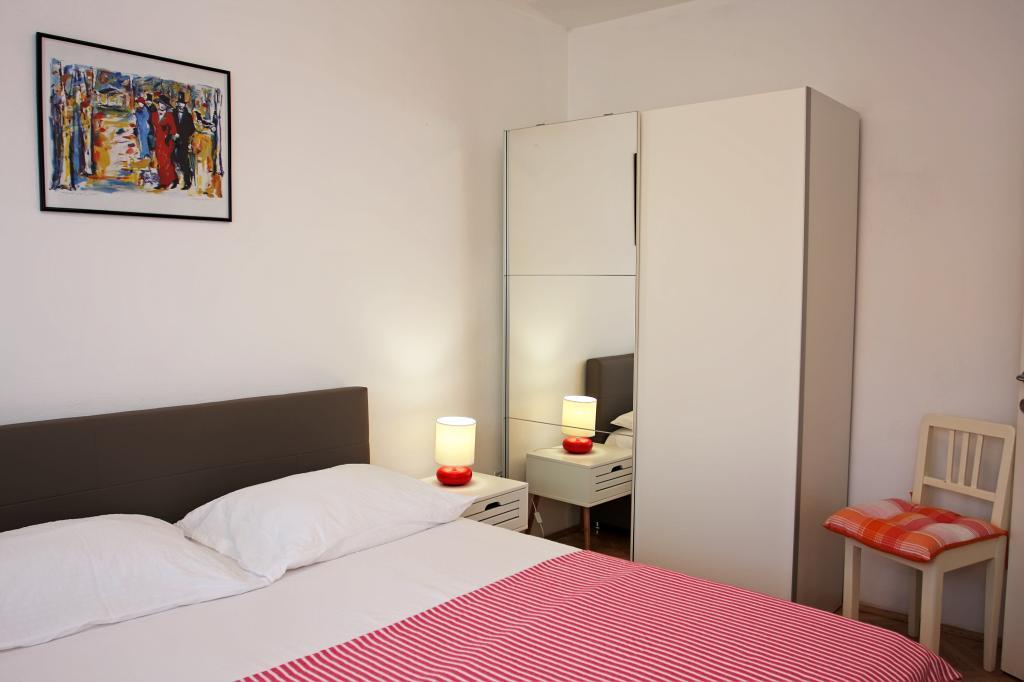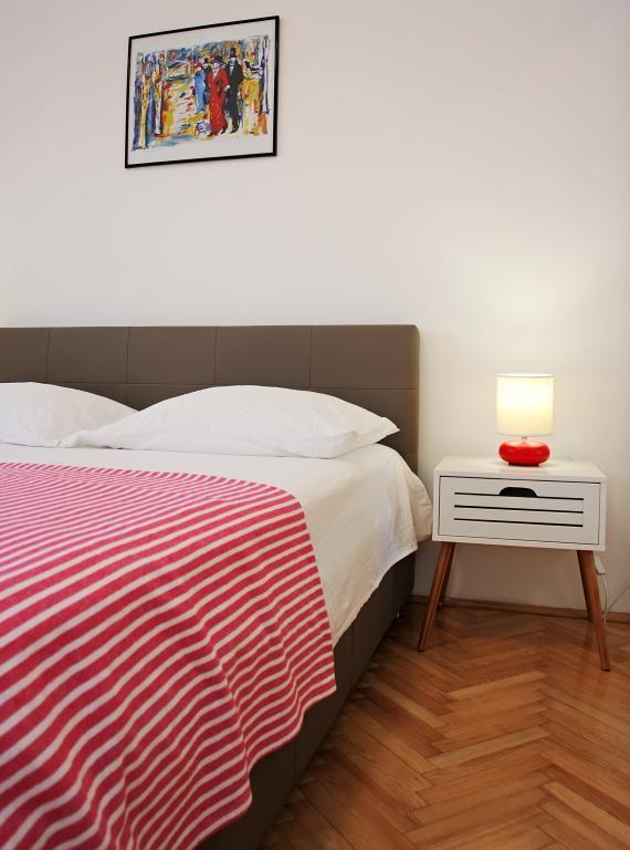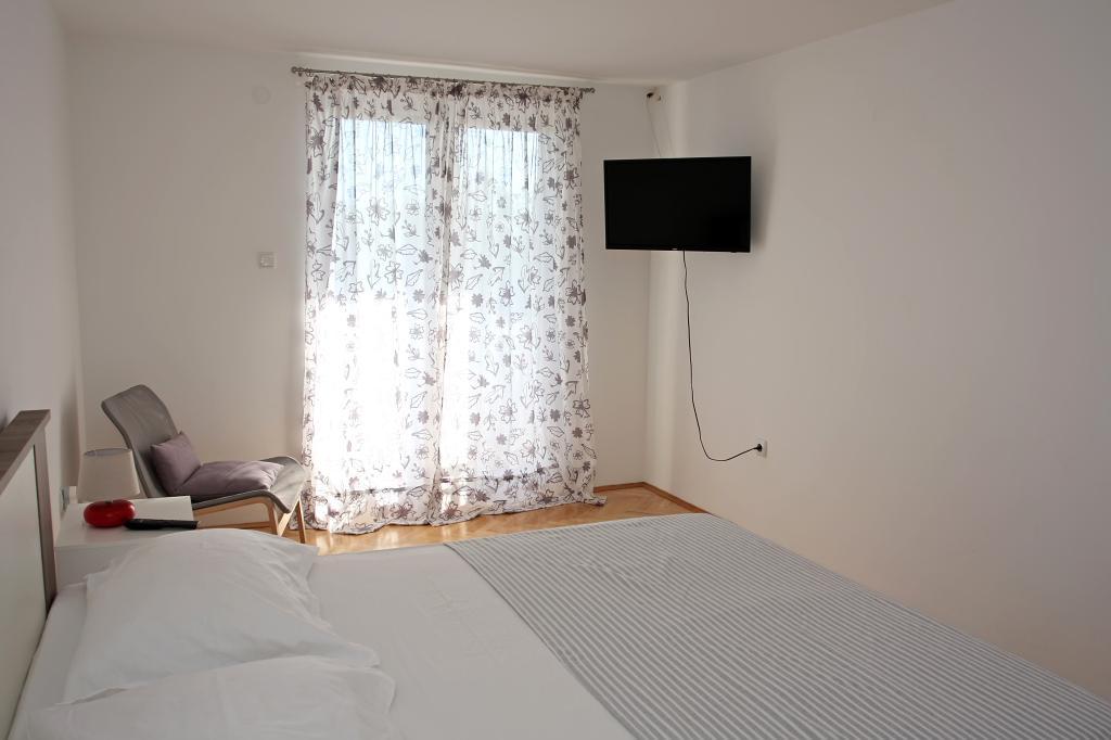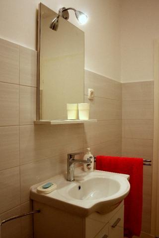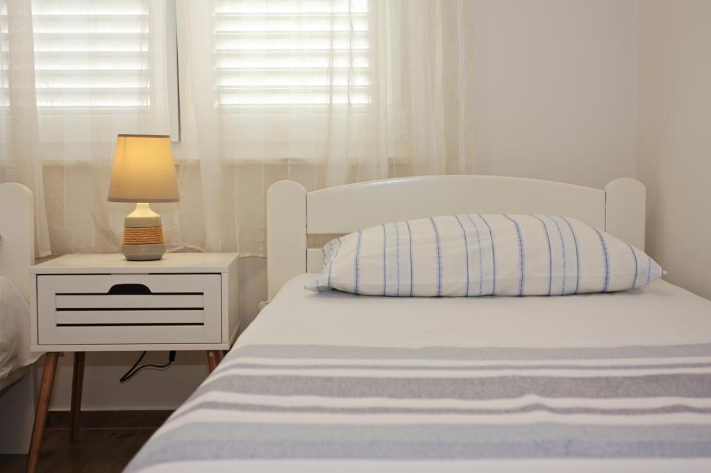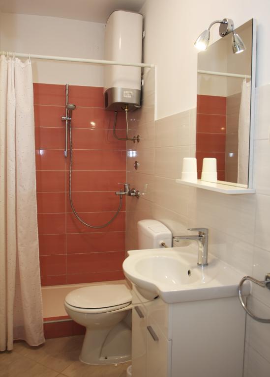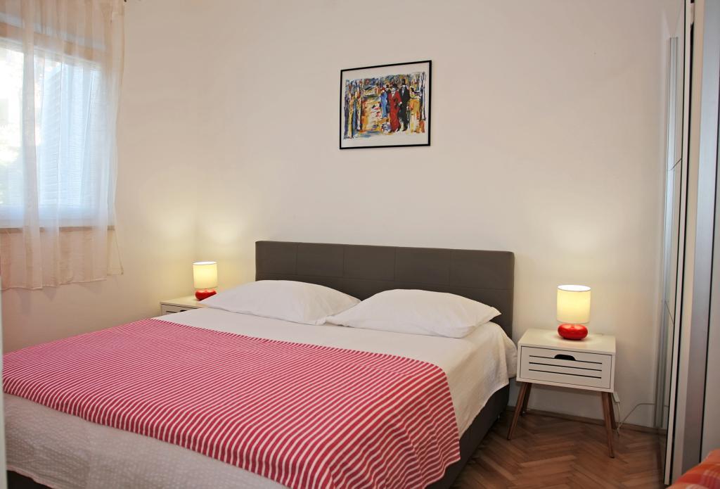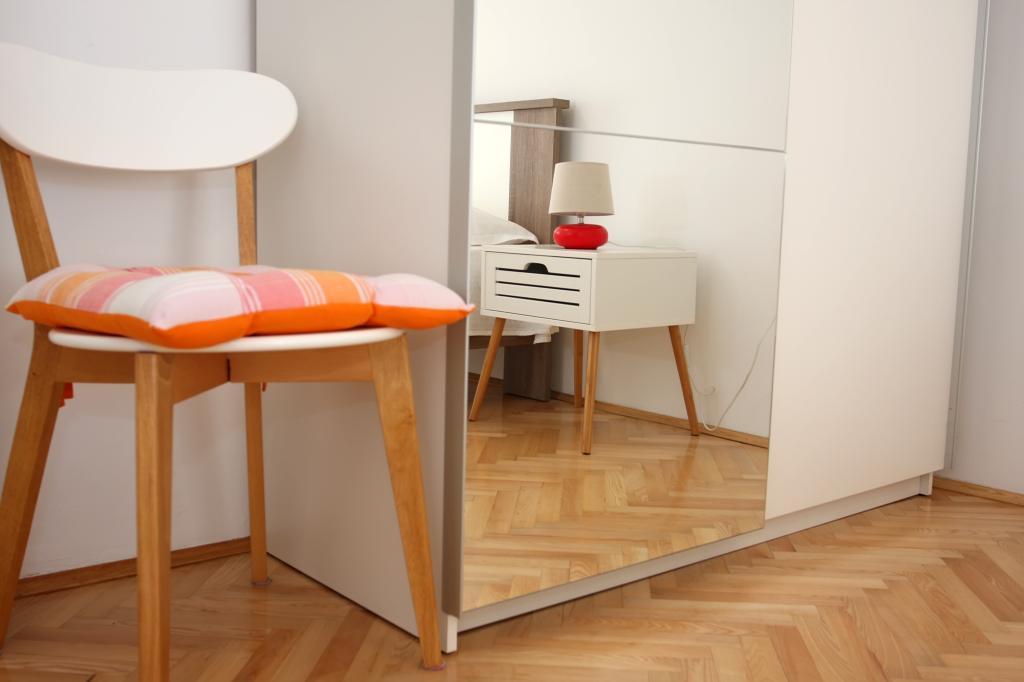 Nybygget 3-værelses lejlighed i stueetagen, første række til havet. Lejligheden består af et køkken med spisestue og stue, tre soveværelser, to badeværelser med toiletter, et andet separat toilet, har også en stor terrasse og en anden balkon. To soveværelser har dobbeltsenge og den ene har to separate senge. I stuen er der en tre seter, der strækker sig ind i en seng til to personer. Køkkenet er udstyret med opvaskemaskine, mikroovn, ovn, køleskab med fryser. Et badeværelse har en vaskemaskine. Der er to parkeringspladser i gården, og gæsterne har grillfaciliteter. Stranden ligger lige foran huset.