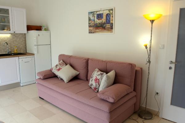Turistskat er inkluderet i prisen.Lejlighedens tilstand svarer fuldt ud til billederne. Det er renoveret og komfortabelt og pænt indrettet. I køkkenet har du alle de nødvendige redskaber, som er i rigtig god stand. Hele lejligheden er meget grundigt rengjort og ryddelig. Ejeren er imødekommende og tilgængelig for alle spørgsmål. Stranden ligger lige foran lejligheden, og den er småsten med nok skygge, og den er meget lang, og du har virkelig et bredt udvalg af strande. Bageriet ligger få minutters gang væk, og i umiddelbar nærhed af lejligheden er der flere restauranter, et konditori, en strandbar og en stand med strandfaciliteter.