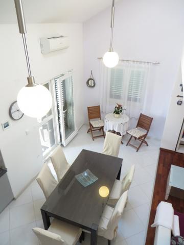 Moderne og moderne lejlighed på første sal i et familiehus i et lille og roligt sted Srima. Anden række til havet, 140 m fra den smukke stenstrand (Blå Flag). Lejligheden råder over 75 m2 (toilet og bad, to soveværelser, køkken, spisestue og stue) galleri med bad og toilet samt en semi-overdækket terrasse på 14 m2. Estimeret antal personer er 6 (værelser 4, galleri 2) Fuldstændig dekoreret med kvalitetsmøbler og udstyr (satellit-tv, internet, LCD-tv, radio, opvaskemaskine og vaskemaskine, hårtørrer, mikroovn, vandvarmer, 2 klimaanlæg) vil tilfredsstille gæster, der vil have mere. På grund af sin størrelse er den ideel til to familier. Srima er beliggende nær byen Vodice, et berømt sommerferiested med alle de nødvendige faciliteter til hvile og rekreation og to nationalparker: NP Kornati og NP Krka.