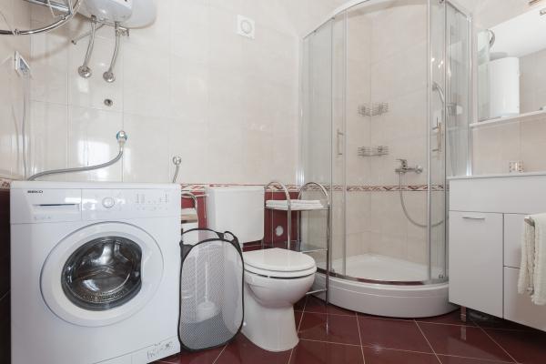 Lejligheden var ren og som set på billederne på forhånd. Aircondition inkluderet. Særligt bemærkelsesværdige var de mange funktioner i lejligheden på plader, briller, bestik mv. Det er alt i tilstrækkeligt antal til rådighed, hvad du har brug for. Opvaskemaskine og vaskemaskine letter opholdet. Velkommen var øl, specielt produceret af værten vin og schnapps godt forberedt i køleskabet klar. Der var to cykler til rådighed, den 3,5 kilometer lange vej til promenaden til Vodice synes kortere. Jeg blev endda tilbudt sin scooter til brug. Den nærliggende strand var perfekt til børn, da det havde sand i vandet efter ca. en meter. Udlejer var meget venlig. Hans ærlighed og hjælpsomhed afrundede hans opmærksomhed. Det var en meget flot ferie, som du gerne vil gentage i disse værelser. , ,