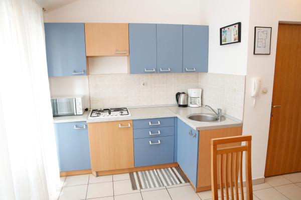Modernt udstyrede lejligheder i Srima nær Vodice. De ligger 100 m fra den smukt indrettede strand og vinder det Blå Flag. Anlægget ligger 150m fra centrum og 20 minutter til fods, en promenade ved havet til Vodice. Lejlighed Alica ligger på første sal i bygningen og er 46m2 i størrelse. Lejlighed Ankica ligger i stueetagen og er 50 m2 i størrelse. De er indrettet med alle de nødvendige møbler og er yderst behagelige at blive. Det består af et soveværelse og et børneværelse med køjesenge, et badeværelse, en stue, et køkken og en loggia. Køkkenet er også udstyret med alle de nødvendige apparater og de nødvendige tallerkener og redskaber. Parkering er sikret, dækket i skyggen på sin egen parkeringsplads. Lejlighederne har aircondition, tv, ur, WI-FI.