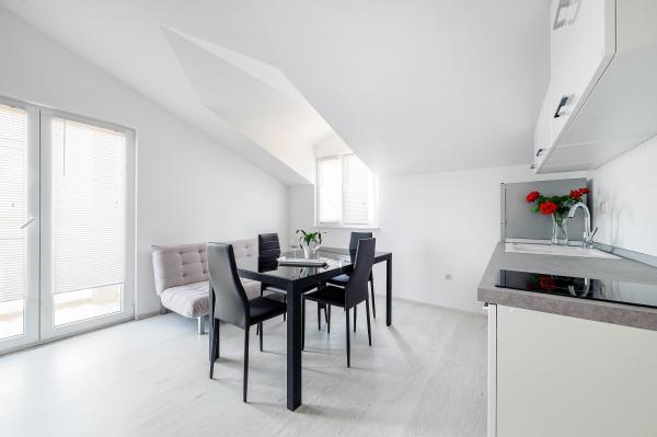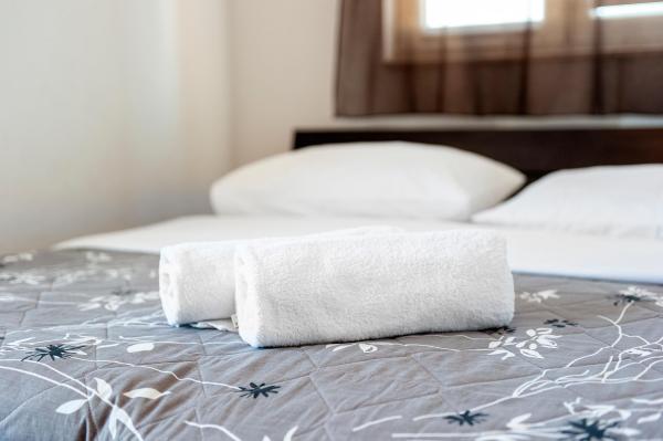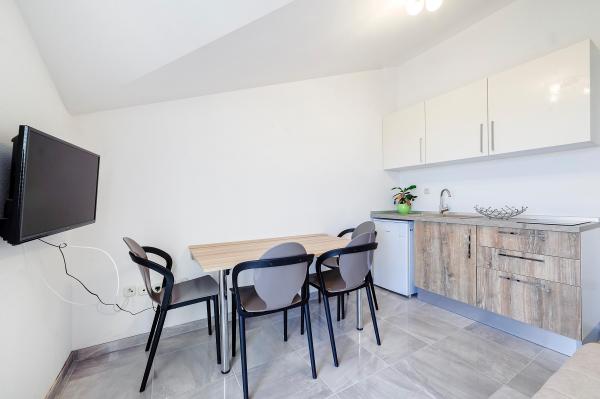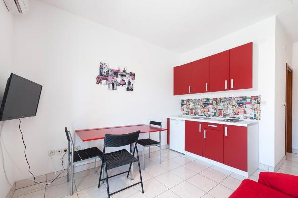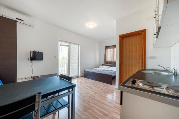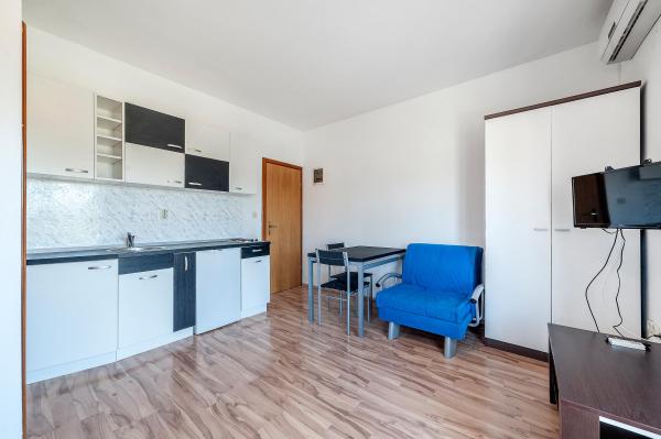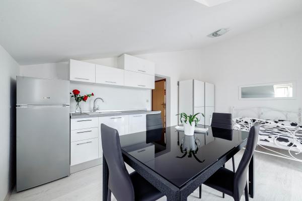 Turistskat er inkluderet i prisen.Virkelig positivt overrasket. Fred. Privatliv. Studio meget rent, alt dufter frisk. Køkken udstyret med alt, hvad vi har brug for på ferie. Tæt på stranden, rent hav, nem adgang selv for ældre. Meget venlige værter.