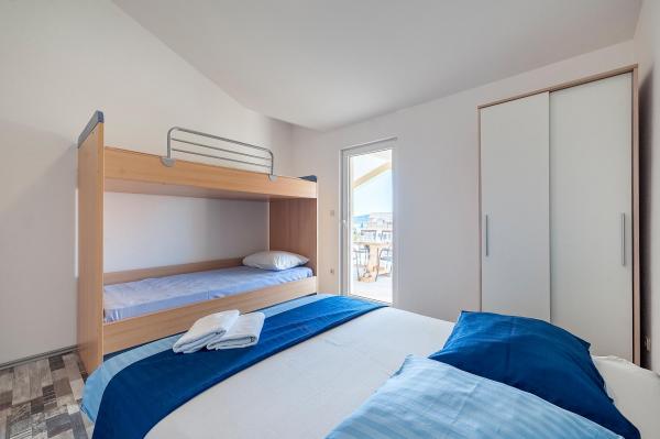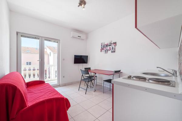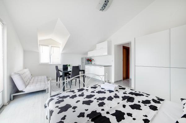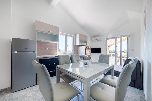 Lejlighederne er beliggende i den rolige by Srima, ved siden af Vodice. De ligger kun få minutters gang fra de smukt dekorerede strande og omkring en halv times behagelig gåtur fra turistcentret i Vodice. Lejlighederne er udstyret med aircondition, nye moderne møbler, kvalitetsbadeværelse og TV. I husets gård er der en stor grill til fri afbenyttelse.