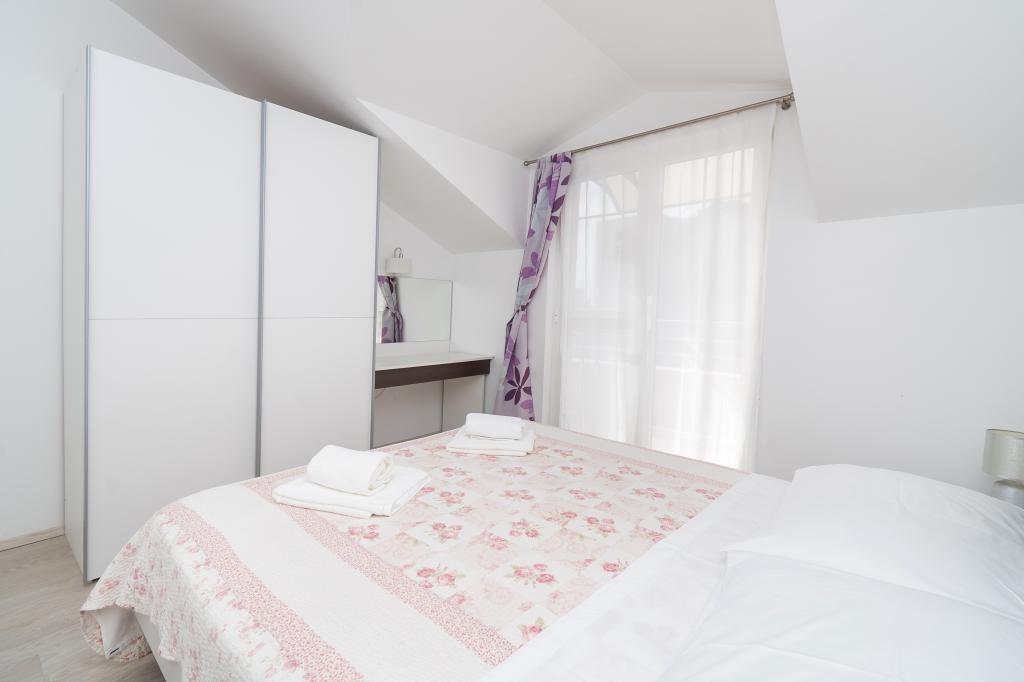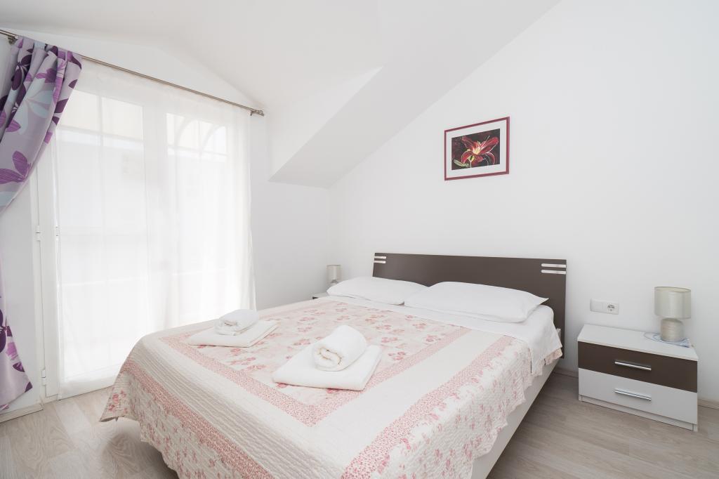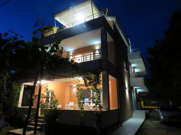 Huset ligger i et roligt område. Vært meget hjerteligt, hjælpsomme. Lejligheden er meget ren, pæn og moderne udstyret - i overensstemmelse med beskrivelser og fotos. Udstyr omfatter alt det nødvendige for et behageligt ophold, lejligheden har en stor balkon med en smuk udsigt over havet og øen. Den nærmeste strand er småsten, velegnet til små børn. Vi takker værter for deres varme velkomst, hjælp (og lækre grøntsager fra haven ejere).