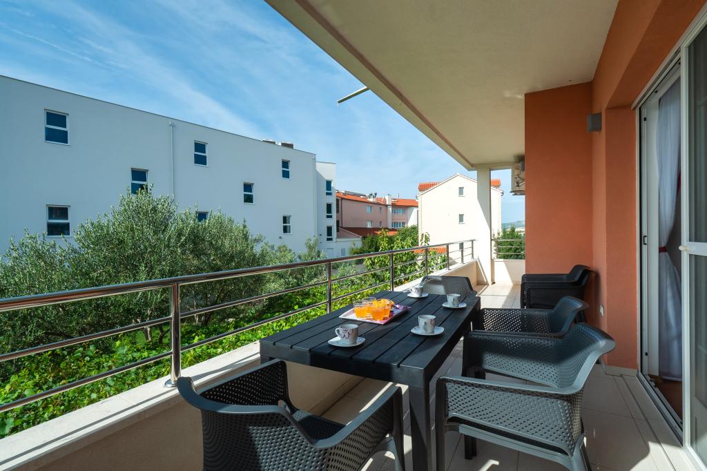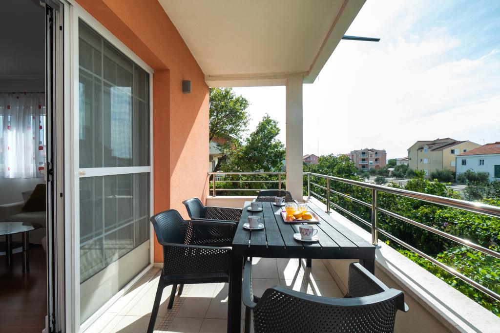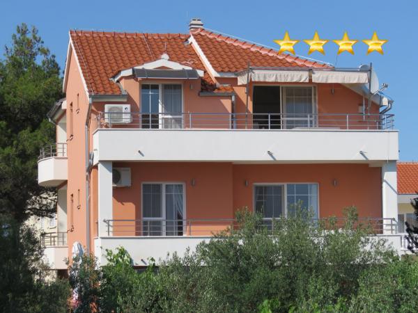 De er beliggende i midten af Adriaterhavet nær den berømte sommerby Vodice, i den lille landsby Srima, lige ved sandstranden med udsigt over havet og øerne. Anlægget er nyt med smukt indrettede og moderne møblerede lejligheder, specielt velegnede til familier med børn, samt enhver anden, der vil slappe af. Huset ligger i nærheden af stranden i den anden række mod havet, hvilket garanterer en ferie med maksimal ro og er en unik oplevelse af helligdage ved den kroatiske Adriaterhav. Lejlighederne har store terrasser med udsigt over havet. Strandene er især velegnede til børn, fordi bunden af den lange strand er lav og dækket med fint sand. Hver lejlighed er udstyret med aircondition og satellit-tv. Parkering til rådighed i gårdspladsen i huset, hvor der stadig er et udendørs bruser og grill.