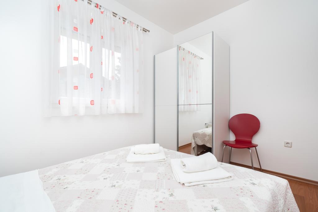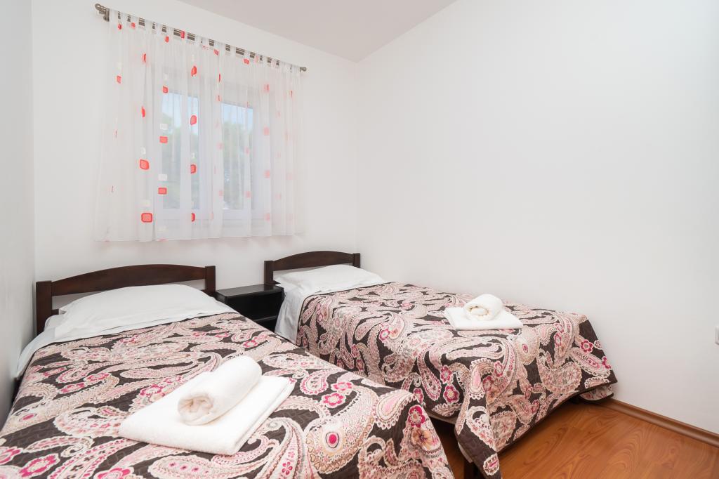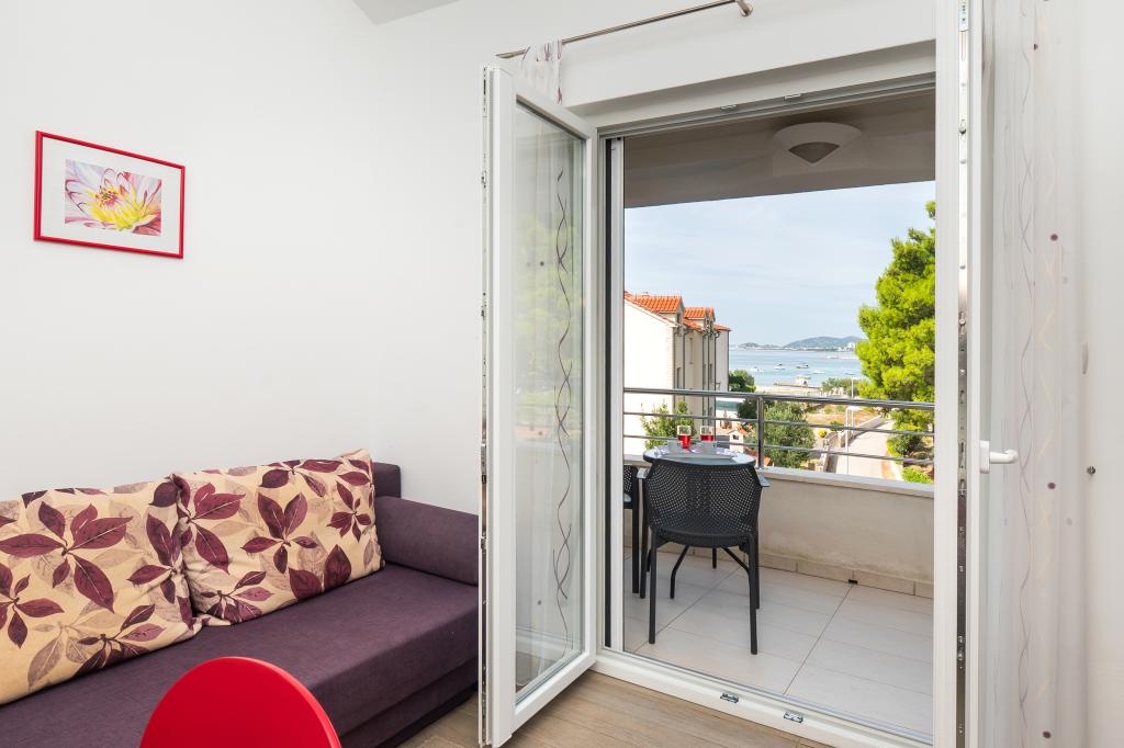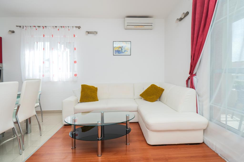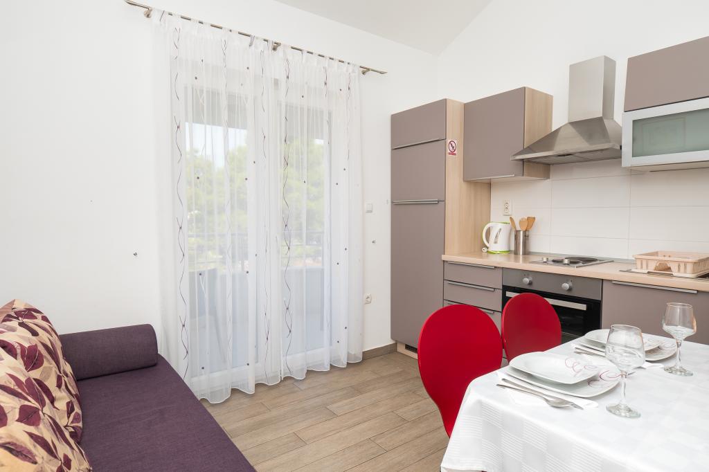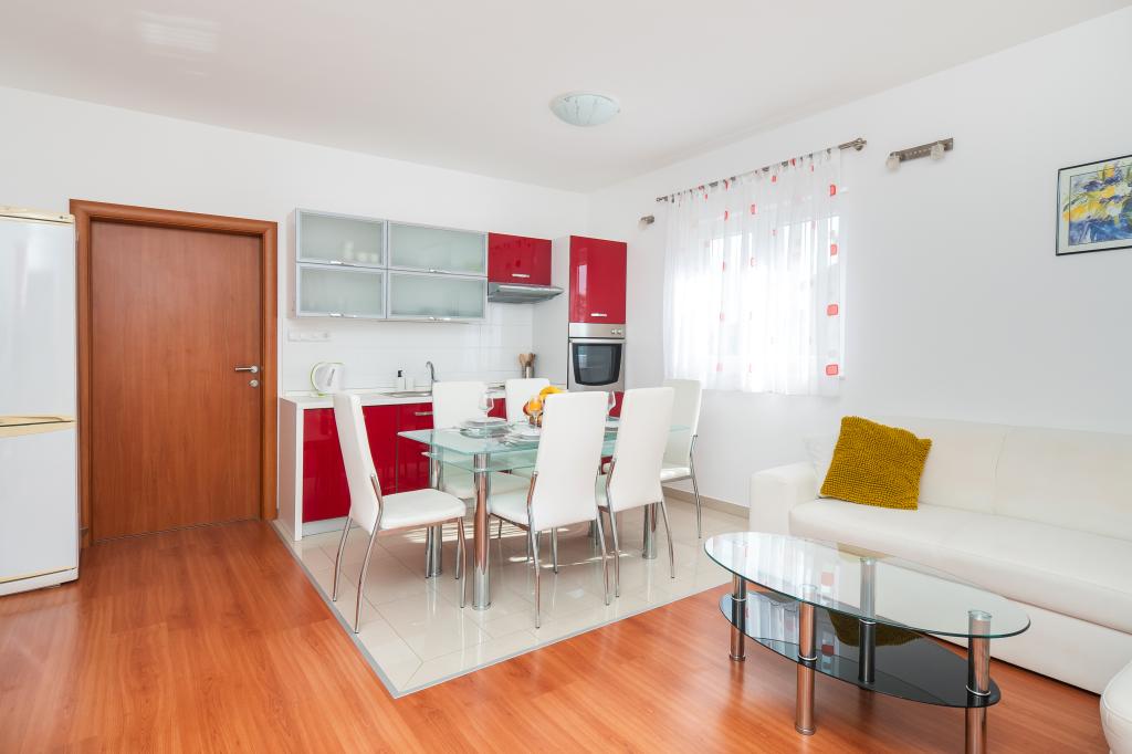 Lejligheden er rart, ren, moderne faciliteter. Ejer meget nyttigt. Vi vil helt sikkert komme tilbage igen. Omkring havet er en dejlig gåtur til centrum af wiren, hvor den lever. Ellers sted med fred og ro overnatning, tæt på havet, lavvandede sand velegnet til små børn. 15 minutters kørsel til Sibenik på et større køb.