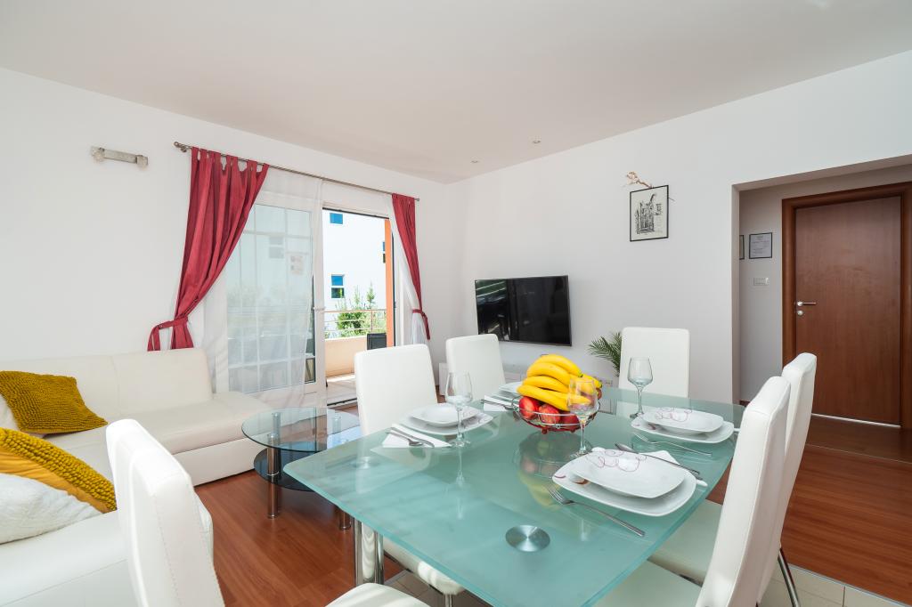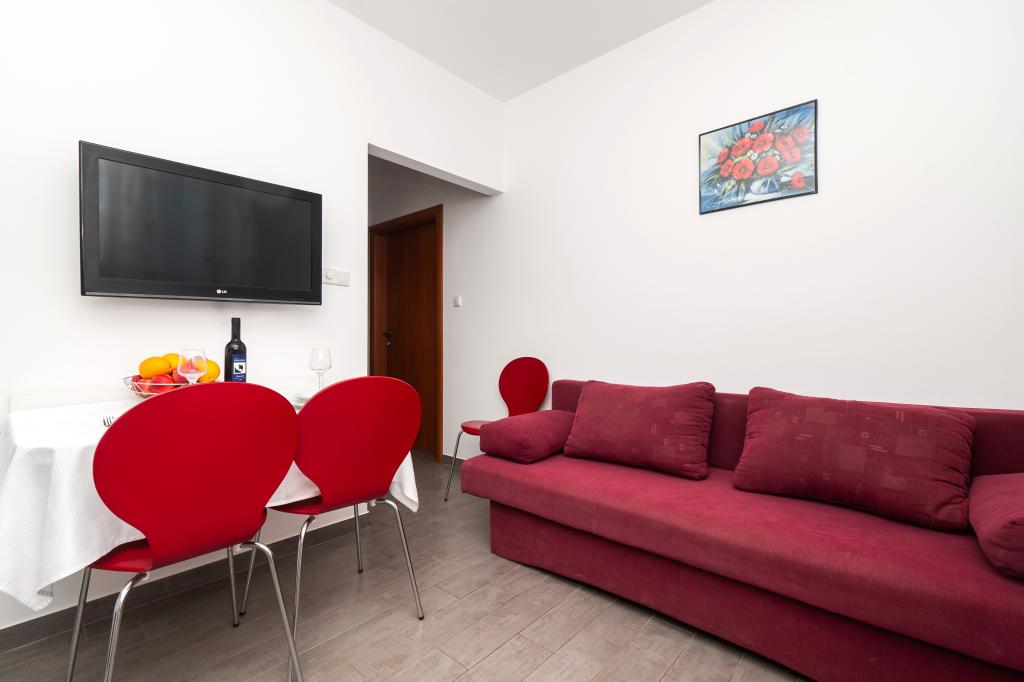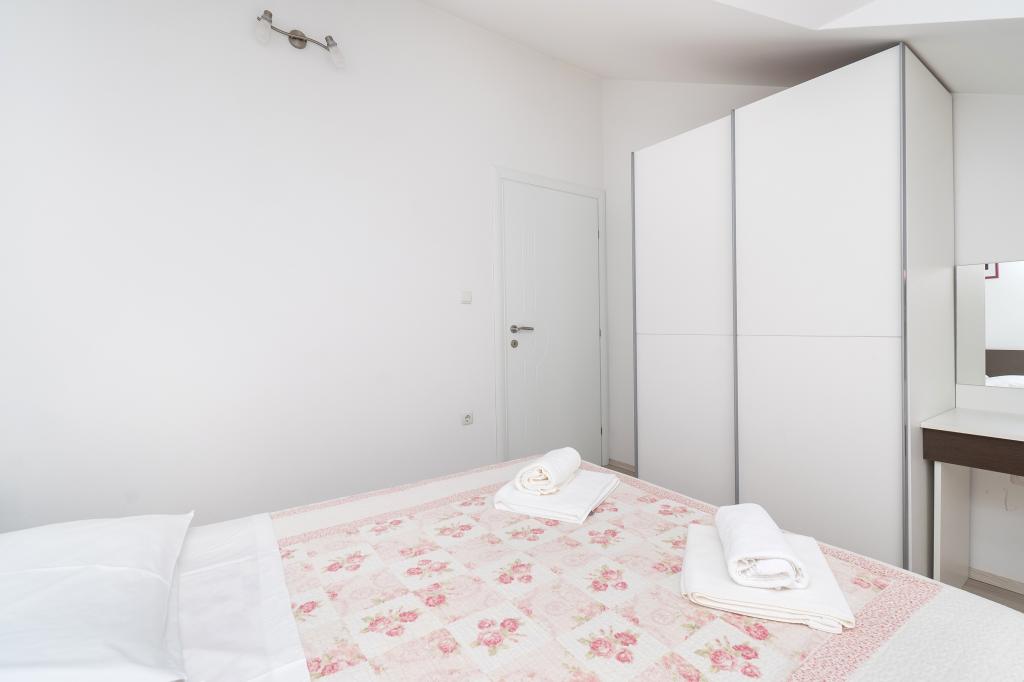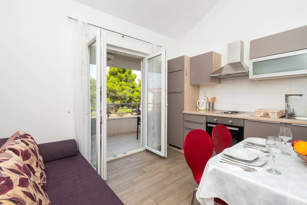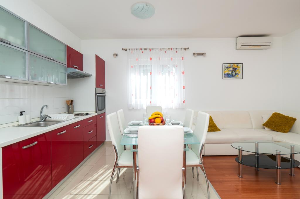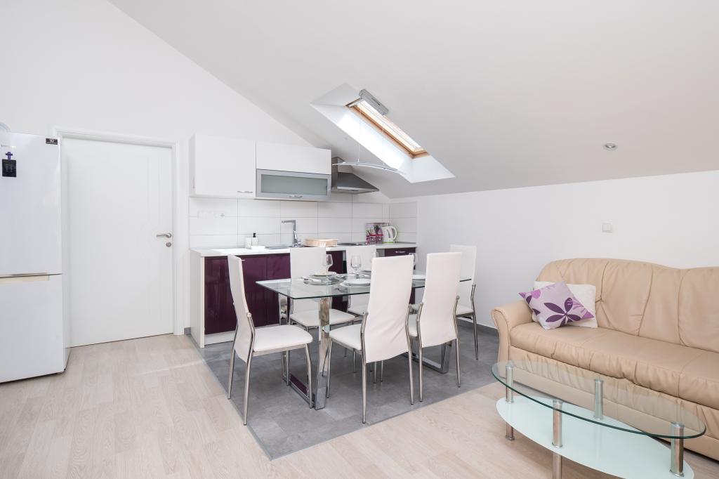 Lejligheden er rart, ren, moderne faciliteter. Ejer meget nyttigt. Vi vil helt sikkert komme tilbage igen. Omkring havet er en dejlig gåtur til centrum af wiren, hvor den lever. Ellers sted med fred og ro overnatning, tæt på havet, lavvandede sand velegnet til små børn. 15 minutters kørsel til Sibenik på et større køb.